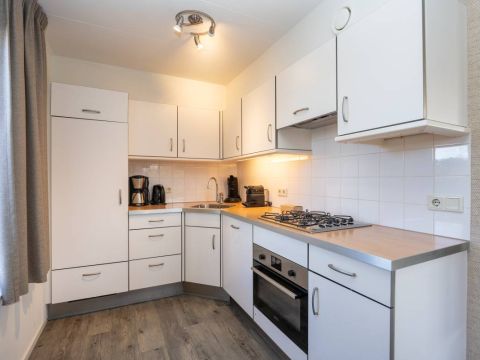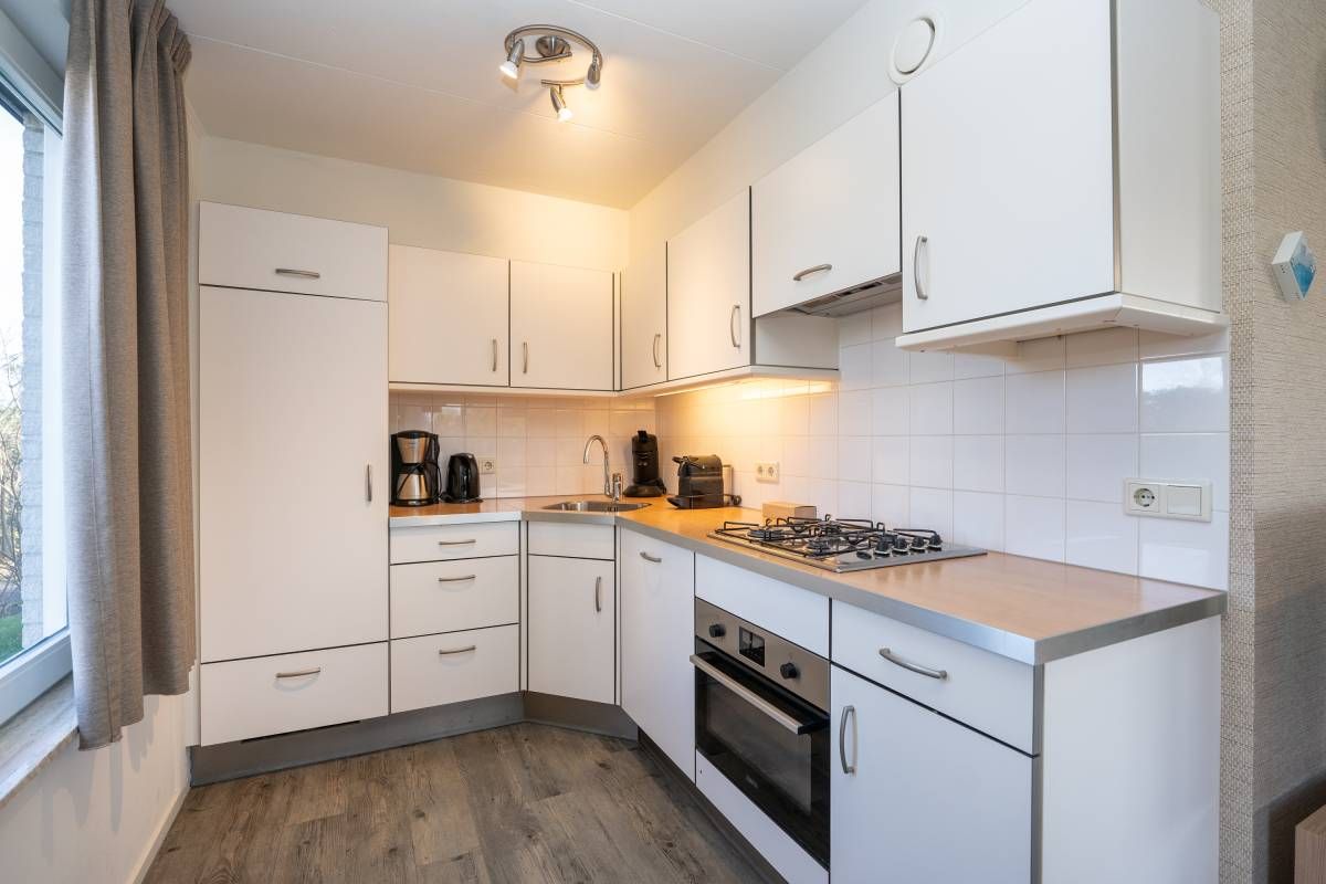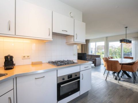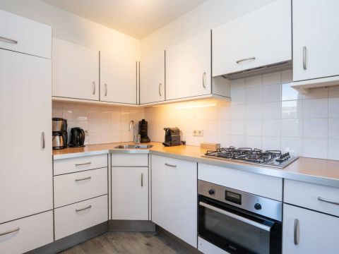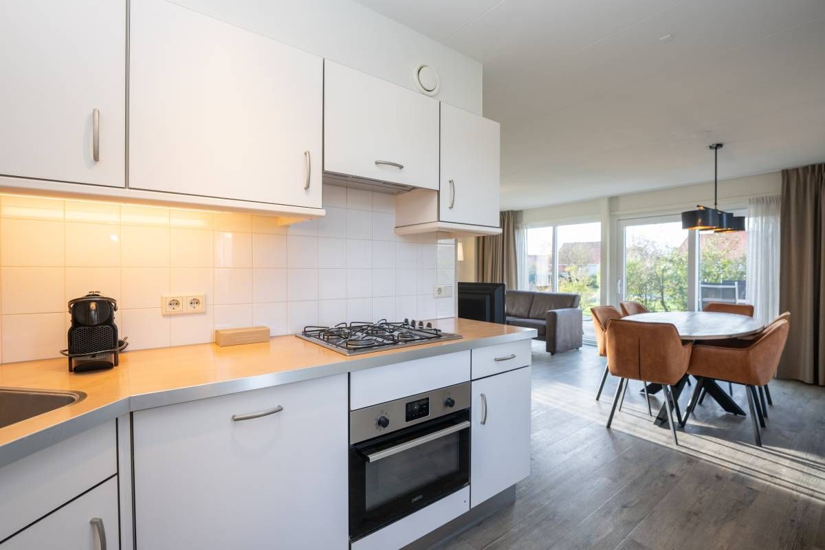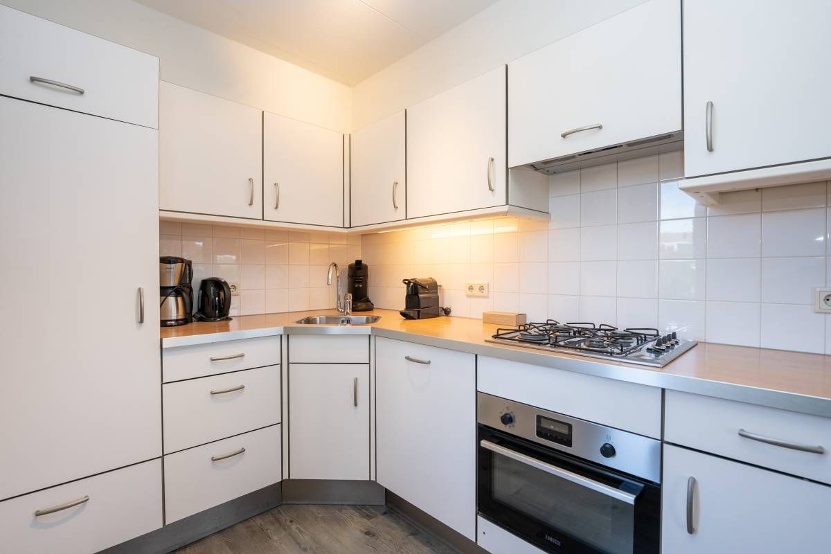 De open keuken sluit mooi aan op de woonkamer en is compleet uitgerust met alle benodigde voorzieningen. Perfect voor het bereiden van een uitgebreid diner of een snelle maaltijd na een dag aan zee. Dankzij de praktische opstelling is deze ruimte zowel functioneel als prettig in het gebruik.Â