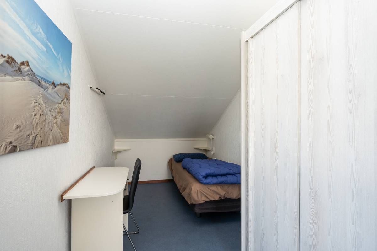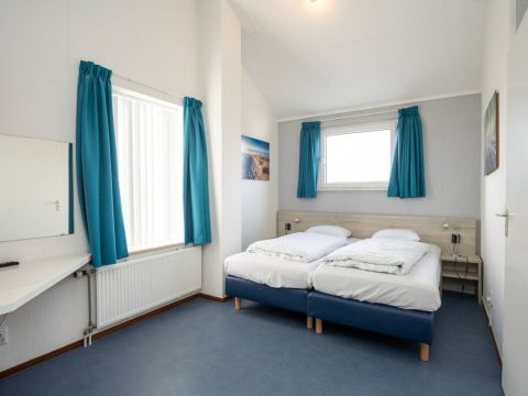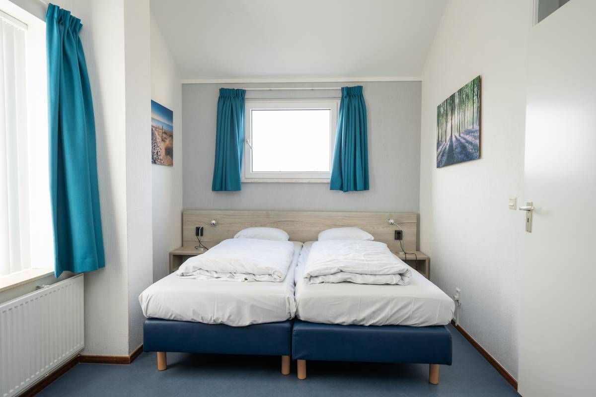 Op de begane grond treft u een prettige slaapkamer voorzien van twee losse eenpersoonsbedden met voldoende licht en ruimte.Â