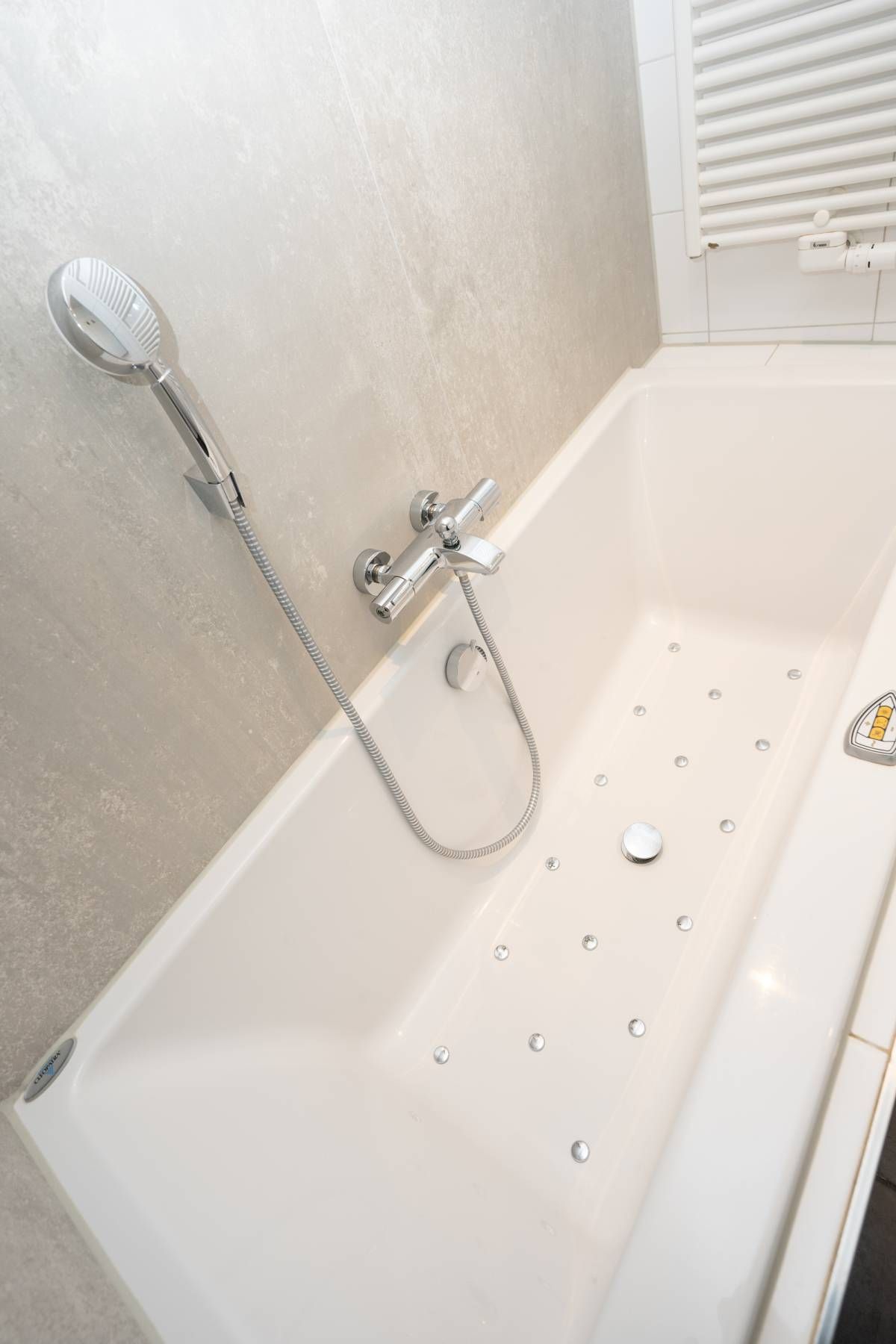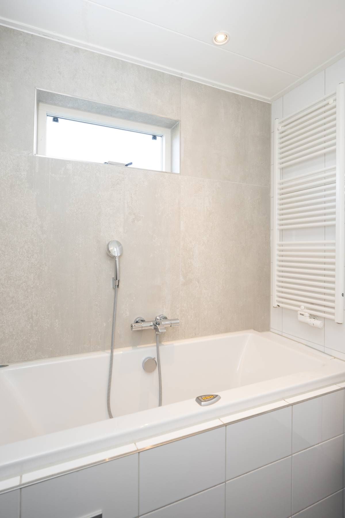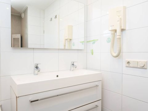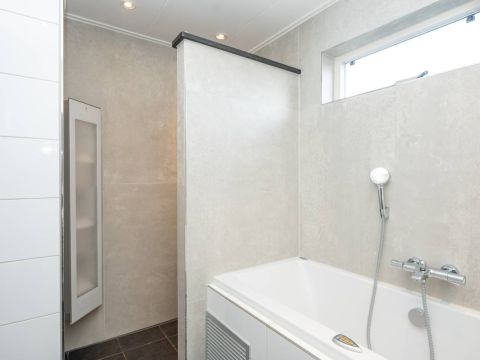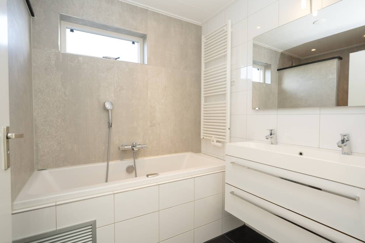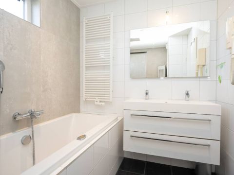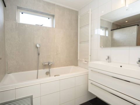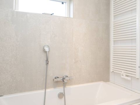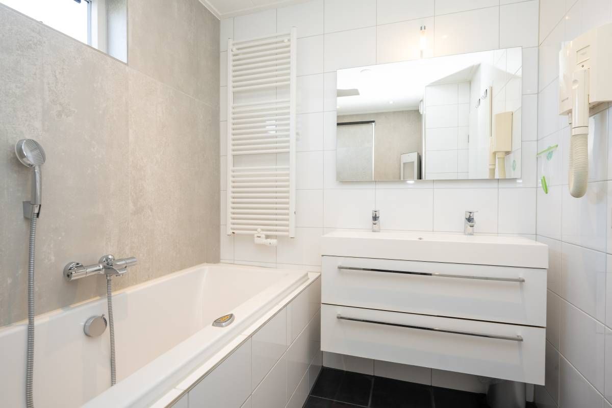 De badkamer (gerenoveerd in 2024) is luxe afgewerkt en voorzien van een whirlpool ligbad, een keurig wastafelmeubel en een royale inloopdouche. De inloopdouche beschikt over een Sunshower, waarmee u kunt genieten van een heerlijke combinatie van infrarood- en UV-licht. Een comfortabele en wellness-achtige beleving na een dag op Texel.Â