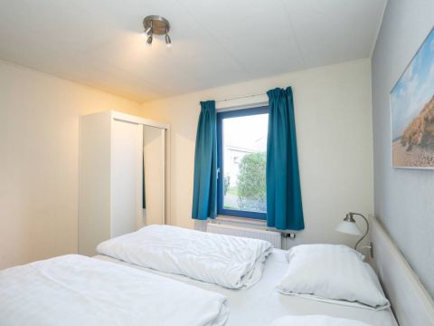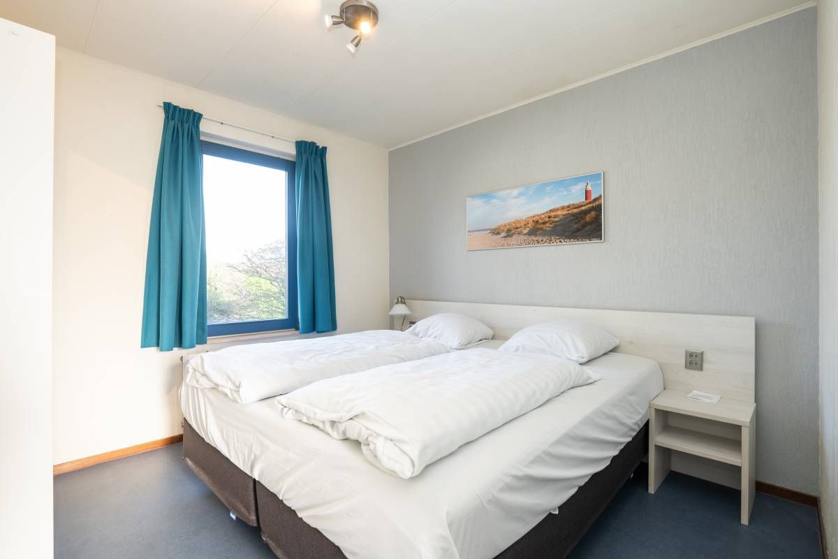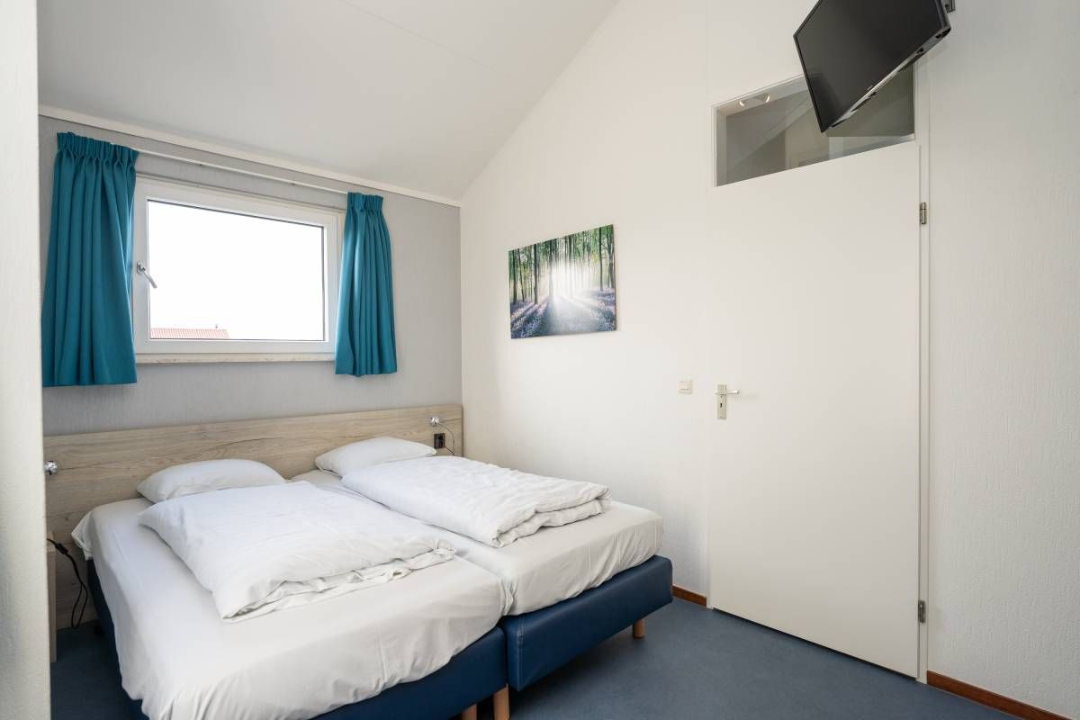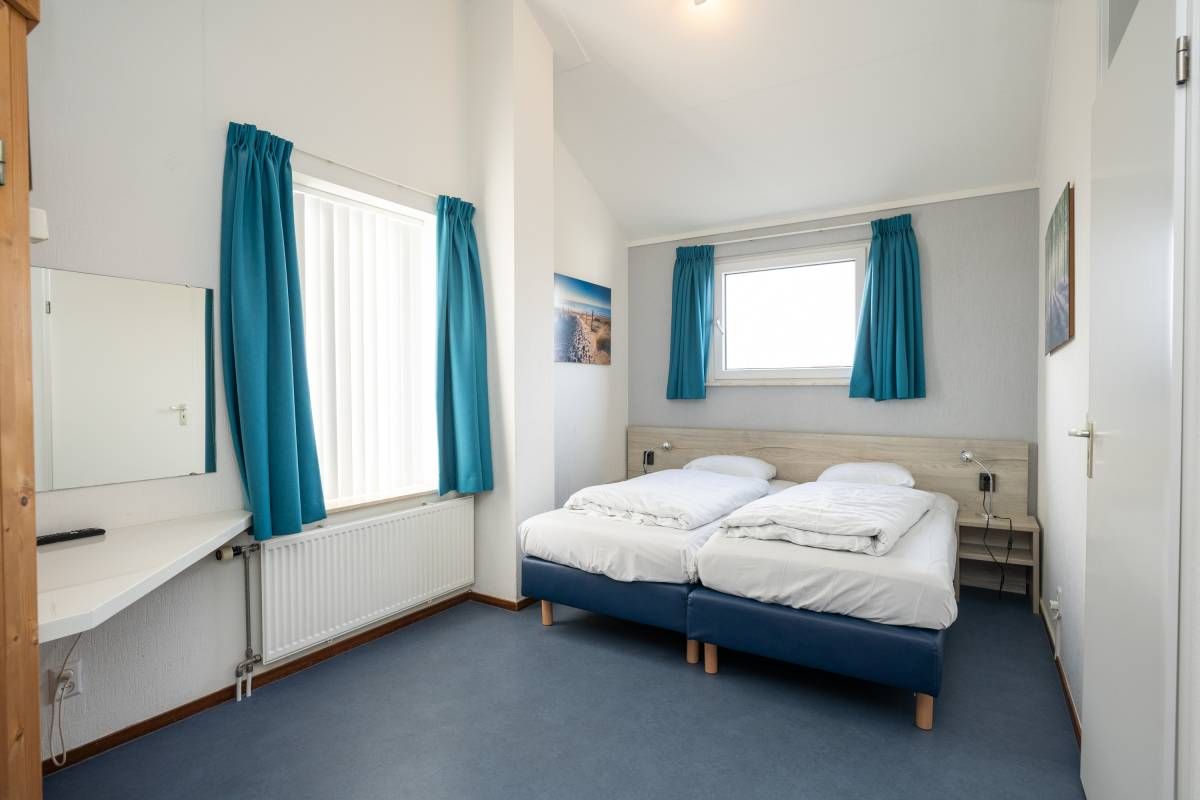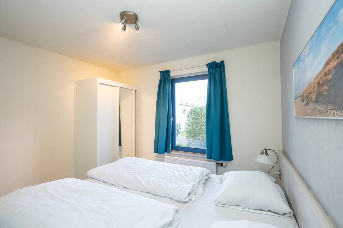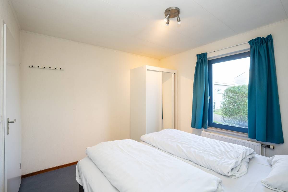 De andere slaapkamer beschikt over twee losse eenpersoonsbedden en voldoende kastruimte.