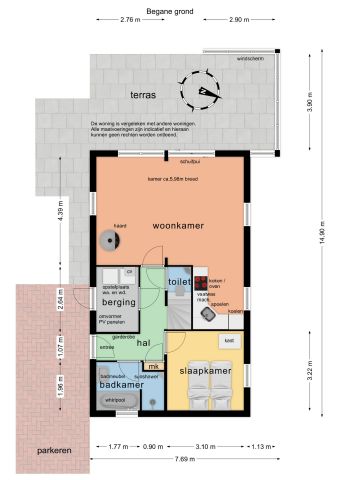 Indeling | Via de entree bereikt u de hal, waar de trapopgang en meterkast zich bevinden. Vanuit hier heeft u toegang tot de lichte woonkamer, de slaapkamer op de begane grond, de luxe badkamer en de praktische berging.