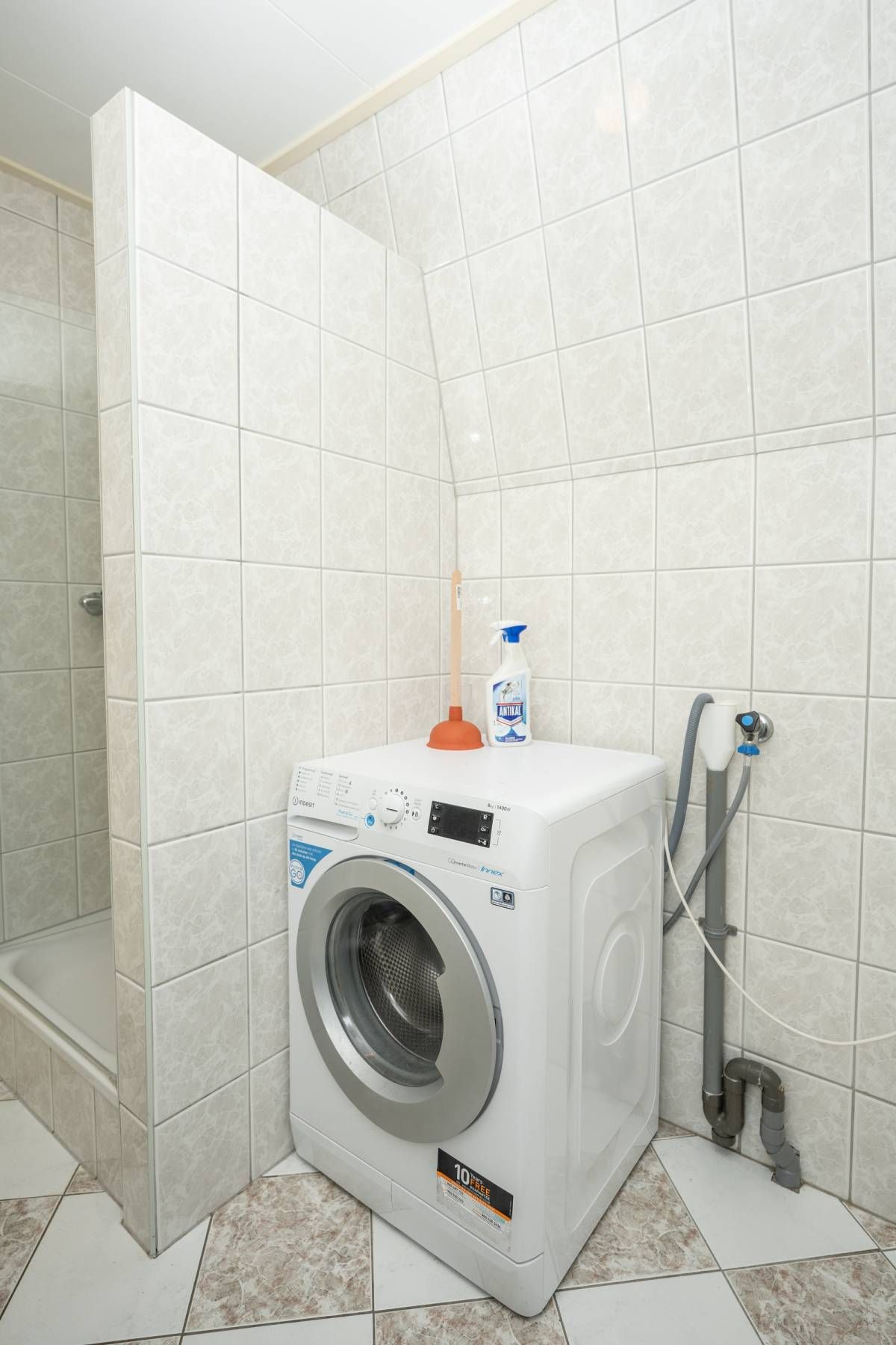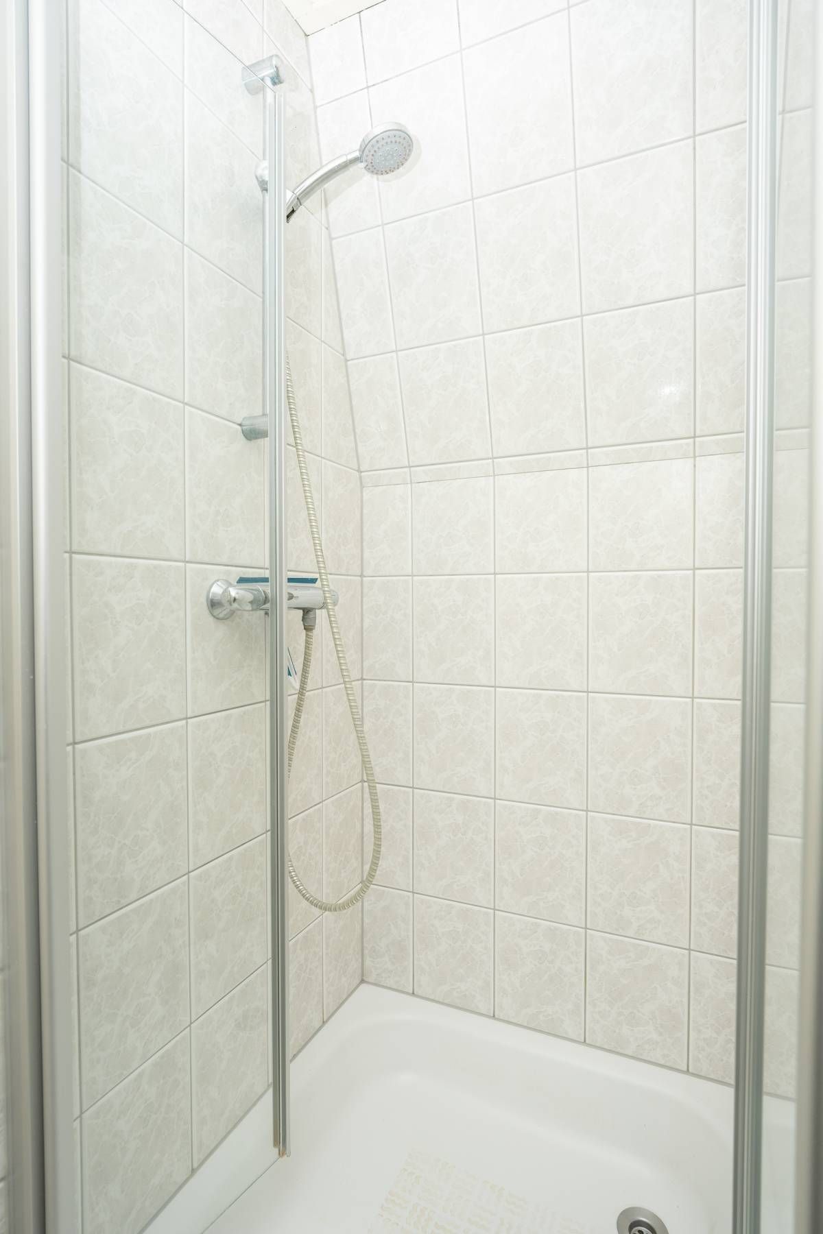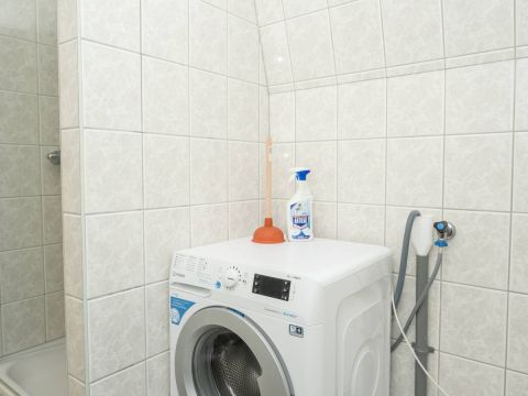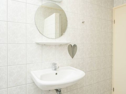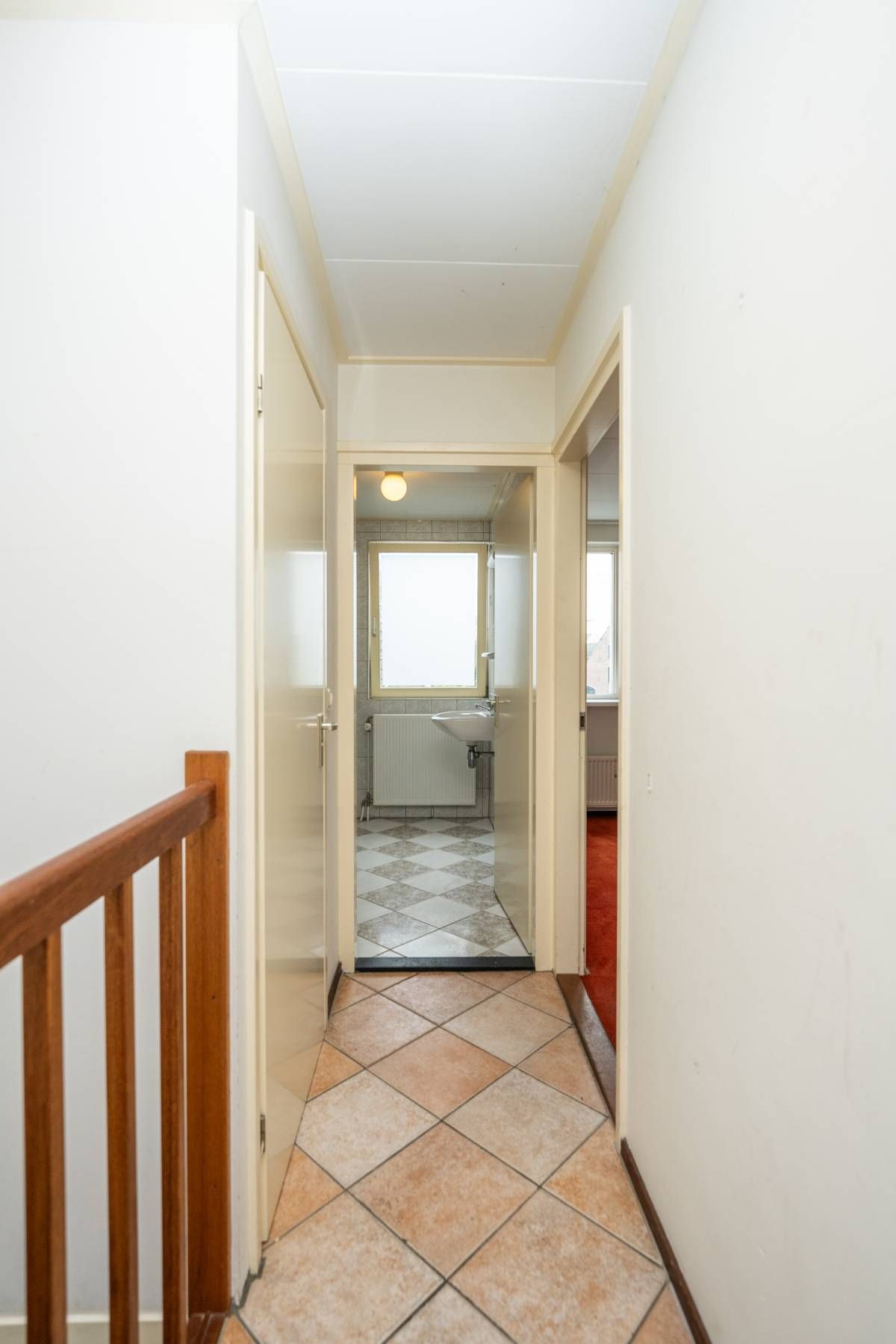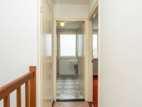 Vanuit de overloop bereikt u de badkamer met douche, wastafel en wasmachineaansluiting.
