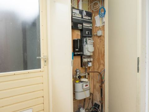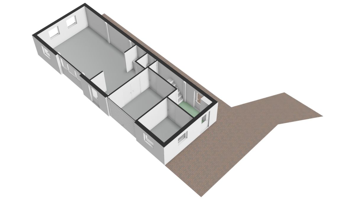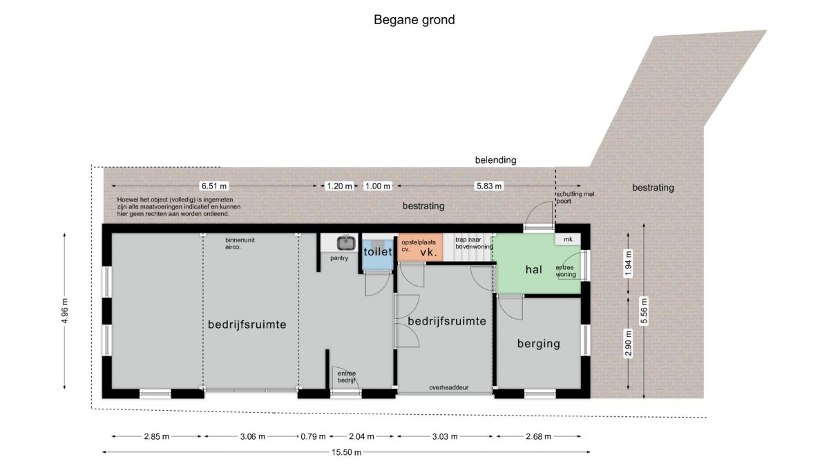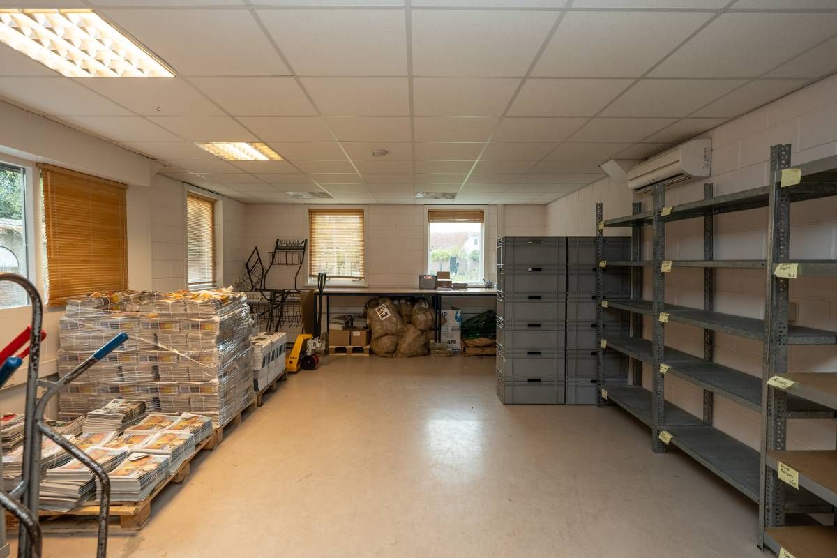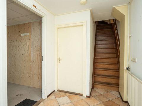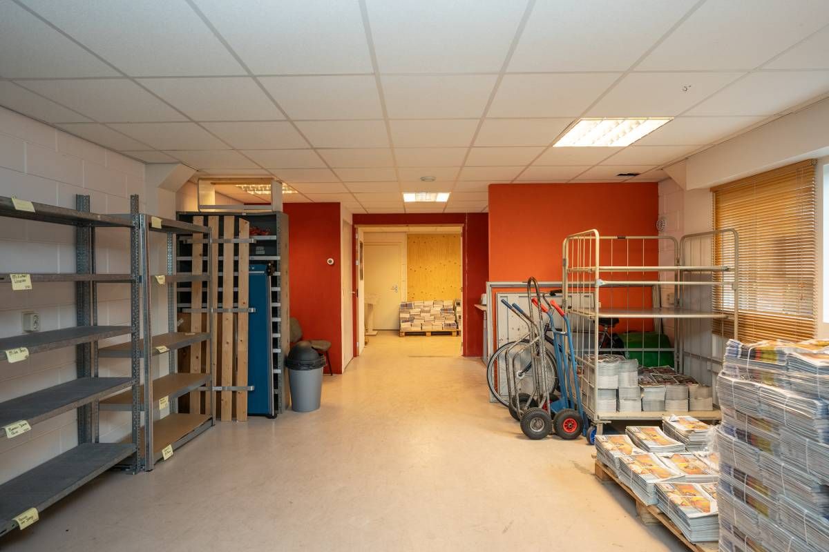 Via de straatzijde komt u binnen door de loopdeur in een ruimte van ca. 60 m², tevens bereikbaar via een roldeur. De ruimte is optisch verdeeld in drie delen, maar grote doorgangen en dubbele deuren verbinden alles tot één geheel. Bij binnenkomst treft u een open ruimte met pantry en toilet. Aan de rechterzijde leiden dubbele deuren naar het gedeelte met de roldeur en aan de linkerzijde bevindt zich een grote open ruimte, momenteel in gebruik als opslag. Vanuit de hal van de bovenwoning is er ook toegang tot een separate berging, die via de begane grond bereikbaar is. Twee extra deuren (zijkant en achterkant) bieden extra toegang tot de hal.