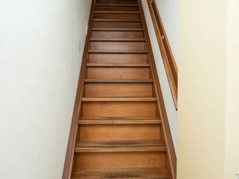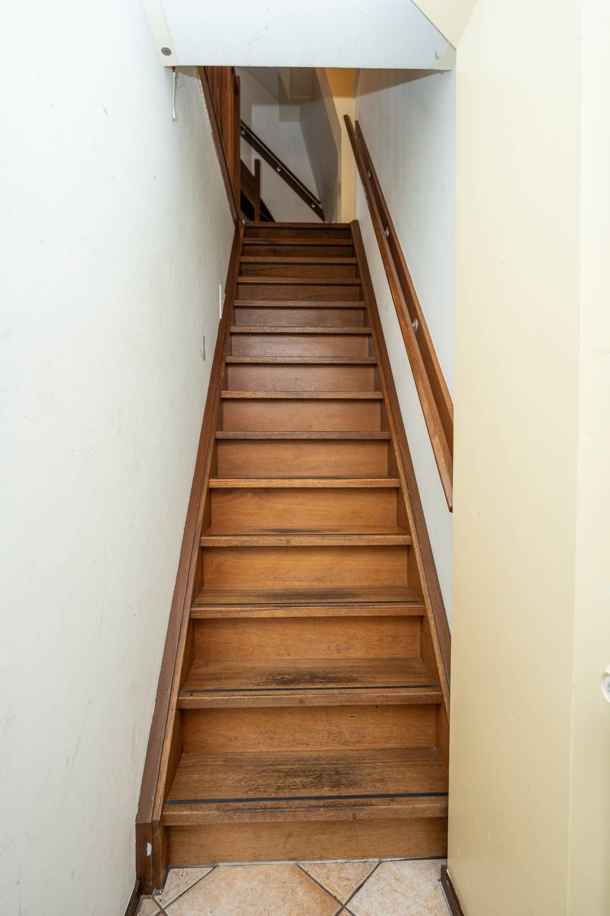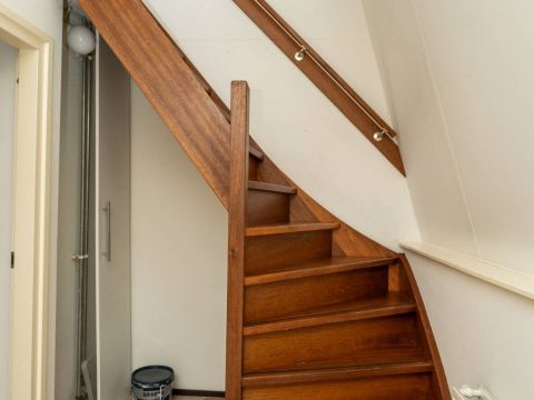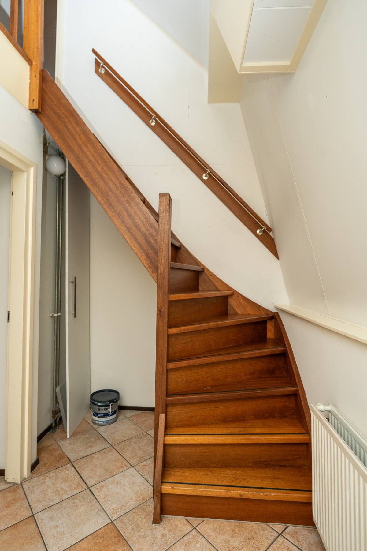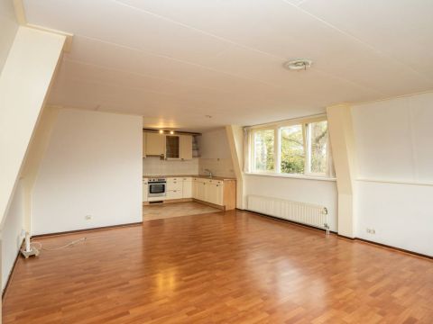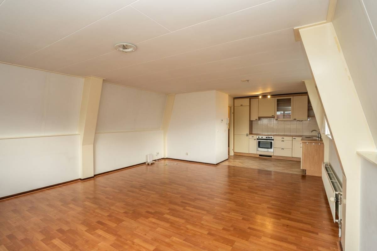 Via de trap in de hal komt u op de bovenverdieping, waar een lichte halfopen keuken met alle voorzieningen aansluit op een ruime woonkamer met veel daglicht en een leuk uitzicht op het dorp.