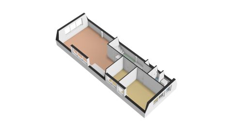 Begane verdieping bovenwoning: 2 slaapkamers (1 ruim, 1 iets kleiner)
