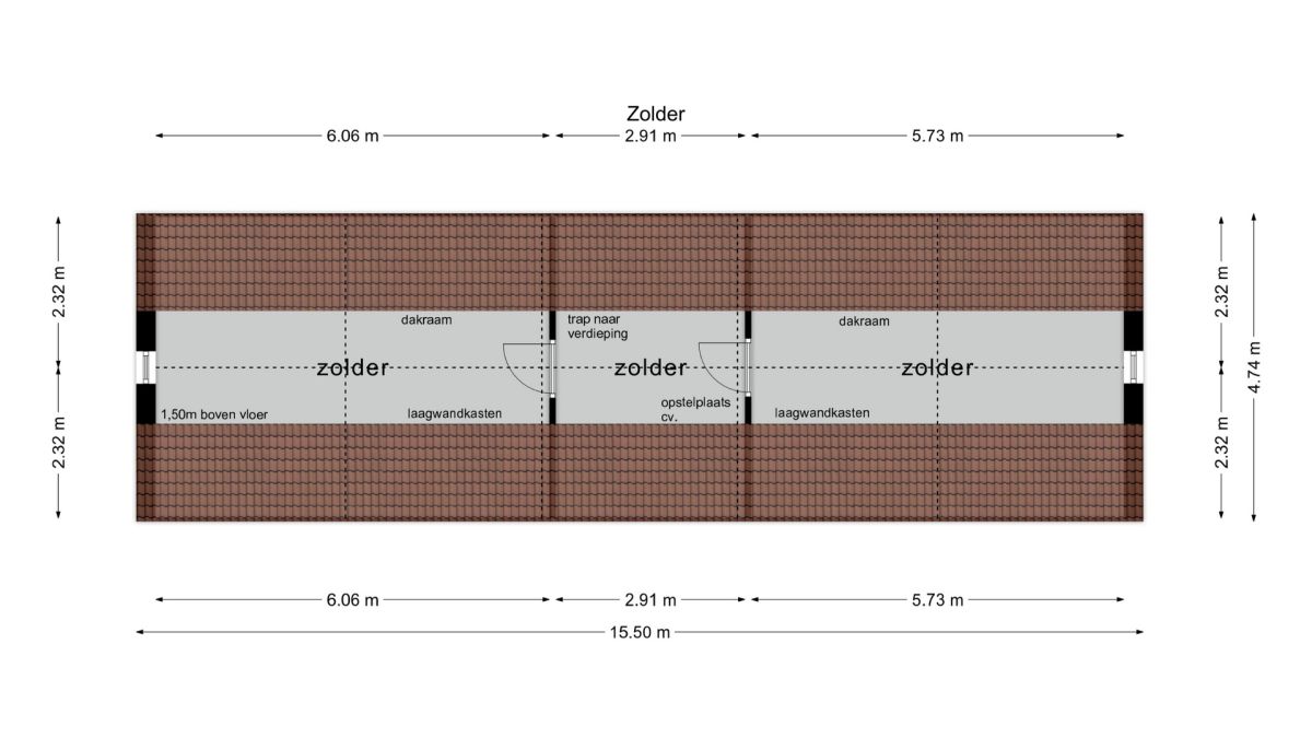 Overig 2e verdieping/zolder | Overloop, 2 slaapkamers |