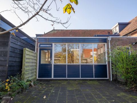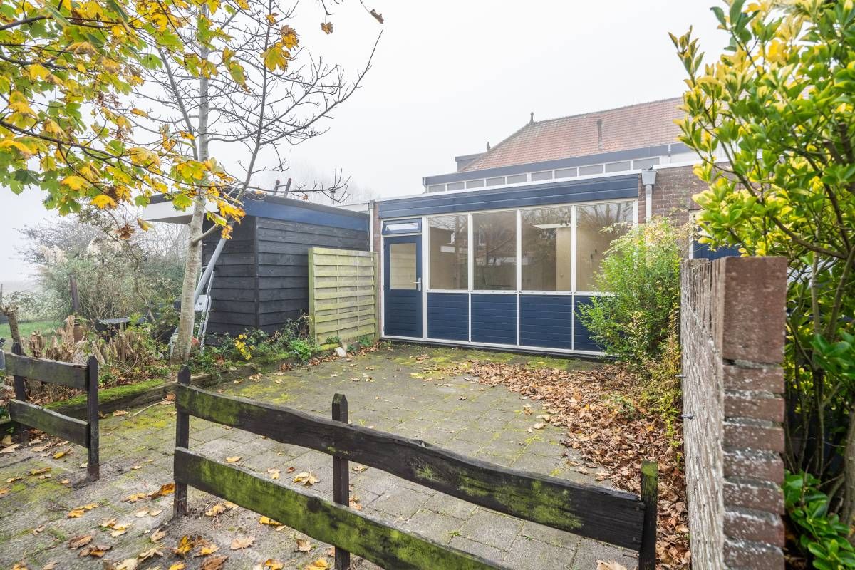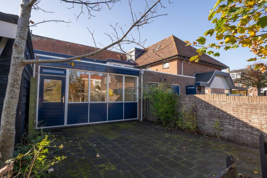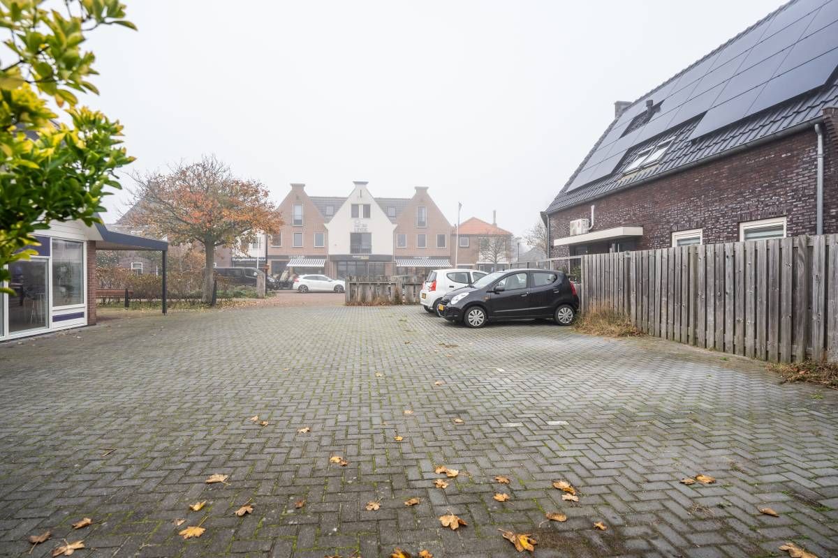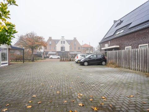 Via de openslaande deur is de bestraatte tuin bereikbaar. Parkeren kan op het gezamenlijke parkeerterrein.