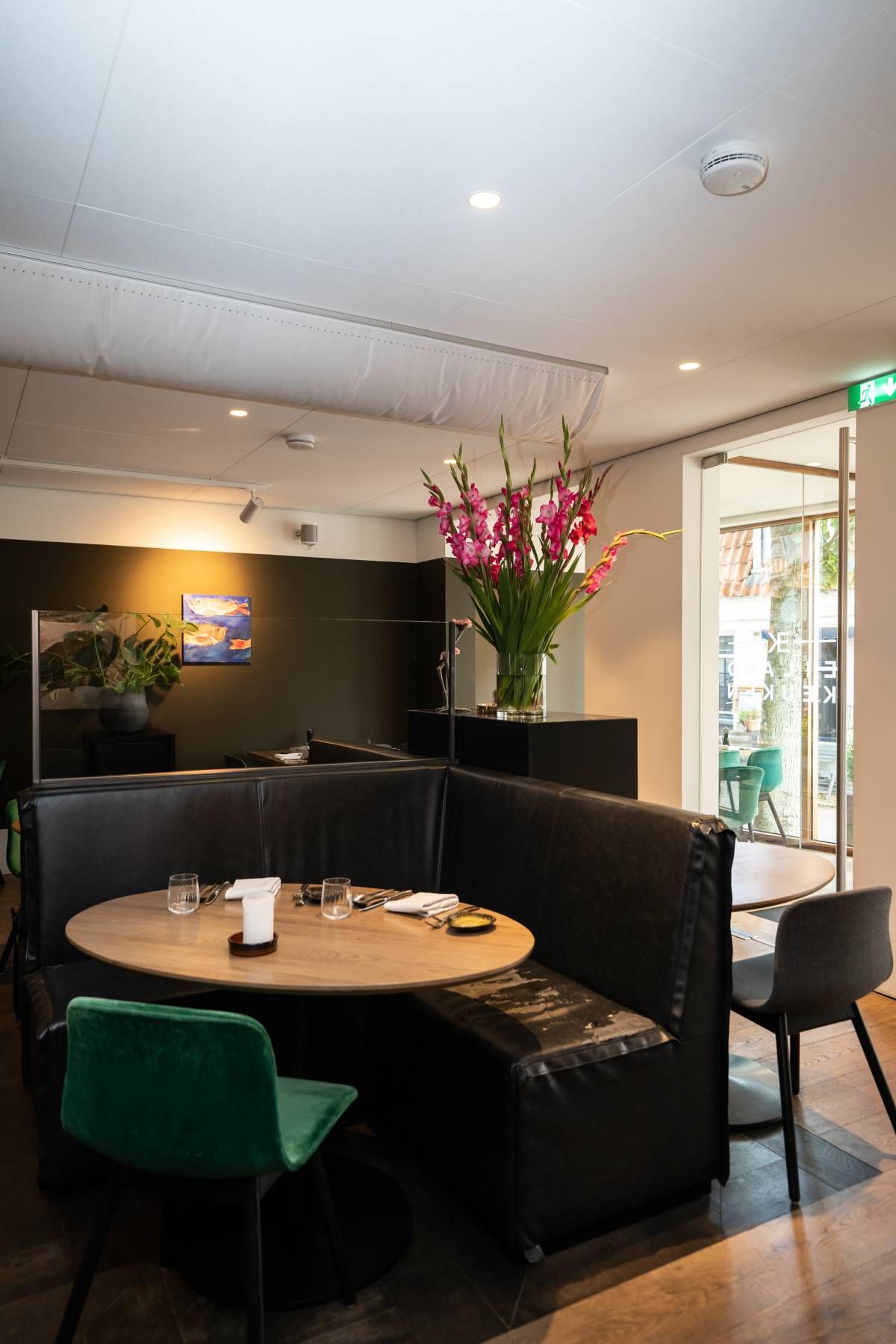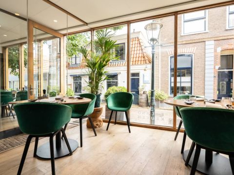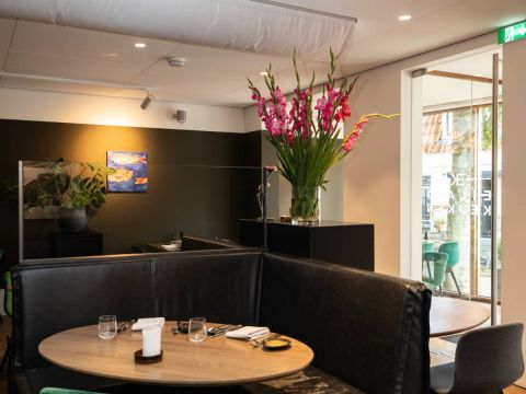 Het eetgedeelte is groot ca. 110 m² met een bijzonder mooi grote pui van glas, het restaurant biedt (ruim) plaats aan 50 gasten.