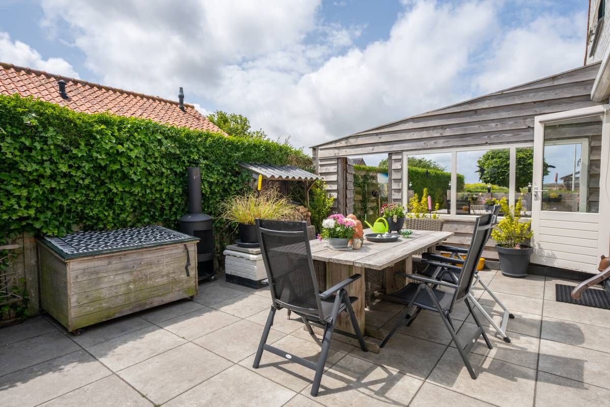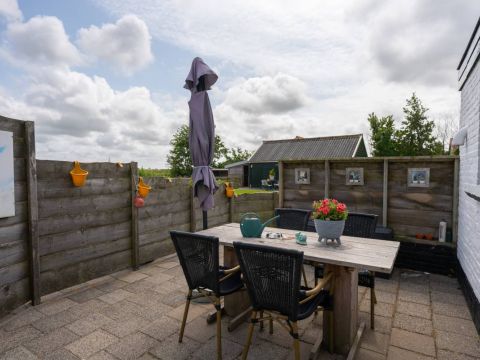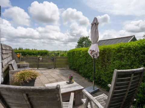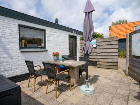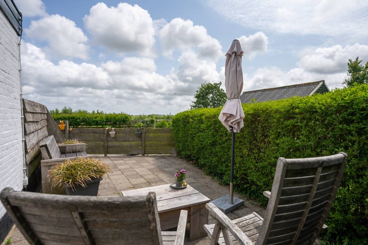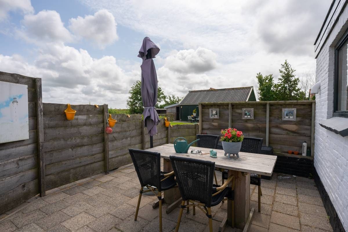 Ook dit huisje beschikt over een eigen terras. Hier kunt u volop genieten van de zon, de Texelse wind en het uitzicht.