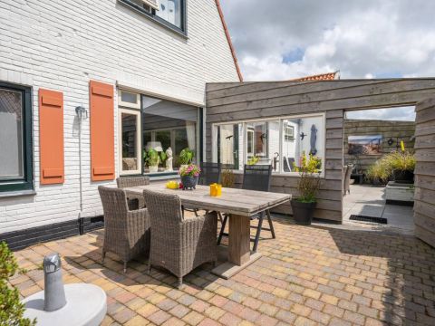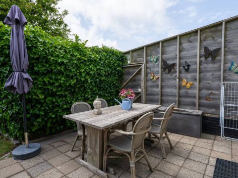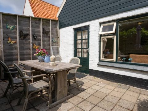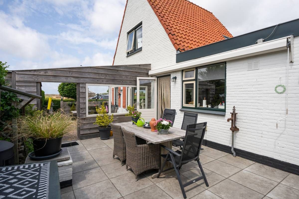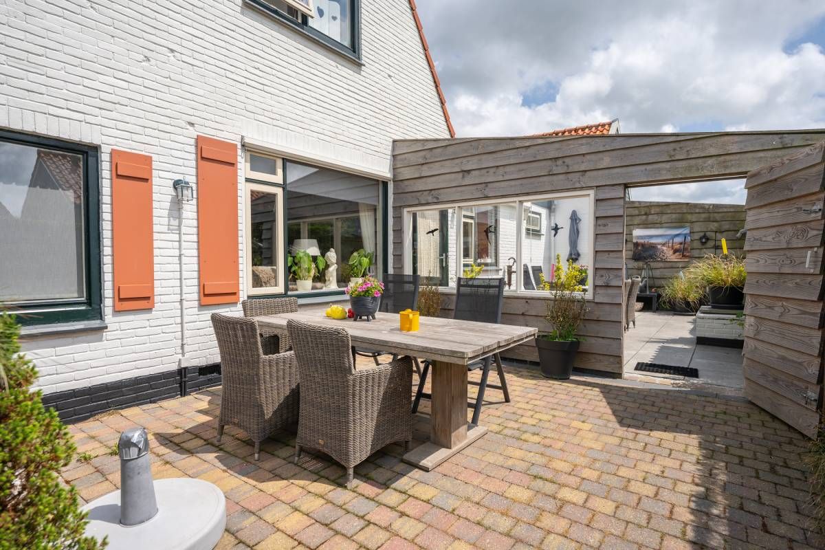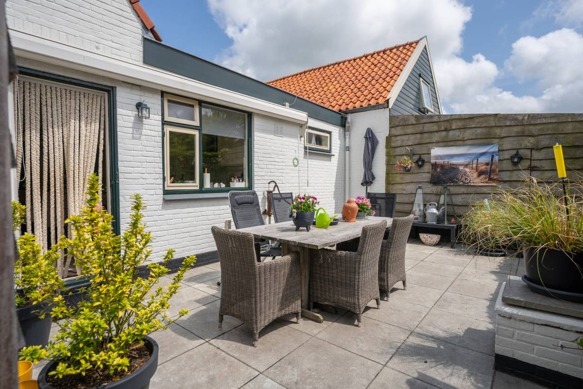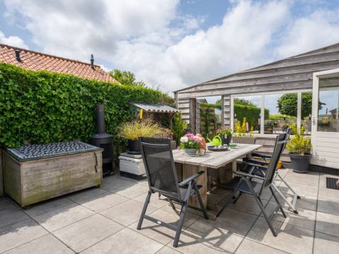 Ook dit huisje beschikt over een eigen terras. Hier kunt u volop genieten van de zon, de Texelse wind en het uitzicht.