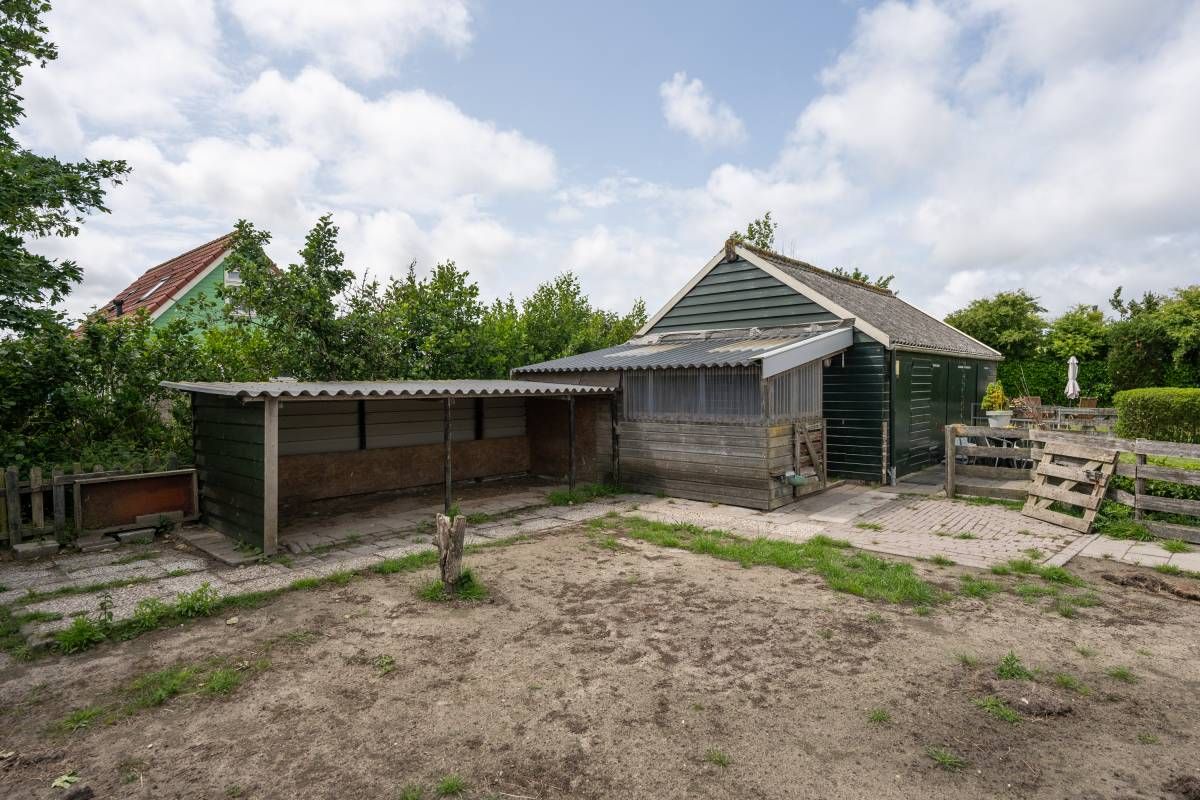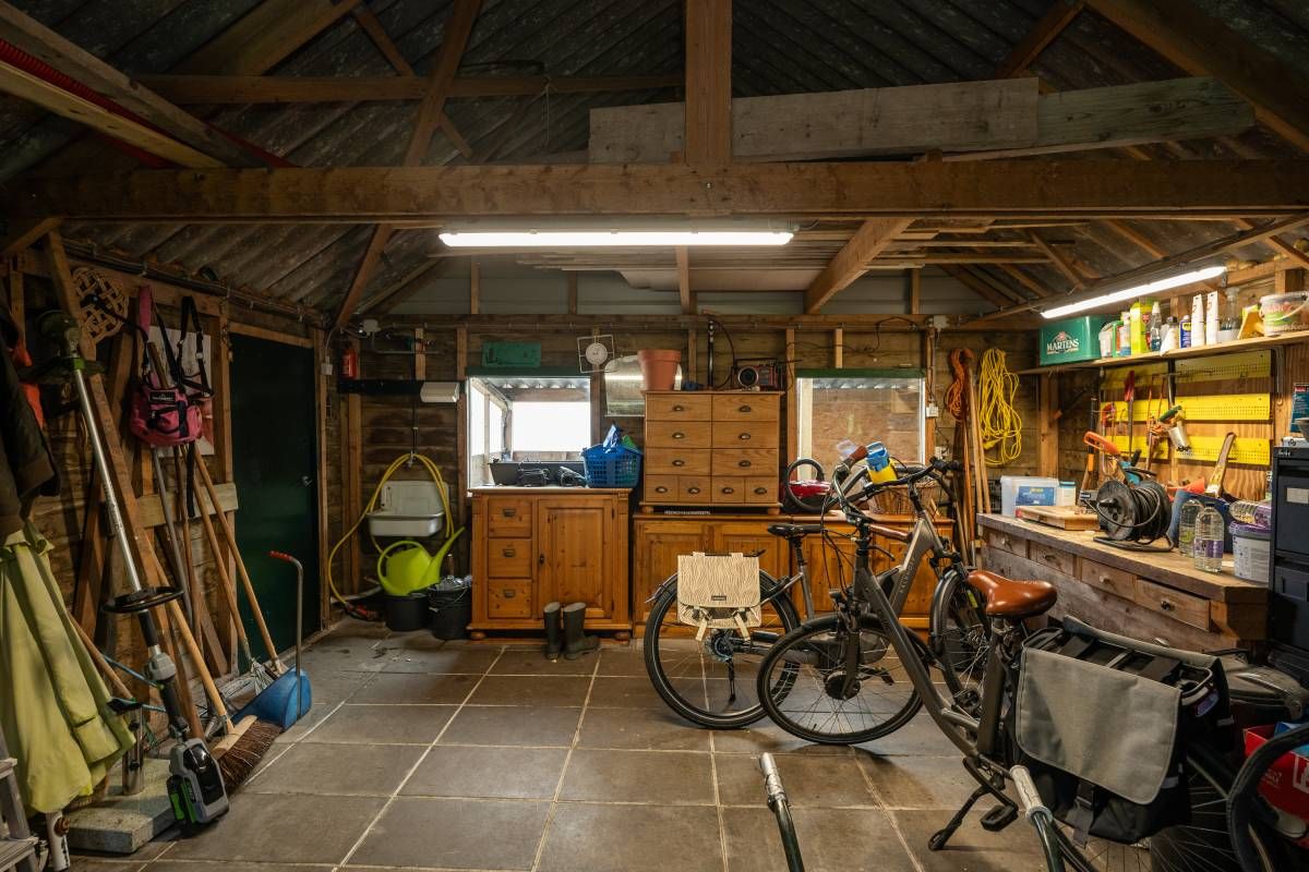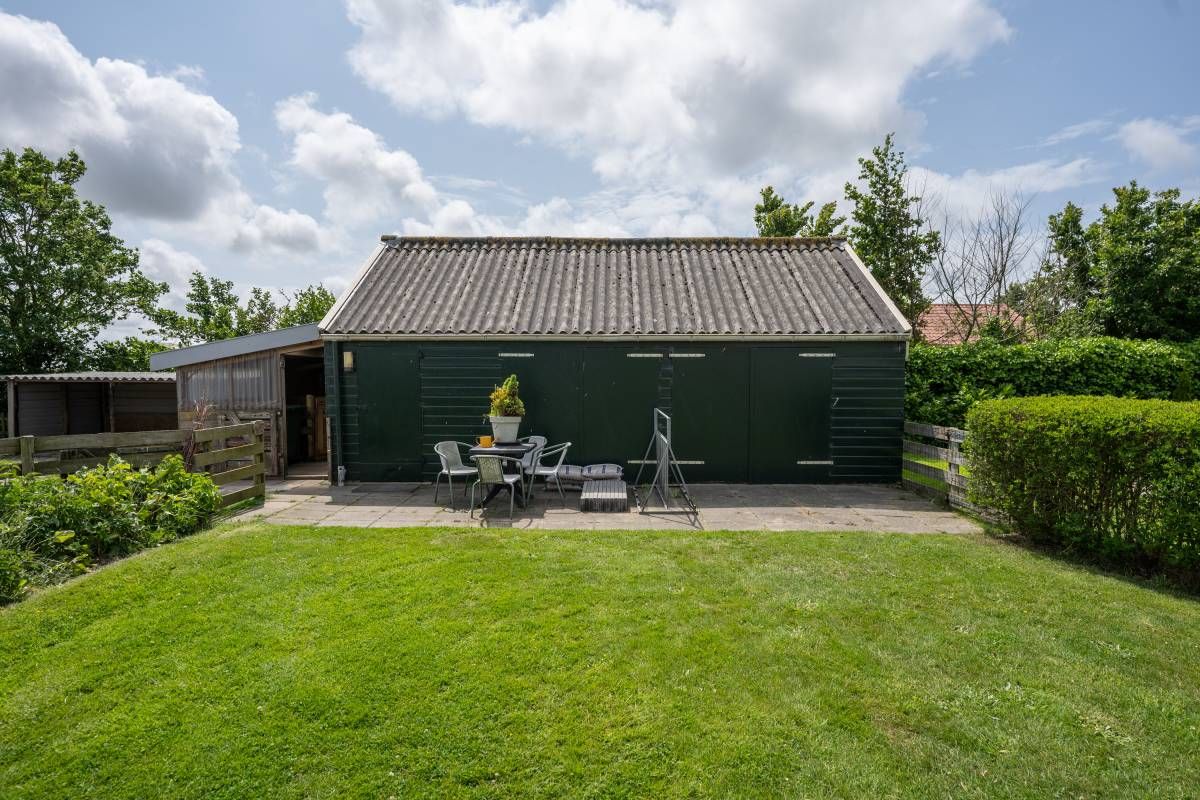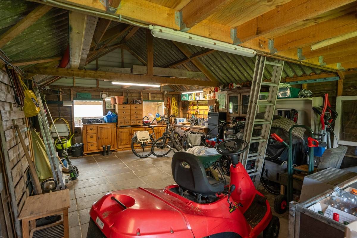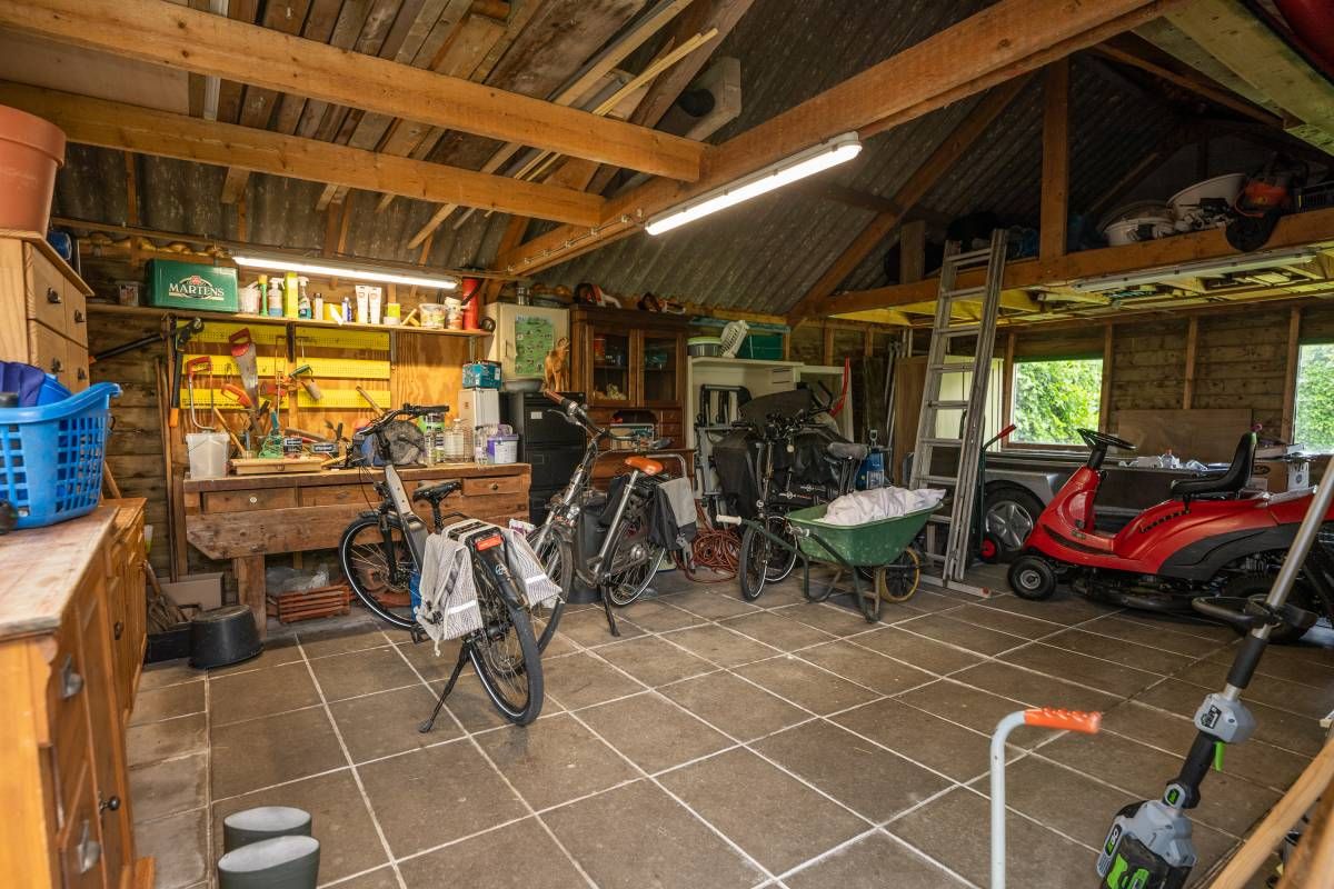 De fraaie tuin heeft alles wat u zich kunt wensen. Veel groen en alle ruimte voor leuke terrasjes, het houden van dieren (een geit, schaap op pony) of een moestuin. Alles is hier mogelijk! In de schuur kunt u al uw tuinmaterialen en fietsen kwijt. Daarnaast is een overkapping gesitueerd waar u naar wens uw diertjes kunt stallen.