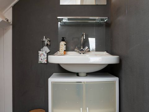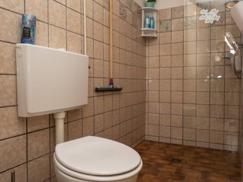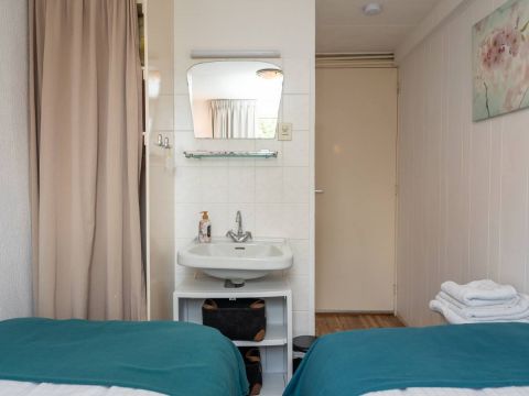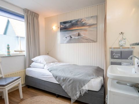 Dit huisje beschikt over twee slaapkamers op de begane grond met wastafel. Vanuit de hal bereikt u ook de eenvoudige badkamer met douche en toilet.