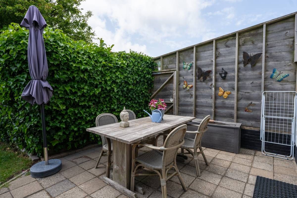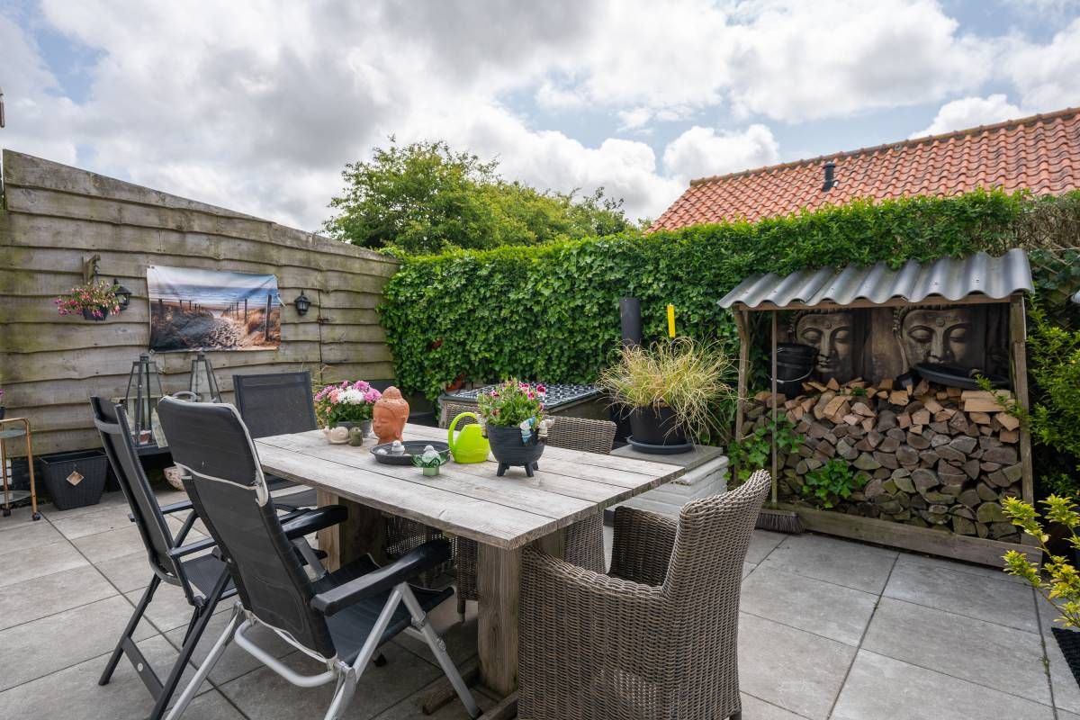 Direct grenzend aan het woonhuis een heerlijk betegeld en keurig terras. Hier heeft u twee aaneengesloten plaatsjes waar u heerlijk kunt vertoeven. Hier kunt u beschut genieten van het buitenleven!