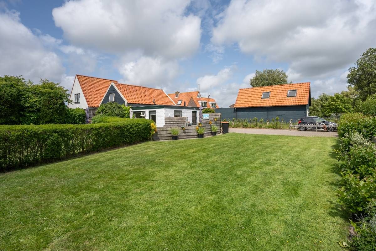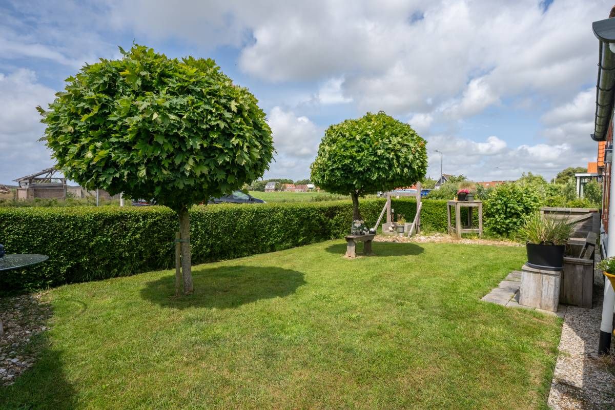 Tuin | Achter de woning ontvouwt zich een prachtig, verrassend ruim perceel dat voelt als een eigen stukje paradijs op Texel. Het terrein is met zorg ingericht en biedt een harmonieuze mix van tuin, een dierenweide, groen en erf.