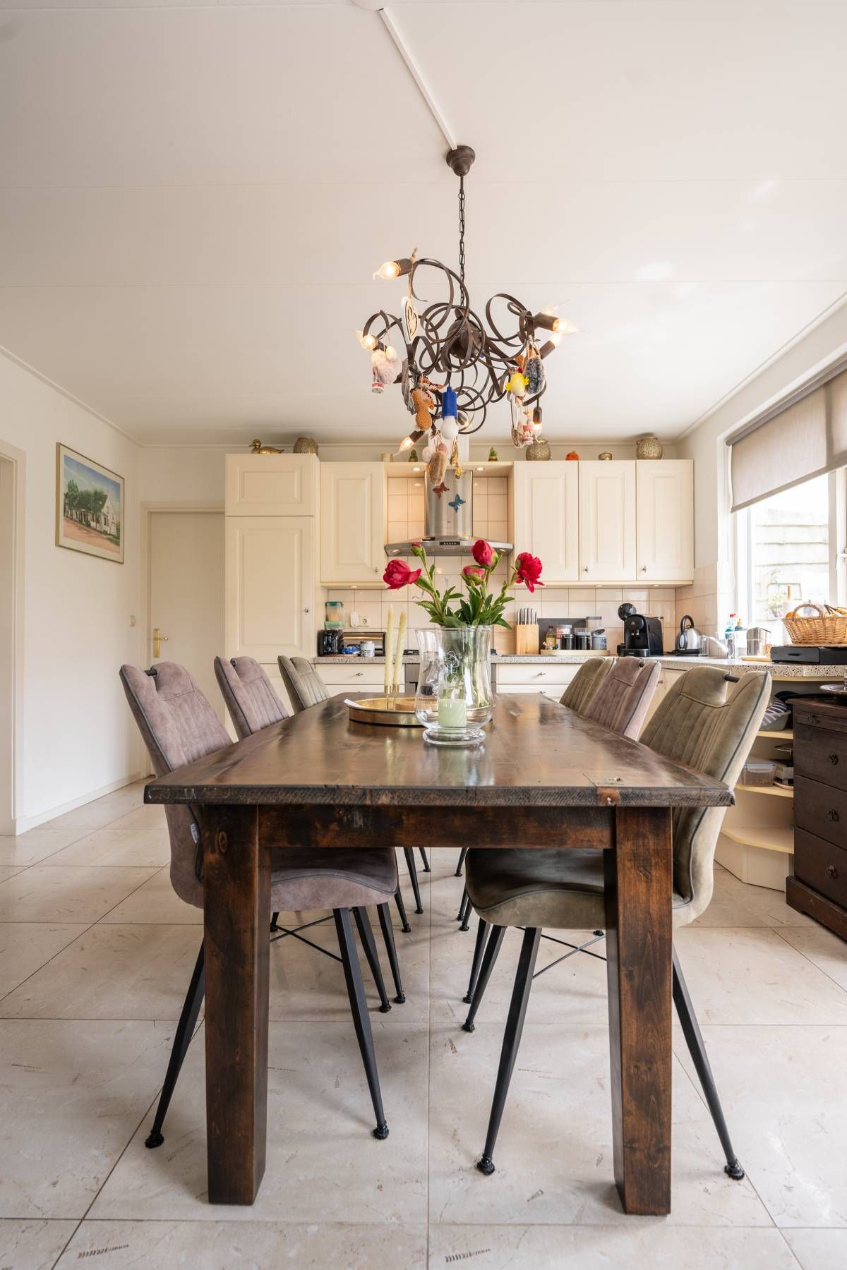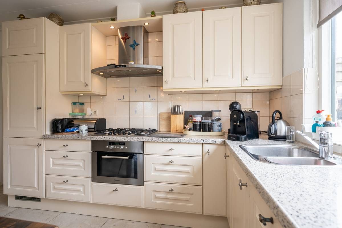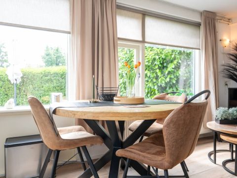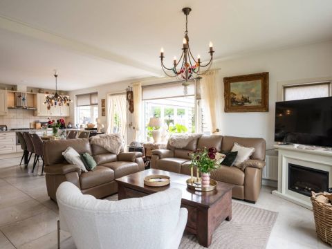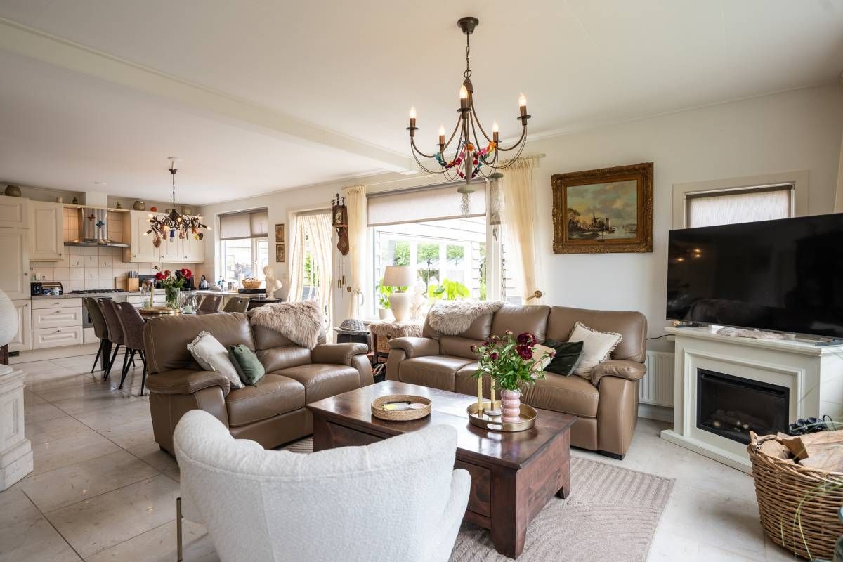 Ook deze woonkamer is heerlijk licht en smaakvol ingericht. De keuken beschikt over diverse gemakkelijk om een heerlijke maaltijd te bereiden.