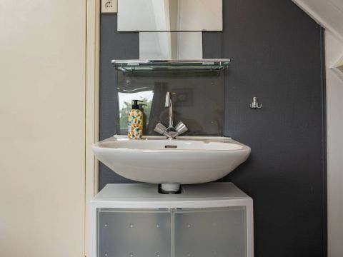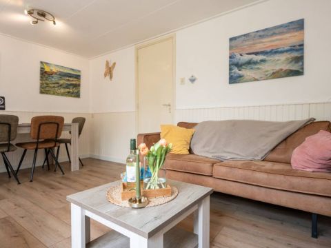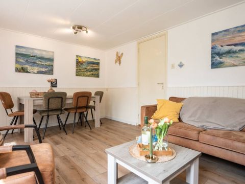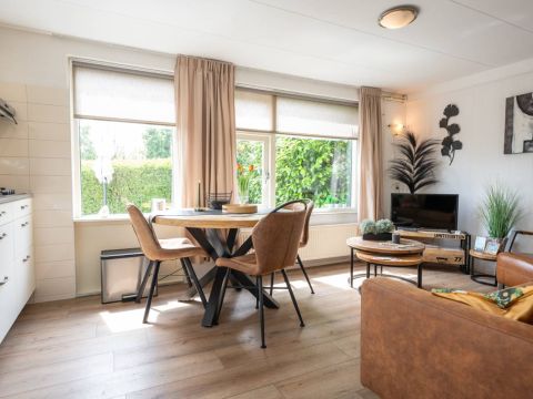 De recreatiewoning beschikt over een eigen terras, heerlijk beschut gelegen, waar u tot in de avondzon kunt zitten met een boek of glas wijn.