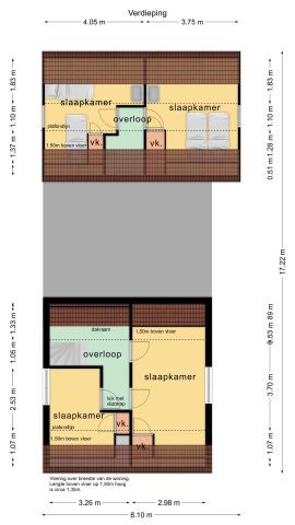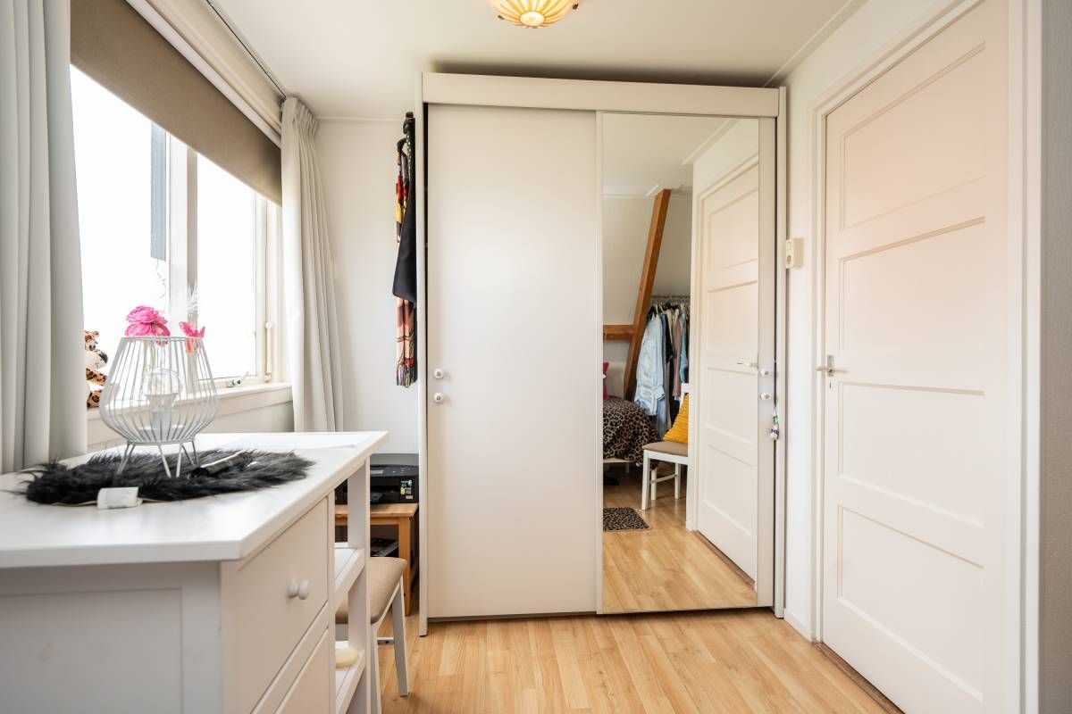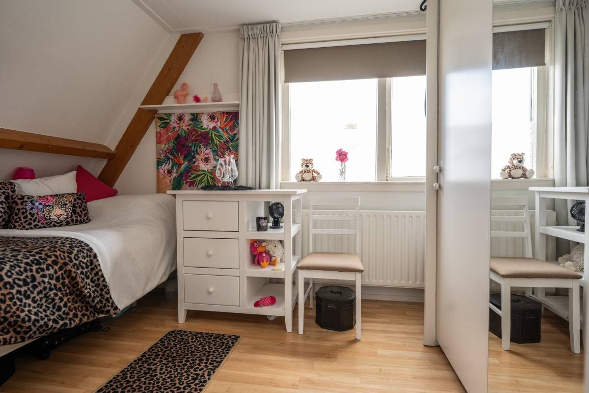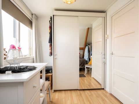 Via de centrale hal waar zich ook het toilet bevindt komt u via de trapopgang op de overloop van de verdieping. Op de verdieping bevinden zich twee fijne slaapkamers, beide met een vaste kast.