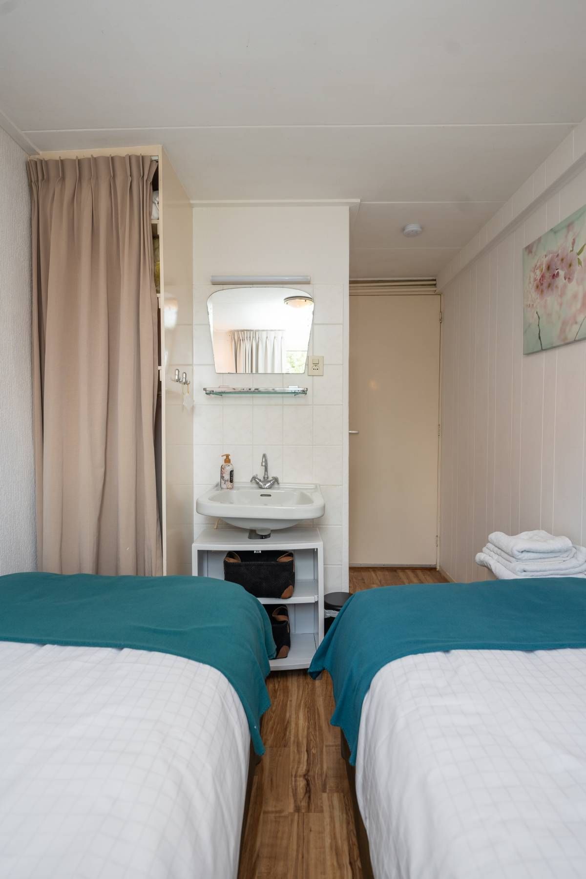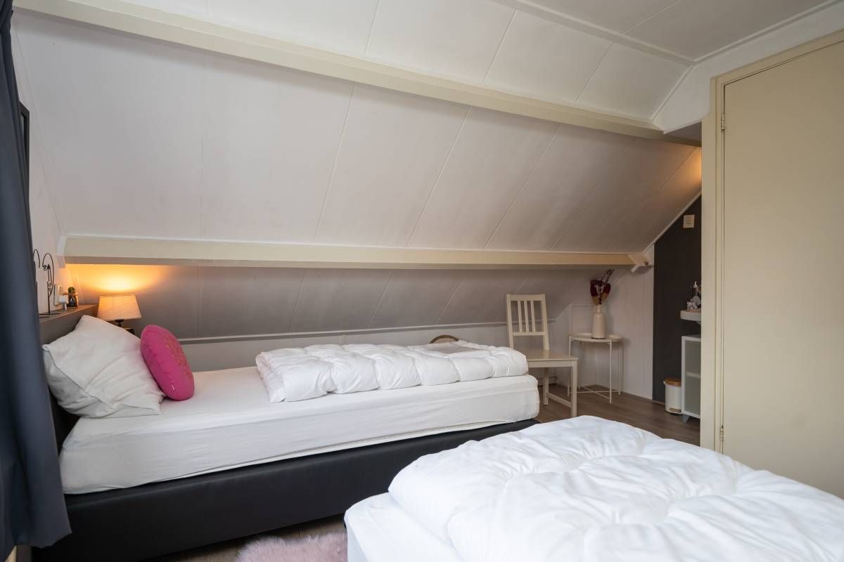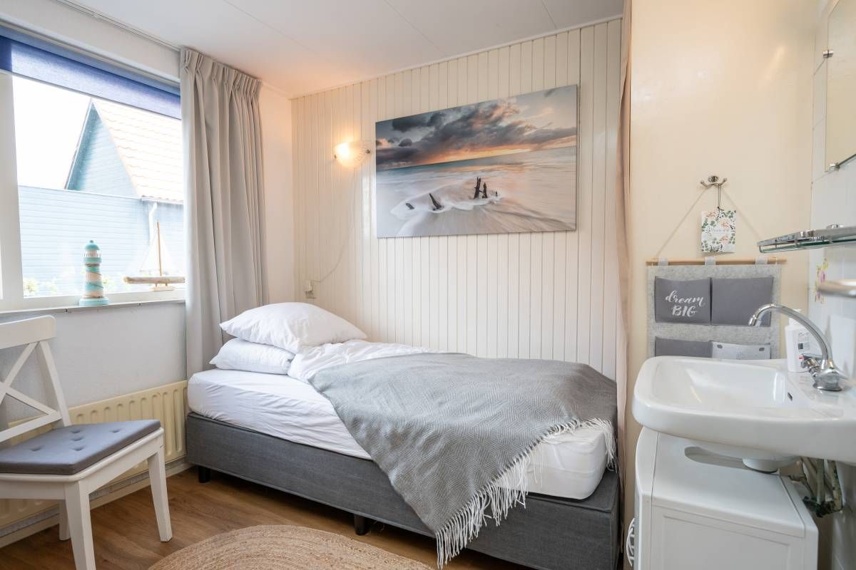 Op de verdieping bevinden zich nog twee slaapkamers met wastafel en vaste kast.