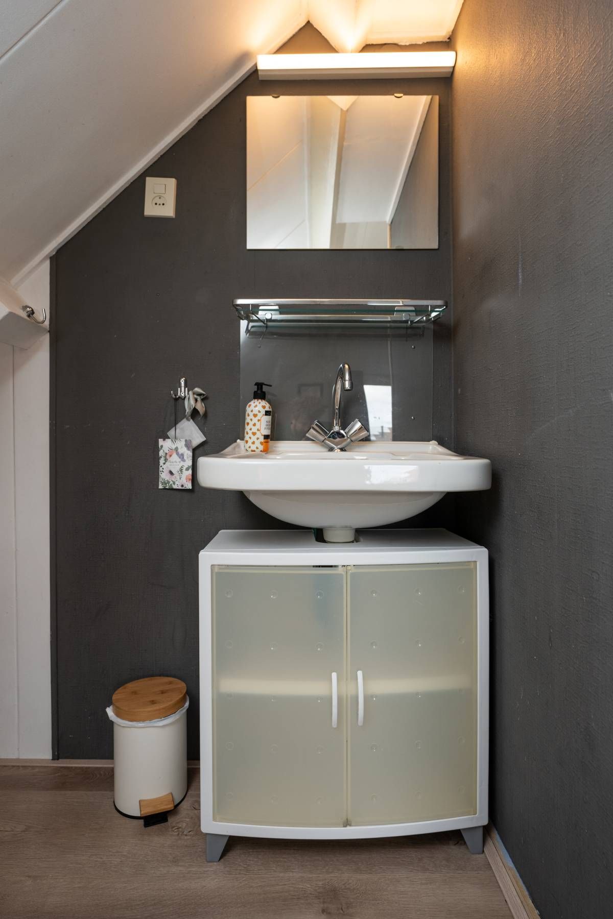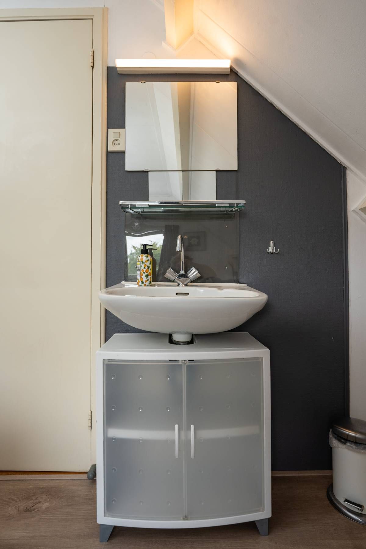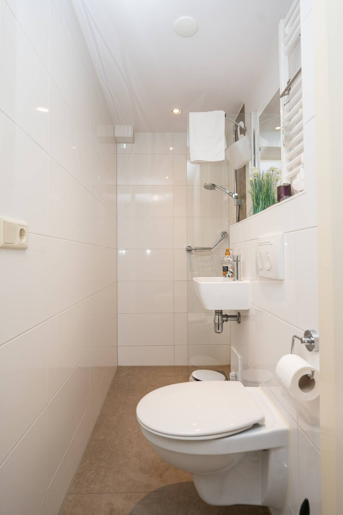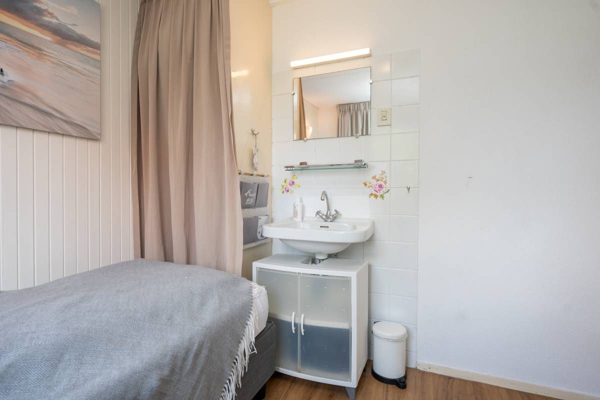 Op de begane grond treft u een slaapkamer en de moderne badkamer welke is voorzien van een inloopdouche, wastafel en toilet.