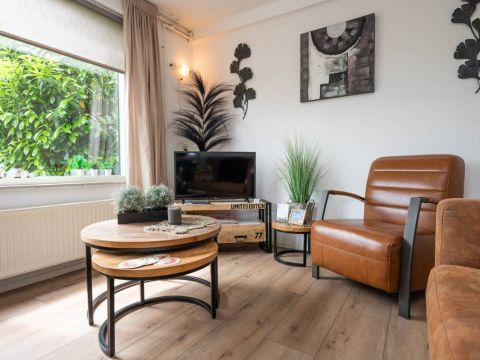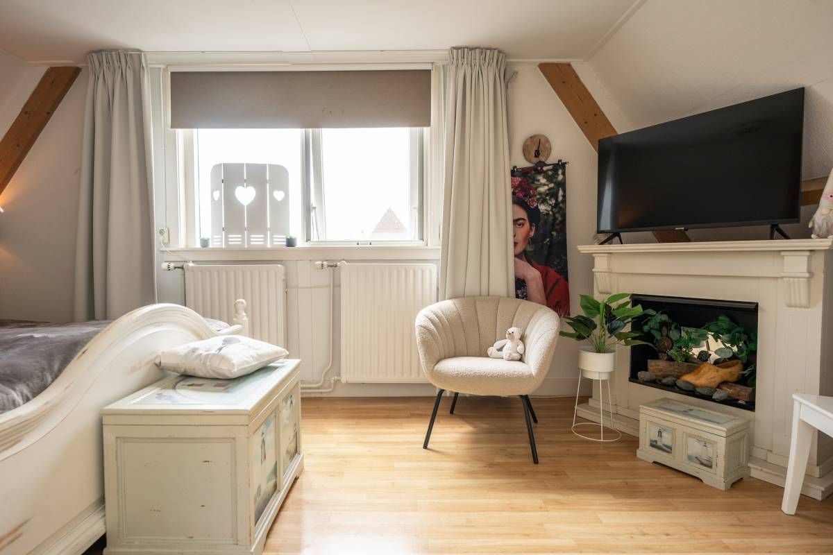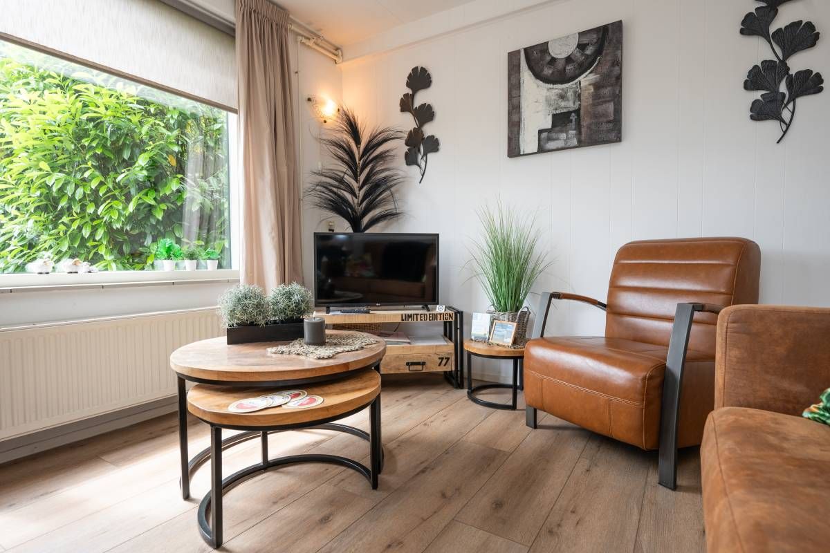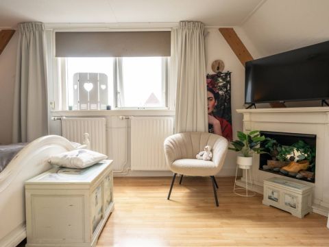 De sfeervolle living is heerlijk licht en heeft een deur welke toegang biedt naar het eigen privé terras. Een fijne ruimte om “vakantie te vieren”.