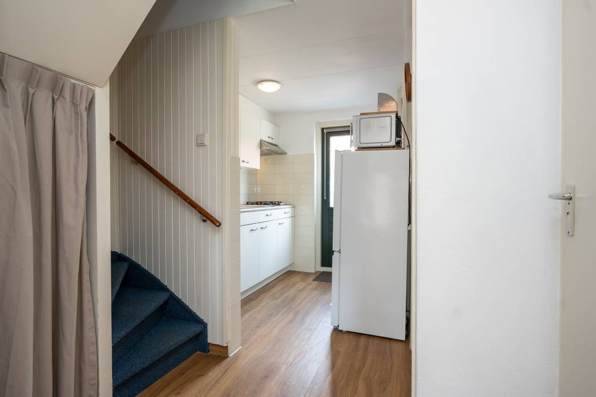 Recreatiewoning I | Via de hal/entree stapt u binnen in de open keuken die van de nodige gemakken is voorzien. Vanuit de hal bereikt u tevens de slaapkamer en badkamer.
