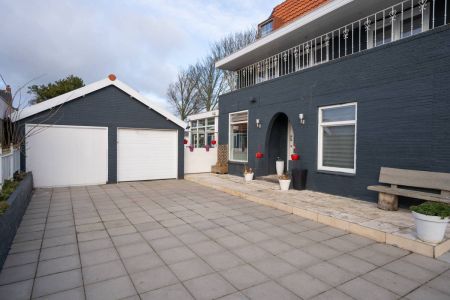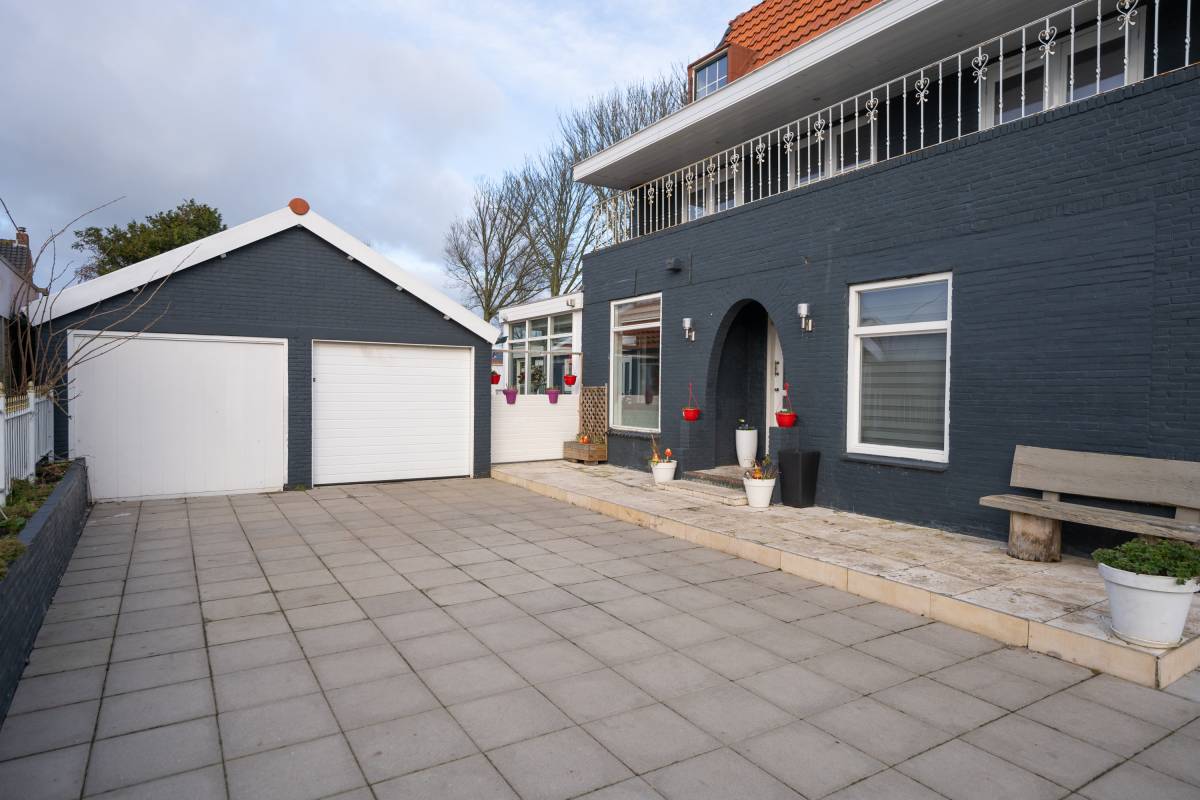 De dubbele garage is voorzien van een elektrische roldeur en op de oprit hiervoor kunnen met gemak meerdere auto’s worden geparkeerd.