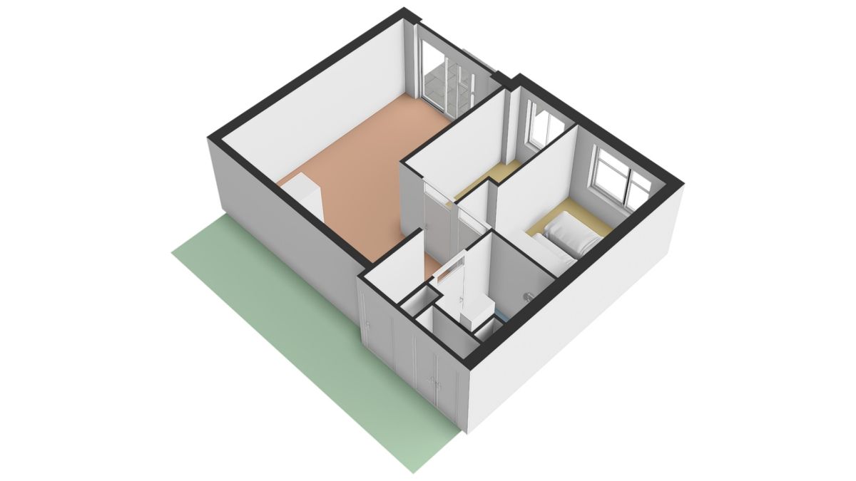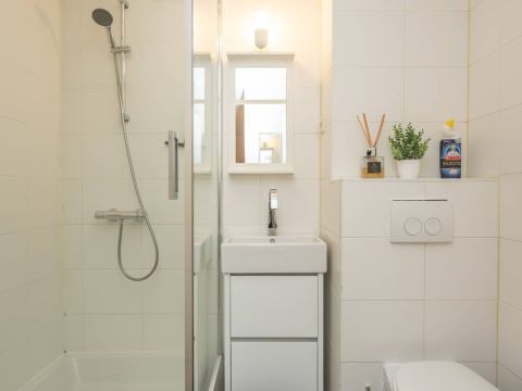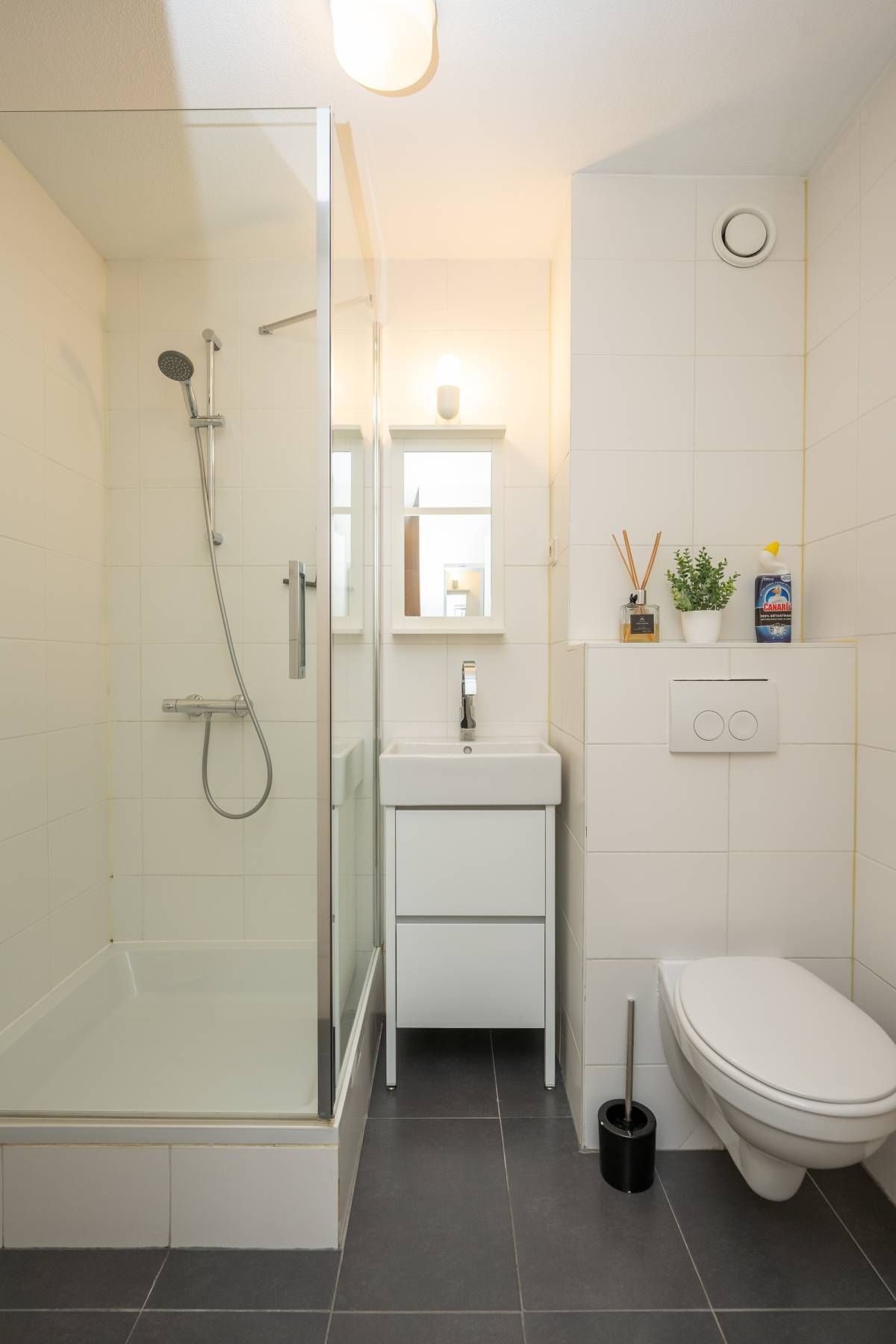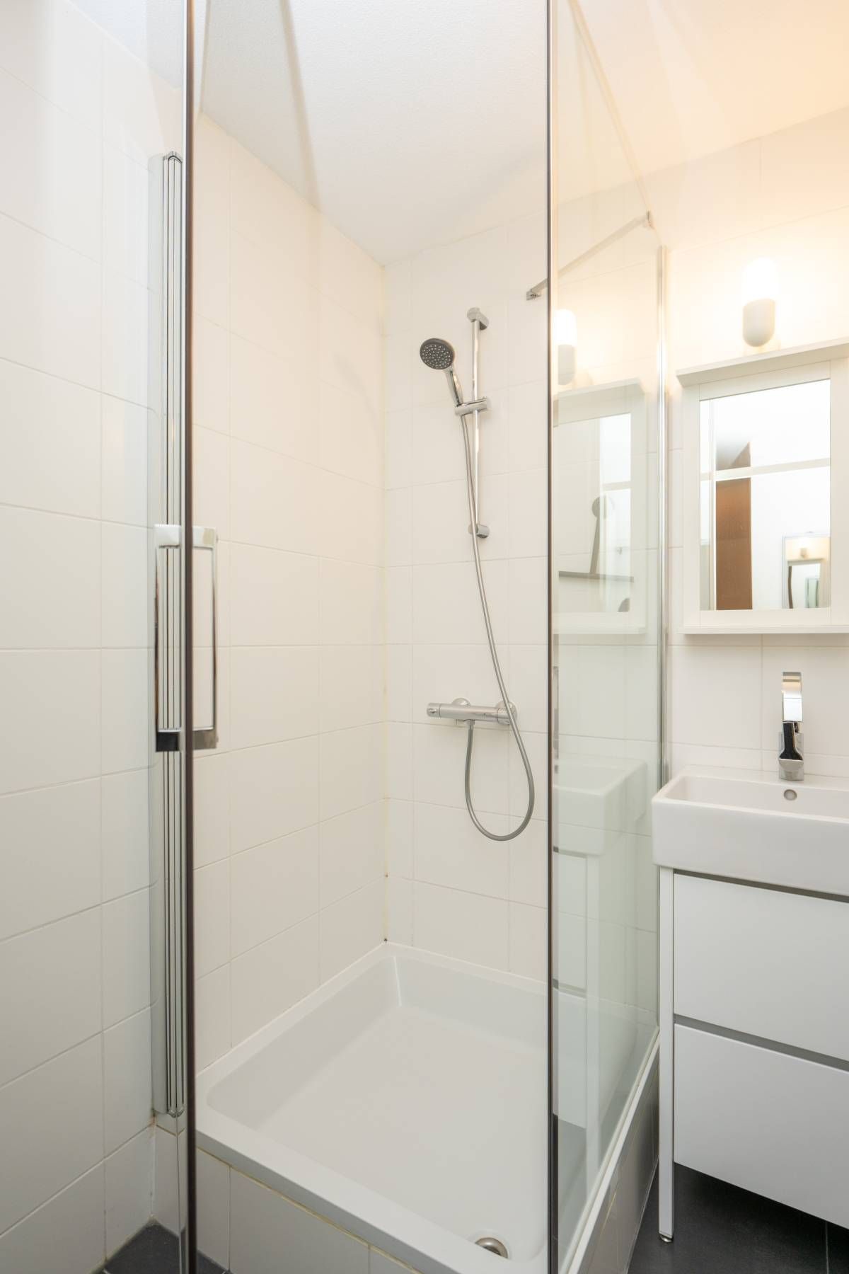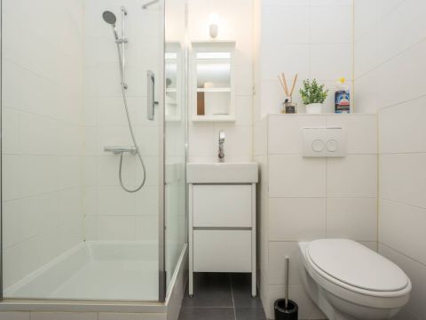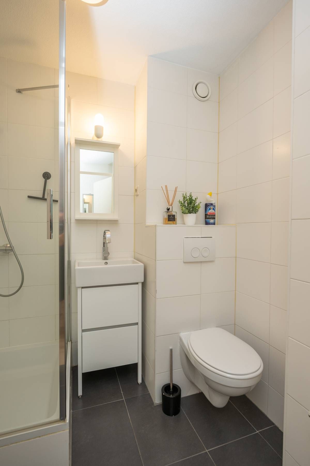 De twee slaapkamers (één 2-persoons en één 1-persoons) zijn verzorgd afgewerkt. De badkamer is uitgerust met een douchecabine, toilet en modern wastafelmeubel.