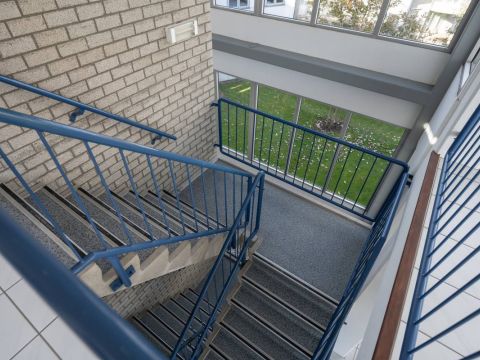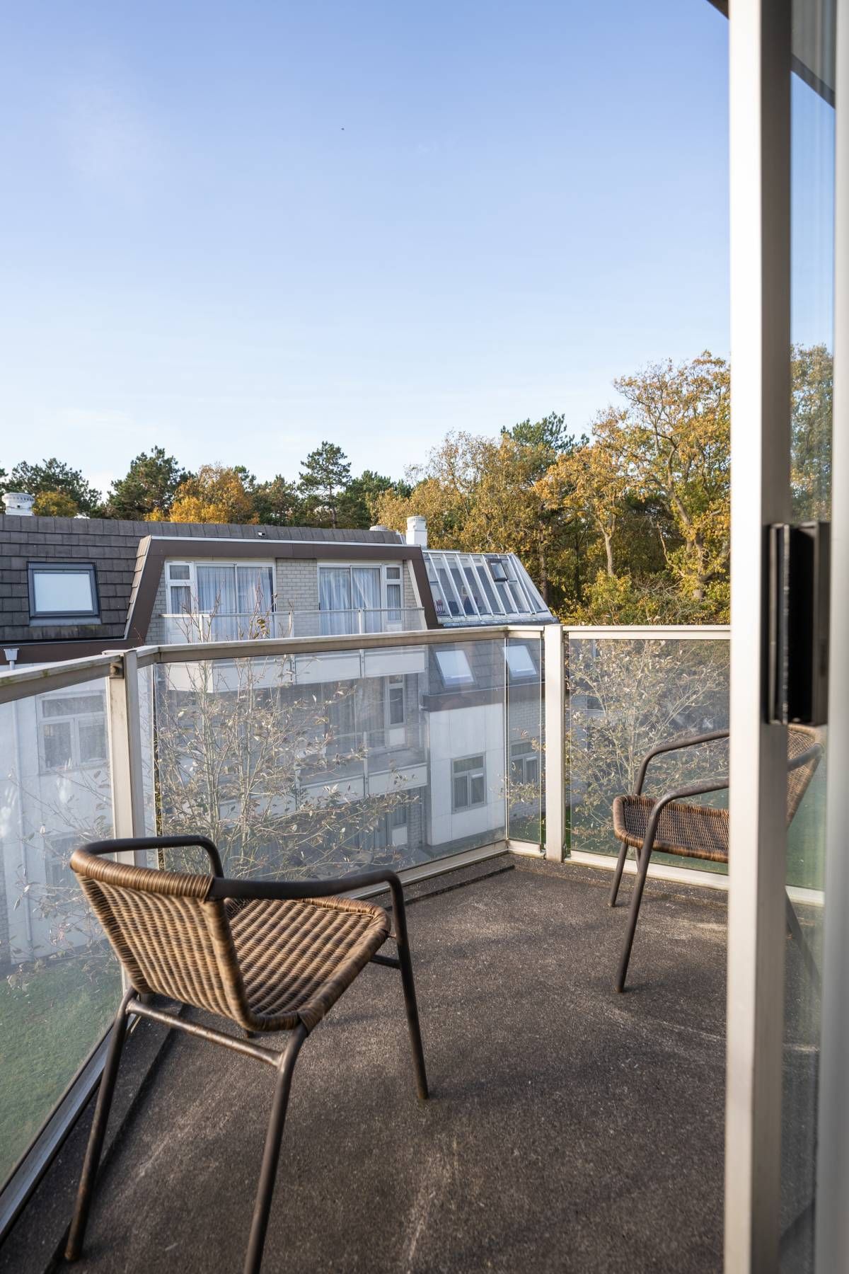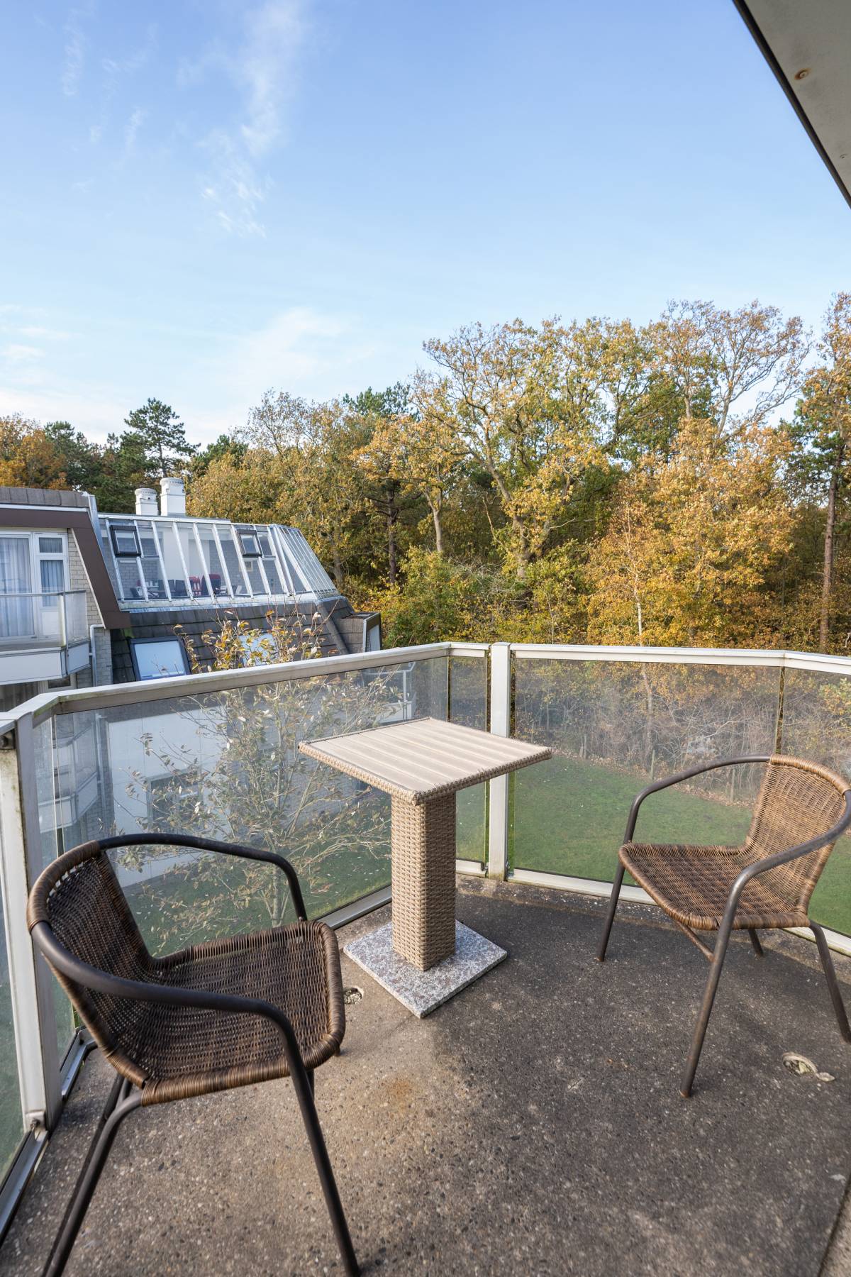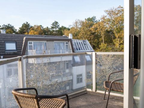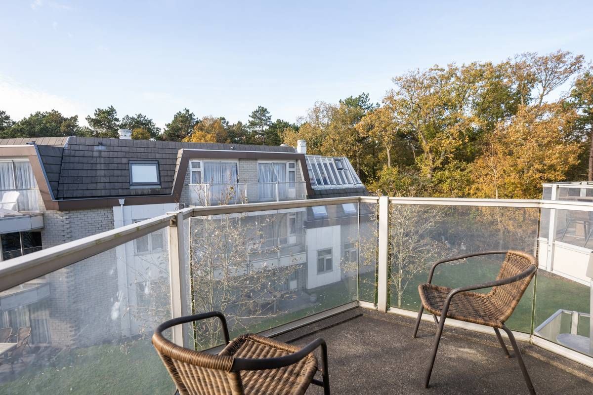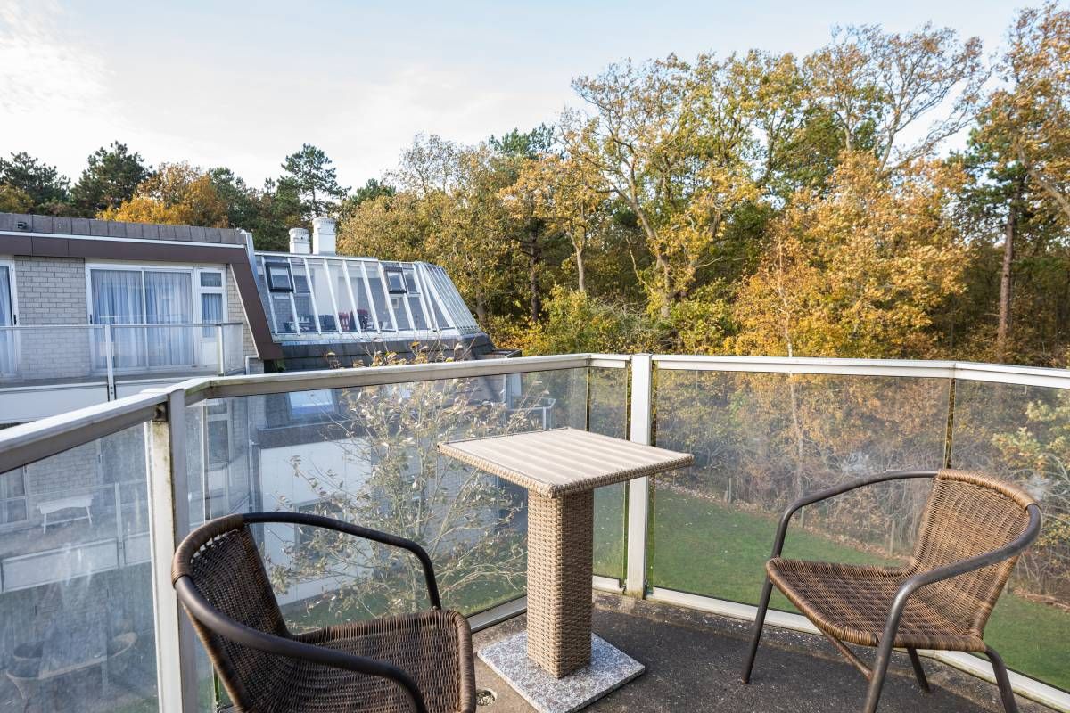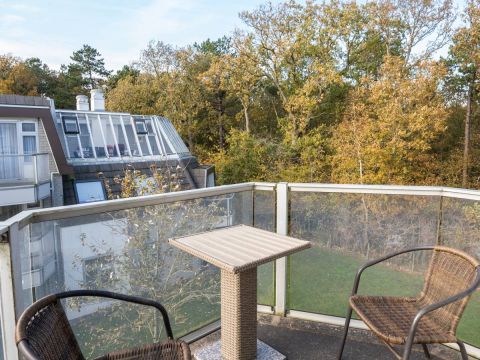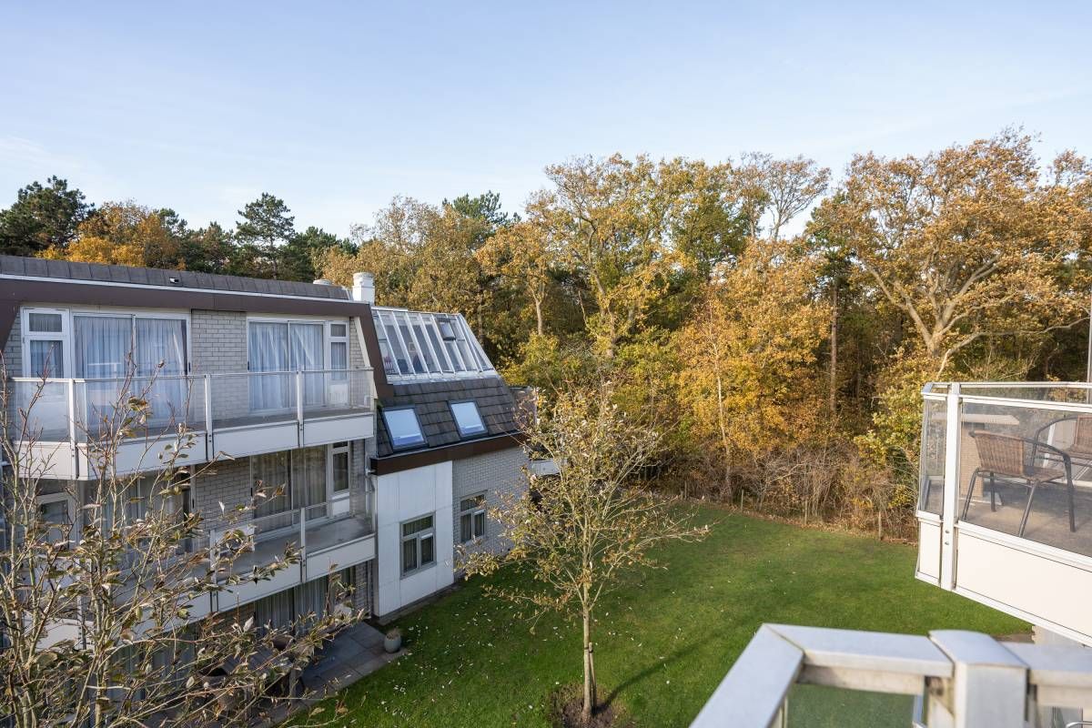 Vanuit zowel het appartement als het balkon geniet u van een groen uitzicht op het aangrenzende bos en de binnenplaats van het complex.