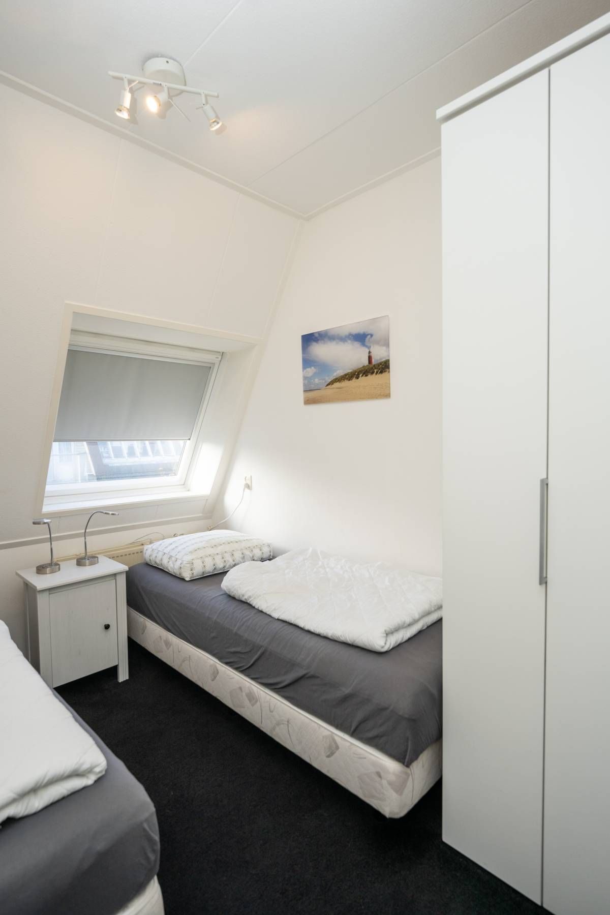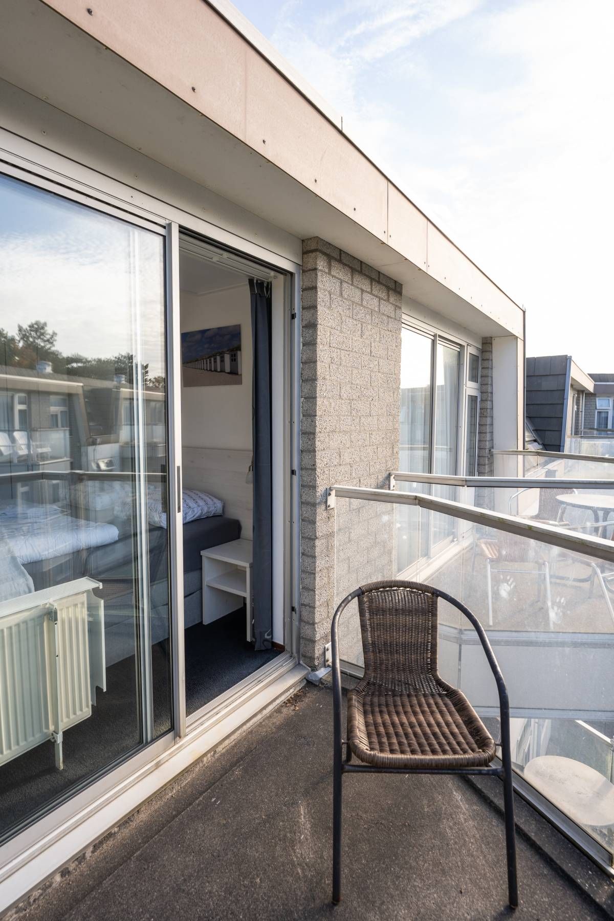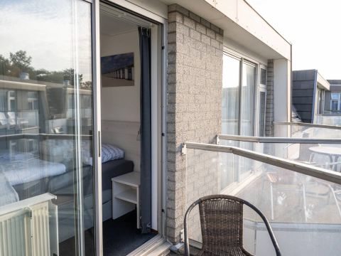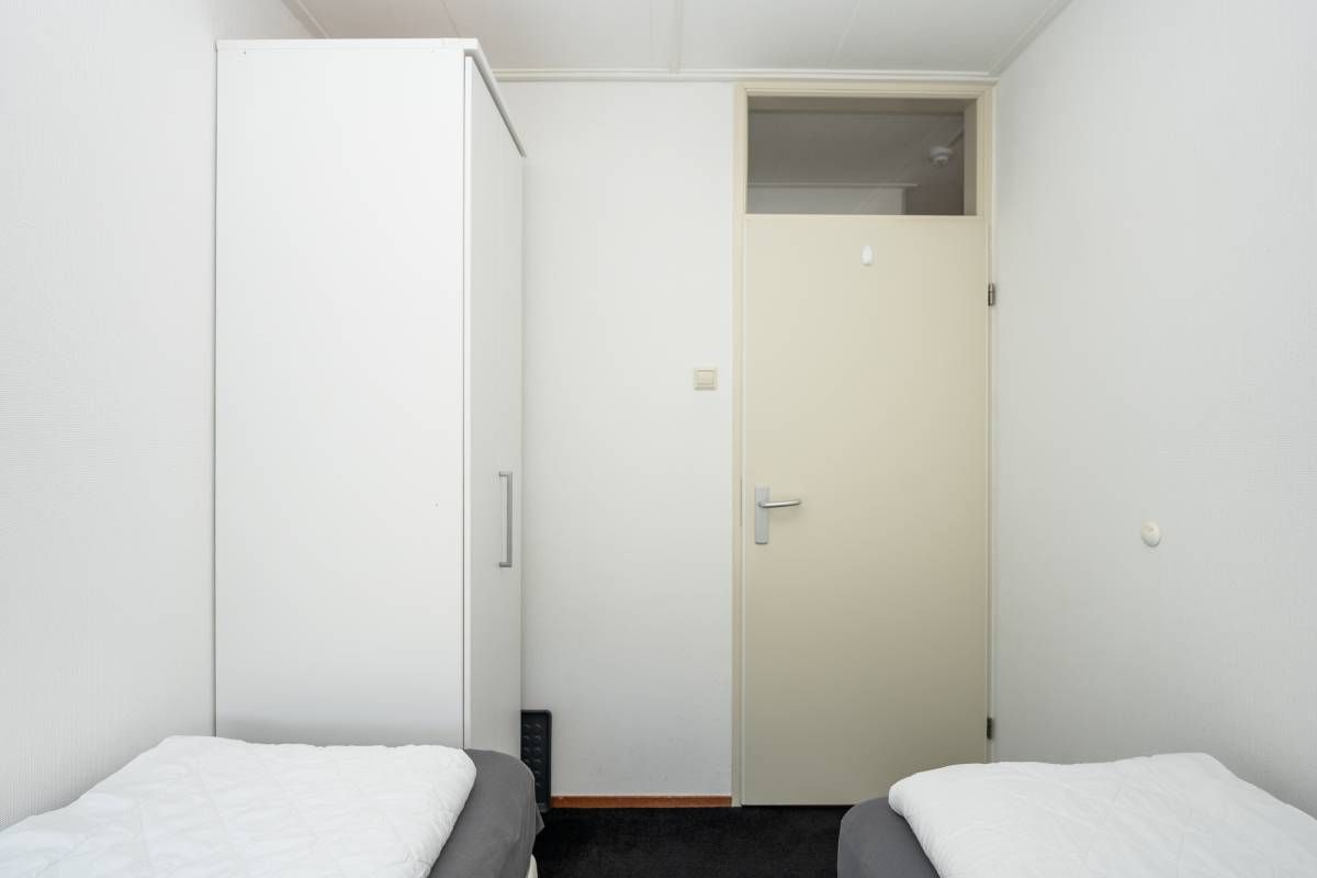 Het appartement beschikt over twee slaapkamers, beide van goed formaat. Eén van de slaapkamers biedt toegang tot een eigen balkon.