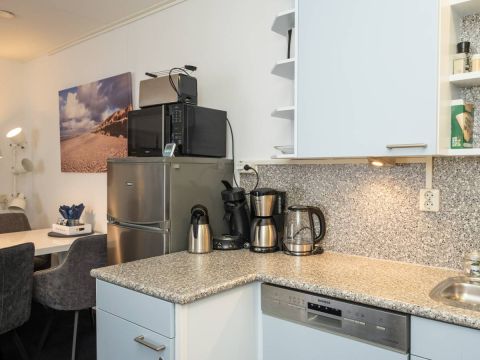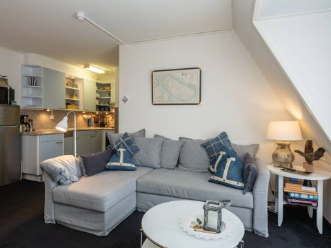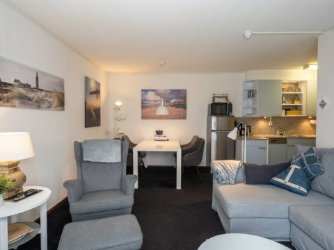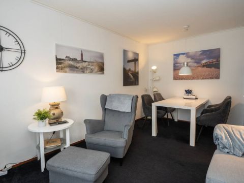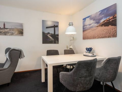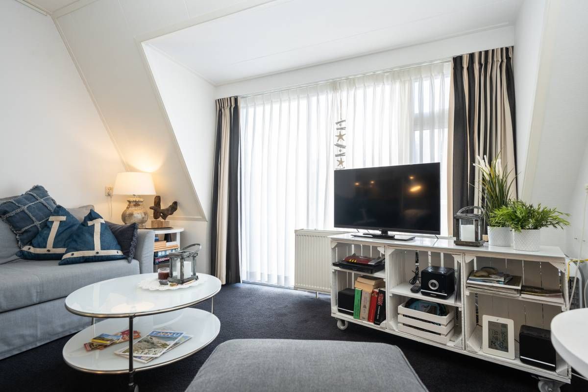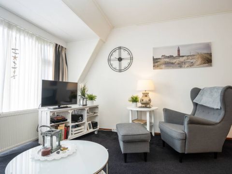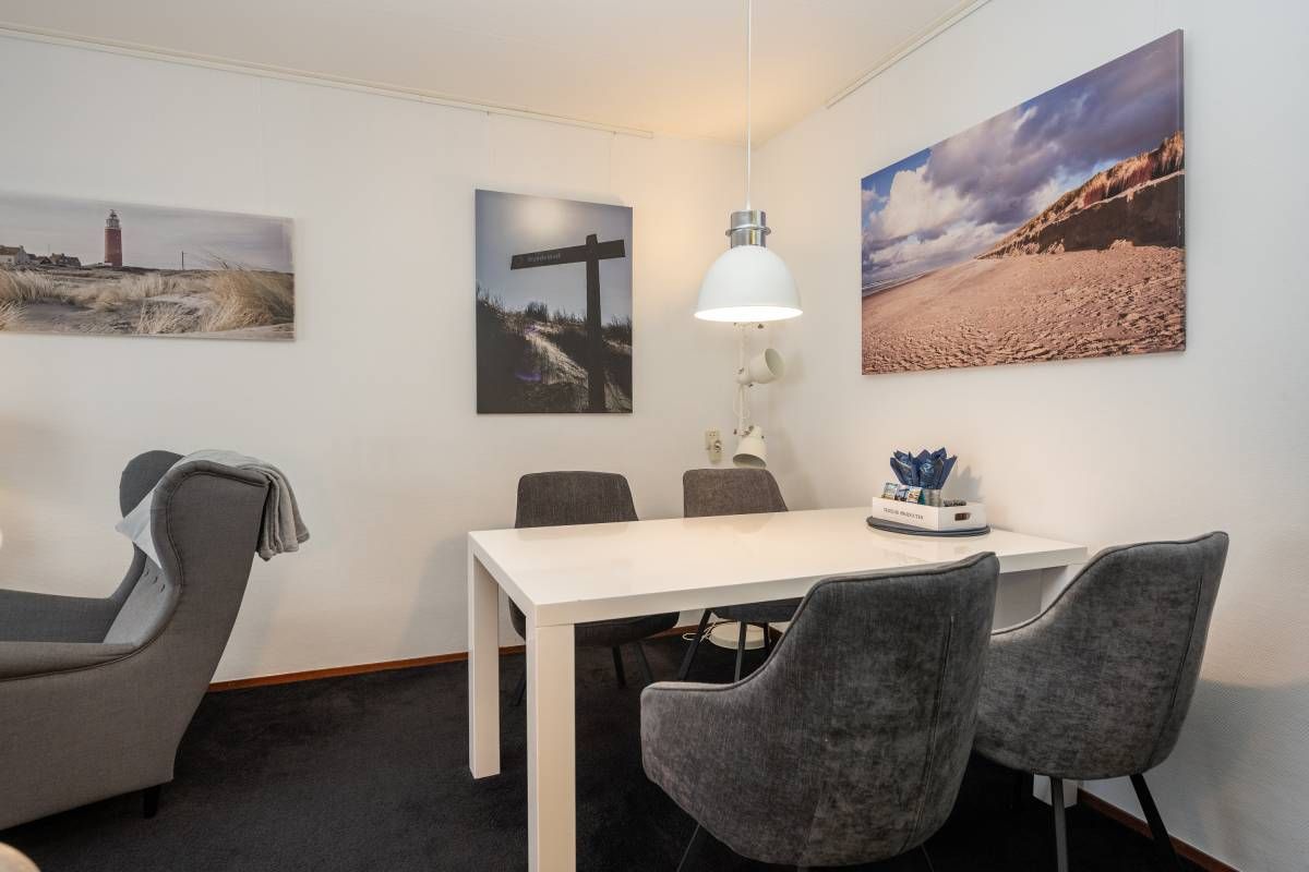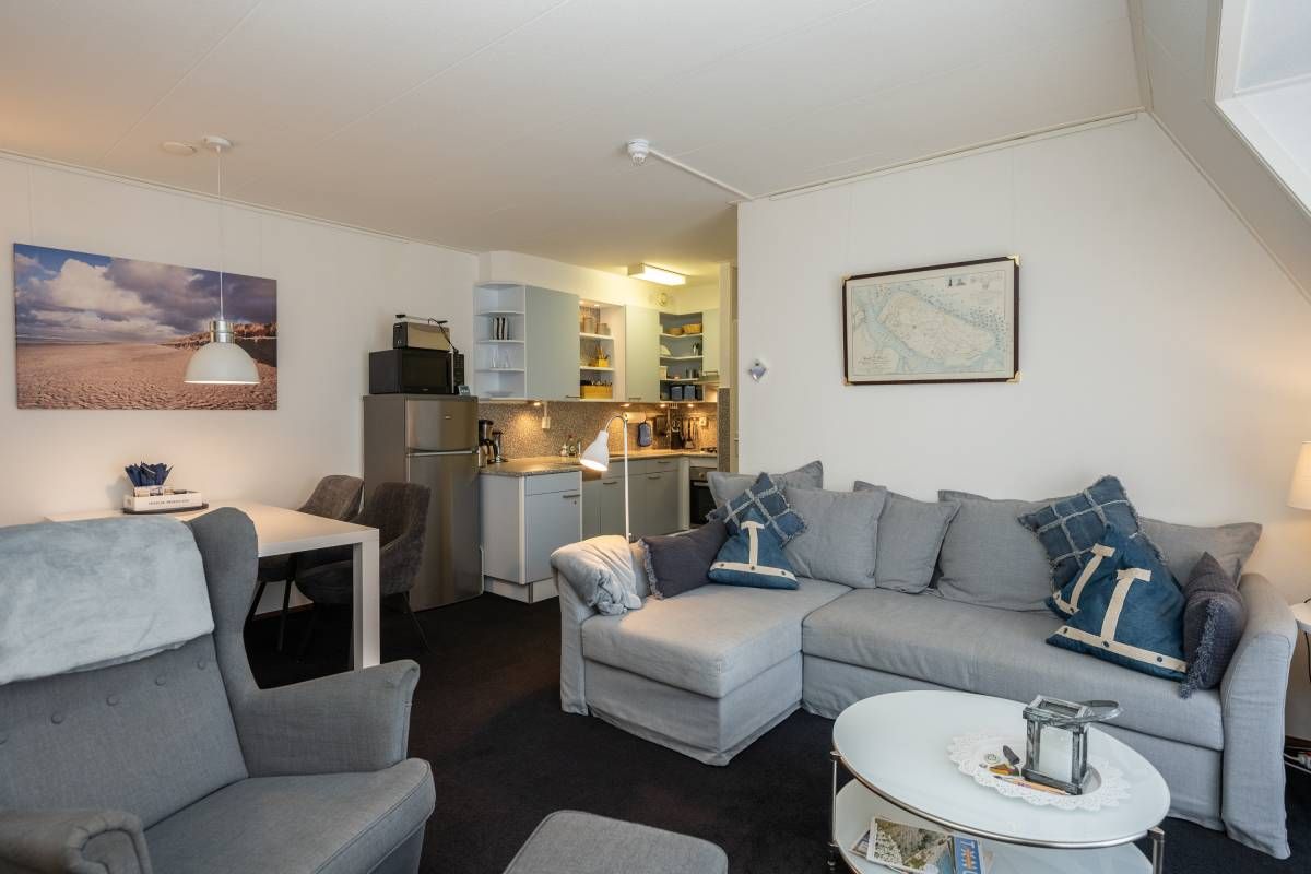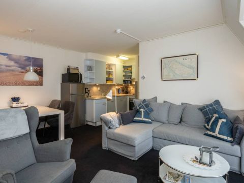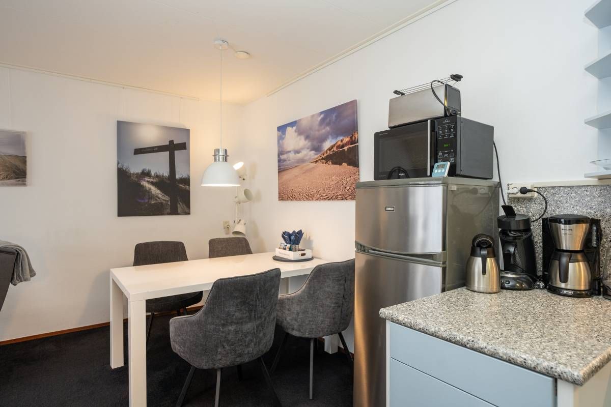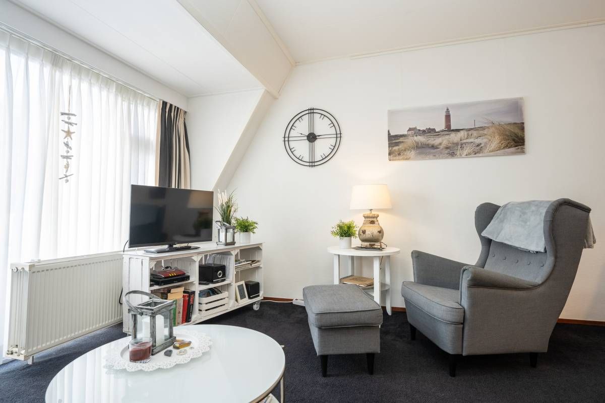 Via de hal heeft u toegang tot de woonkamer, de twee slaapkamers en de badkamer. De woonkamer heeft een fijne lichtinval, sfeervolle zit– en eet hoek en voelt huiselijk aan. Een heerlijke plek om te vertoeven op het mooie Texel.