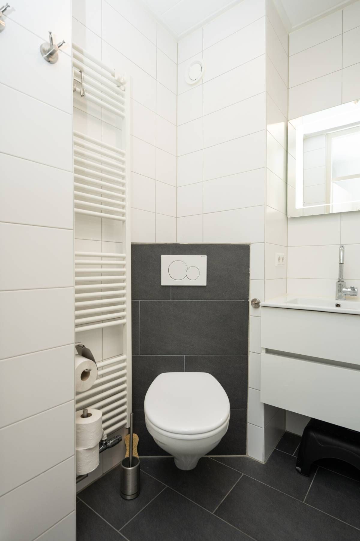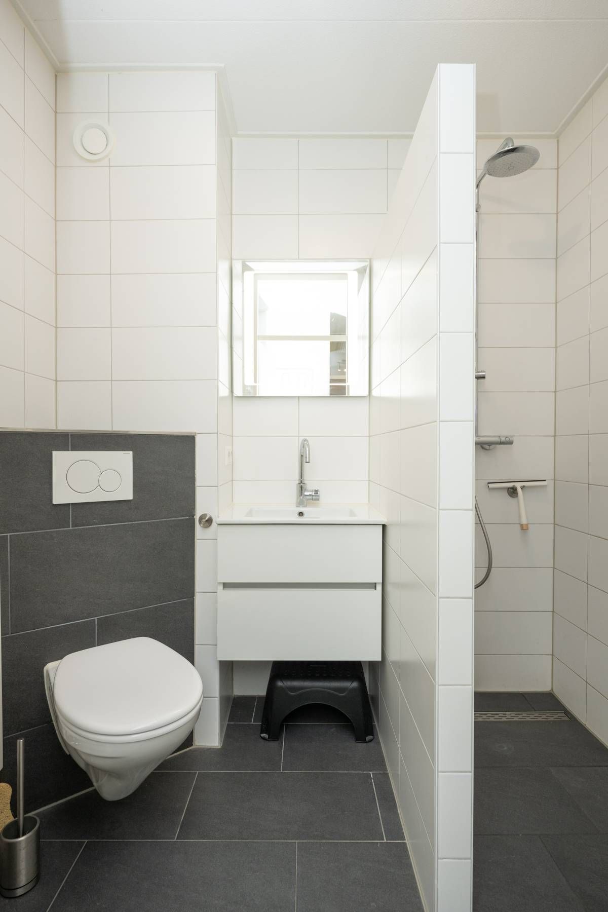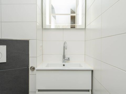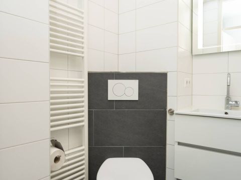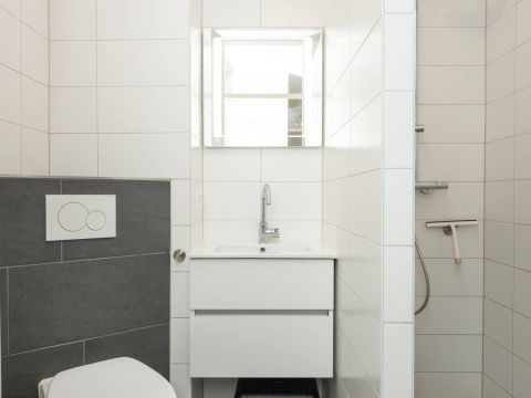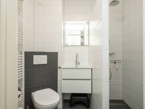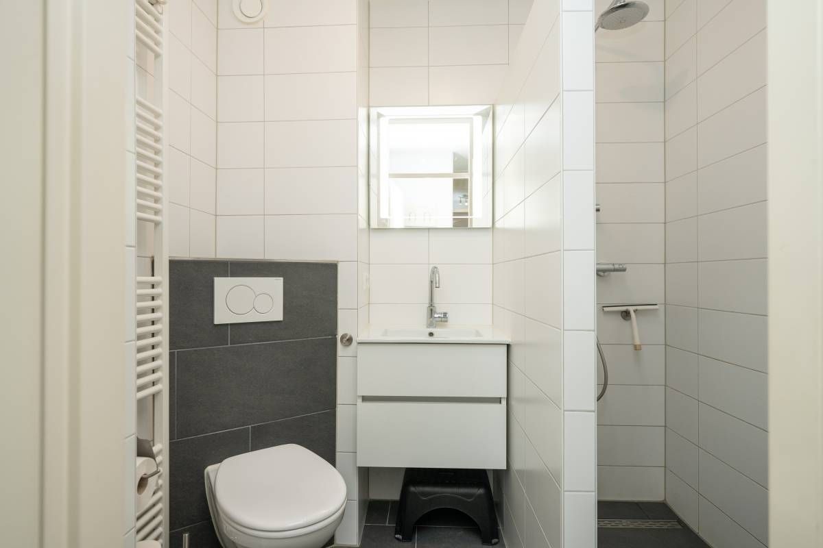 De moderne badkamer beschikt over een inloopdouche, wastafel meubel en een toilet. Bij het appartement behoort een eigen berging. Ideaal voor het opbergen van uw fietsen.