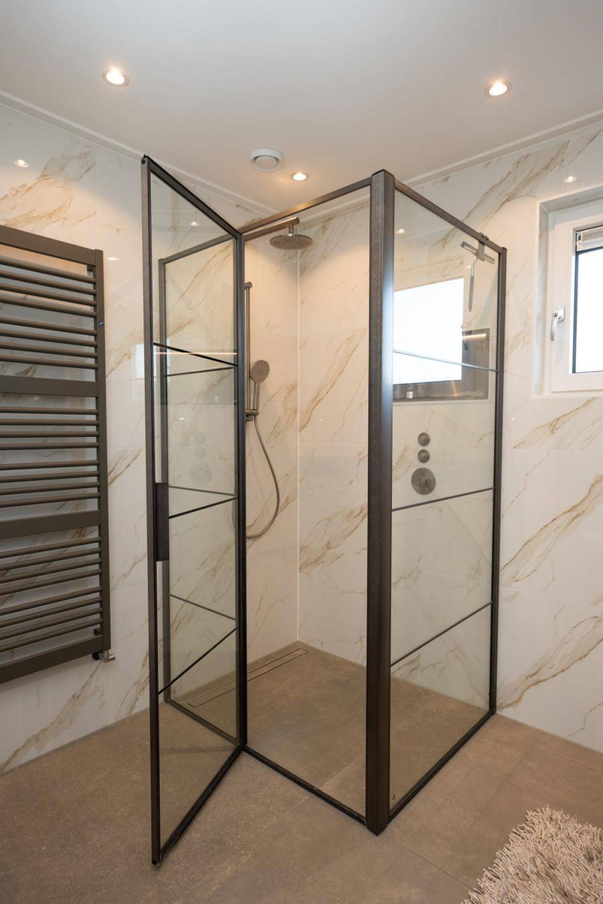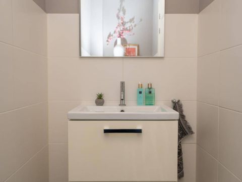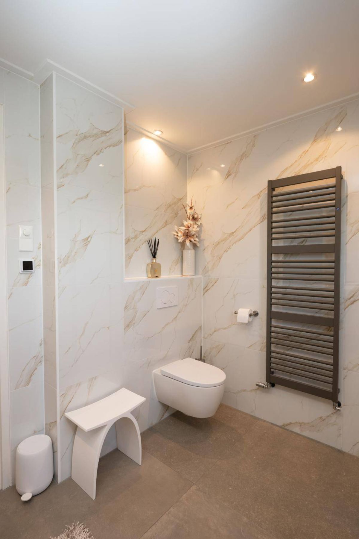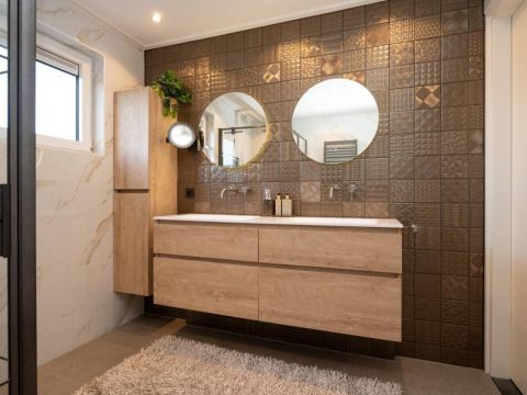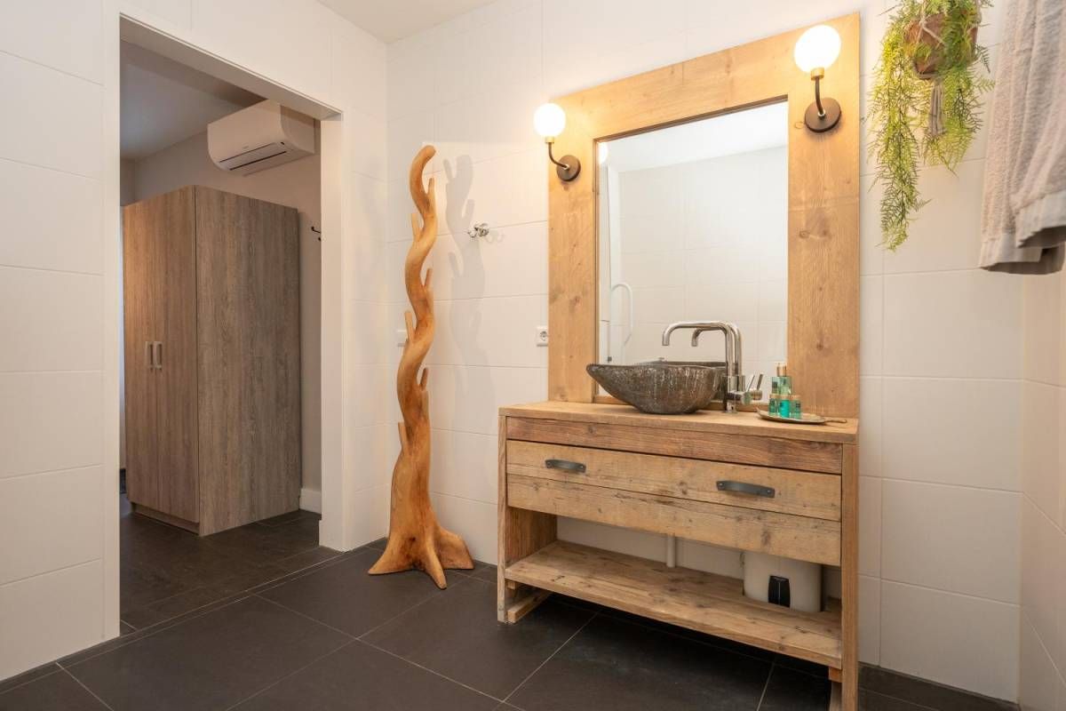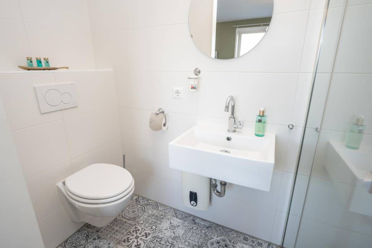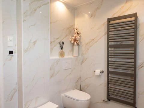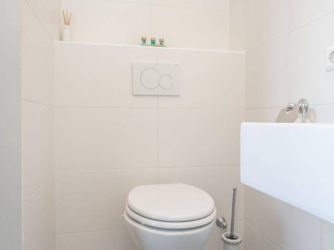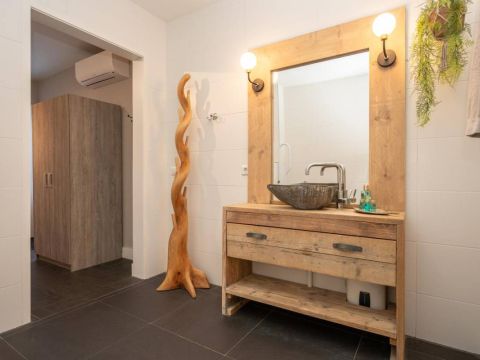 1 kamer wordt voor privé gebruikt (Master-bedroom) en maakt gebruik van de privé-badkamer, deze heeft het échte wauw-effect. De sfeer, de keurige afwerking en de rustige kleurencombinatie zorgen voor een prachtig geheel. De badkamer beschikt over een inloopdouche, een dubbel wastafelmeubel en een vrijhangend toilet (uiteraard met vloerverwarming).