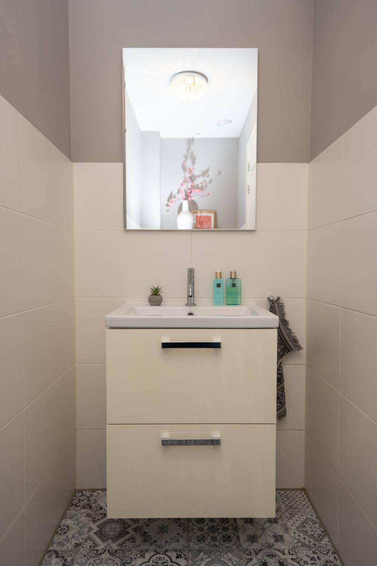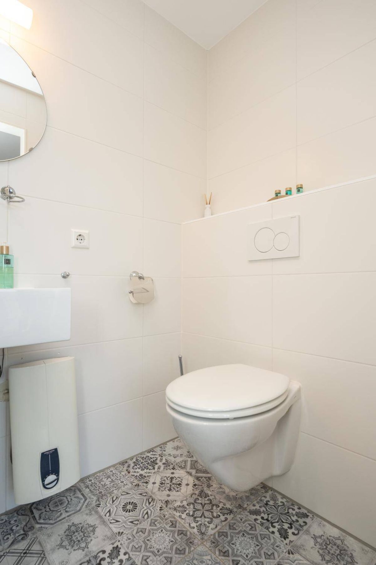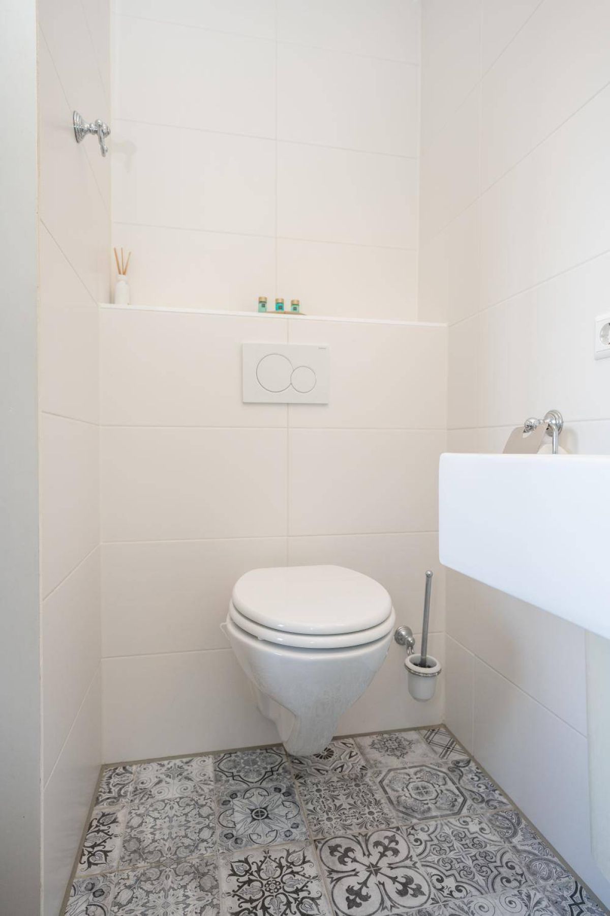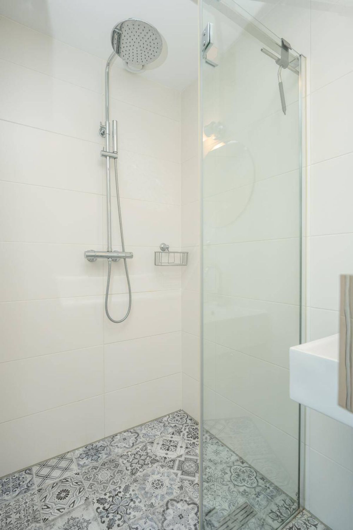1 kamer wordt voor privé gebruikt (Master-bedroom) en maakt gebruik van de privé-badkamer, deze heeft het échte wauw-effect. De sfeer, de keurige afwerking en de rustige kleurencombinatie zorgen voor een prachtig geheel. De badkamer beschikt over een inloopdouche, een dubbel wastafelmeubel en een vrijhangend toilet (uiteraard met vloerverwarming).