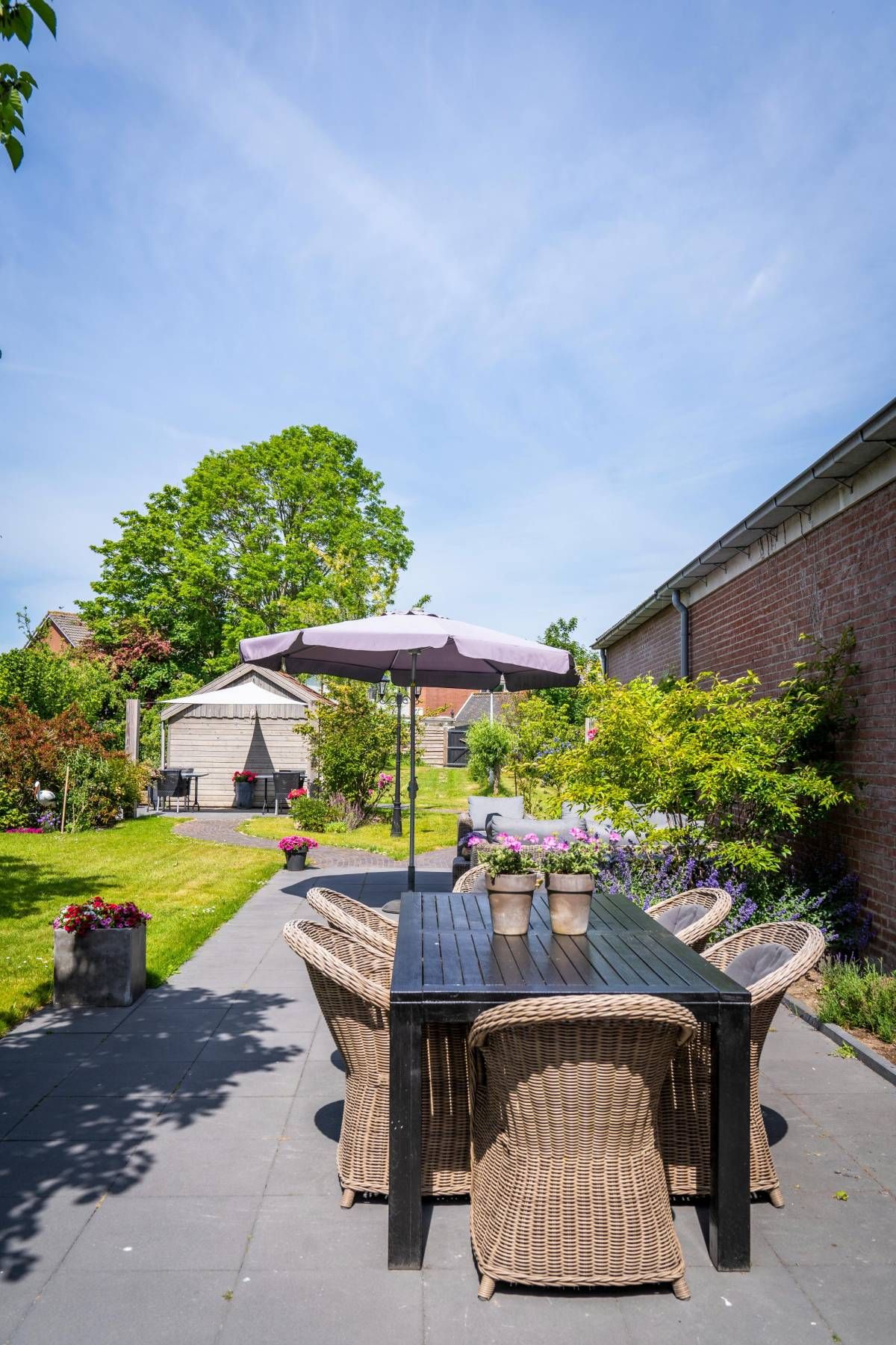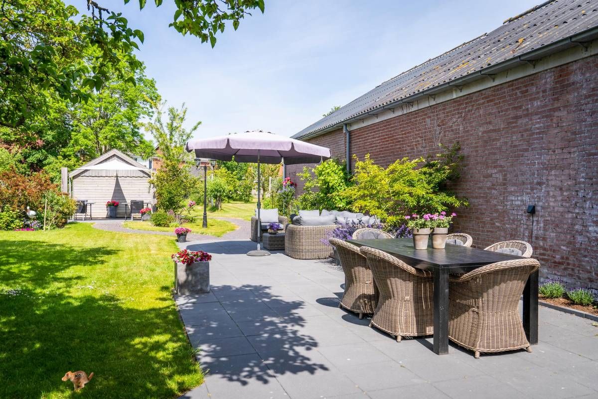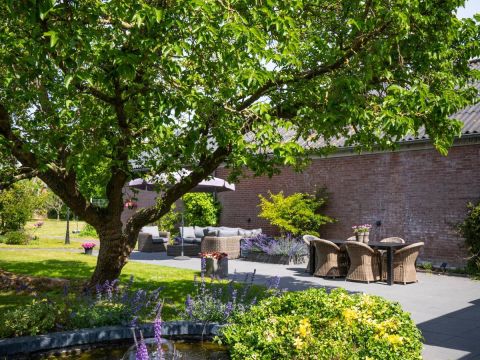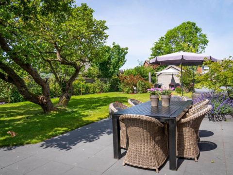 Smaakvol aangelegd met veelzijdige beplanting die kleur en sfeer brengt in elk seizoen. Deze royale tuin is een waar paradijs. Omringd door weelderig groen, vormt deze buitenruimte en oase van rust en privacy. De verschillende verzorgde terrassen bieden voor elk moment van de dag een perfecte plek om te genieten van de zon en/of schaduw.
