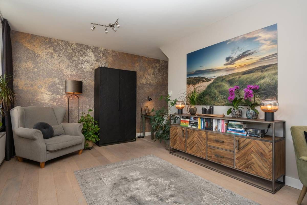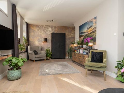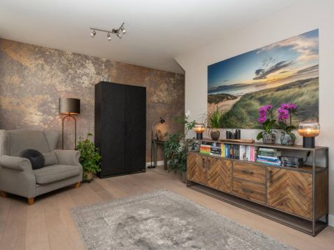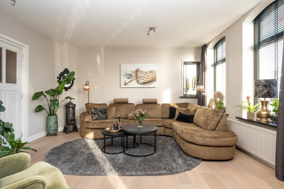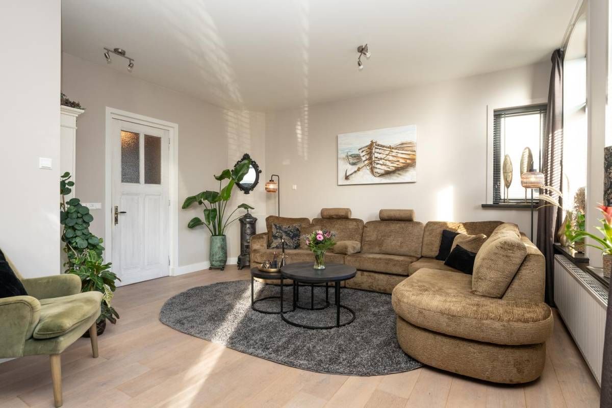 De woonkamer bevindt zich aan de voorzijde van het huis. Veel licht en zicht én een rookkanaal voor een kachel, als u dat wenst.