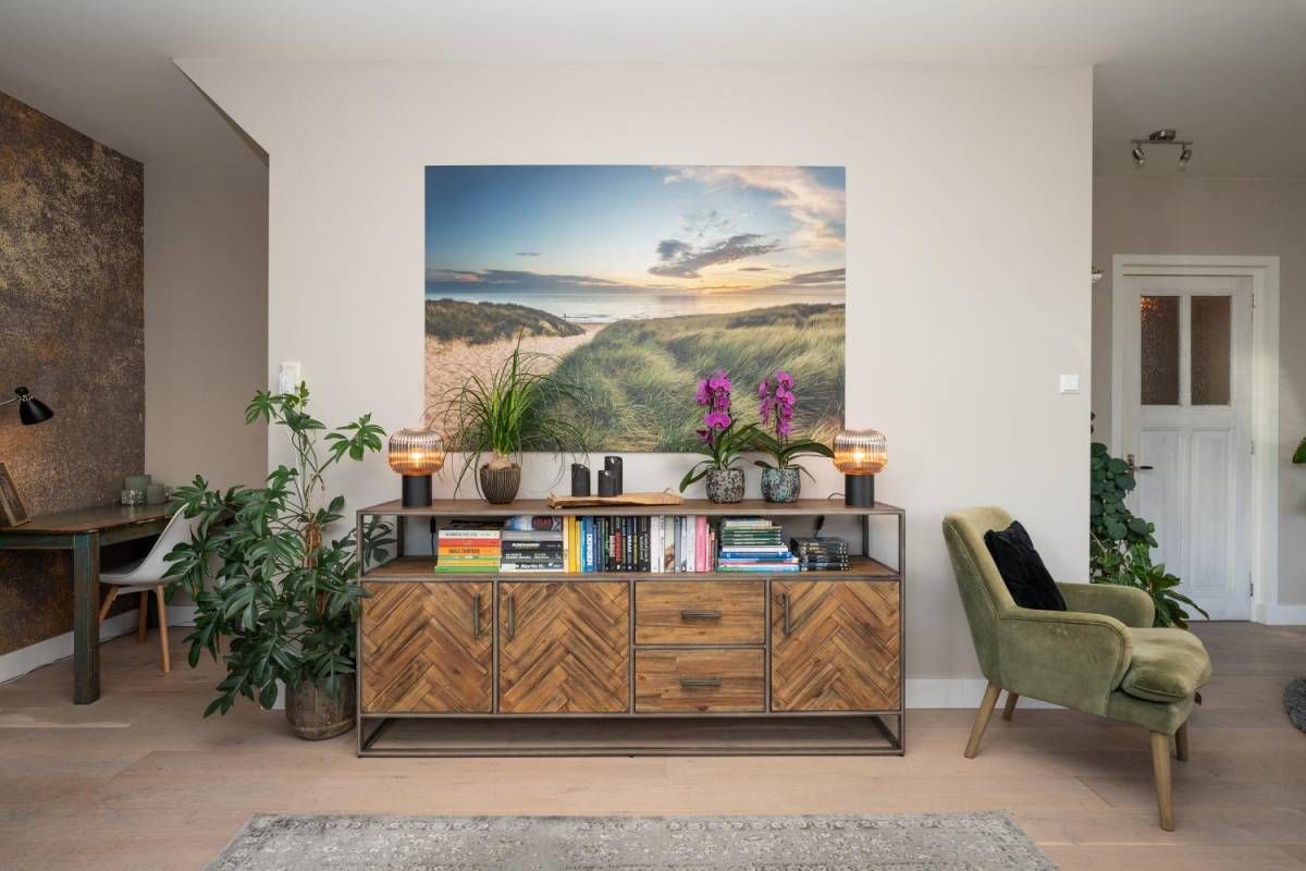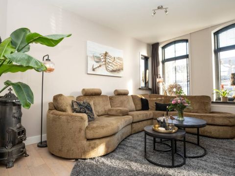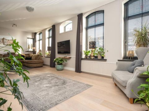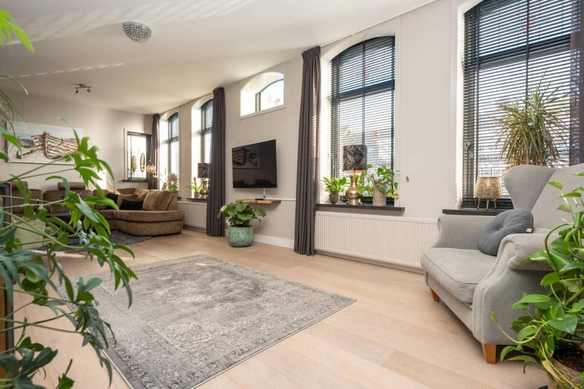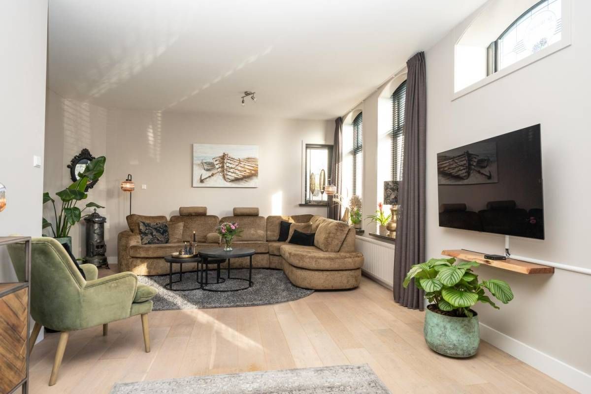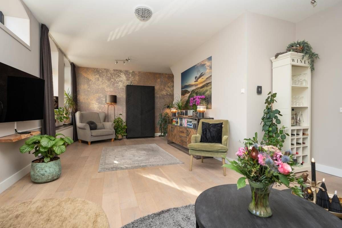De woonkamer bevindt zich aan de voorzijde van het huis. Veel licht en zicht én een rookkanaal voor een kachel, als u dat wenst.
