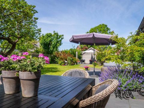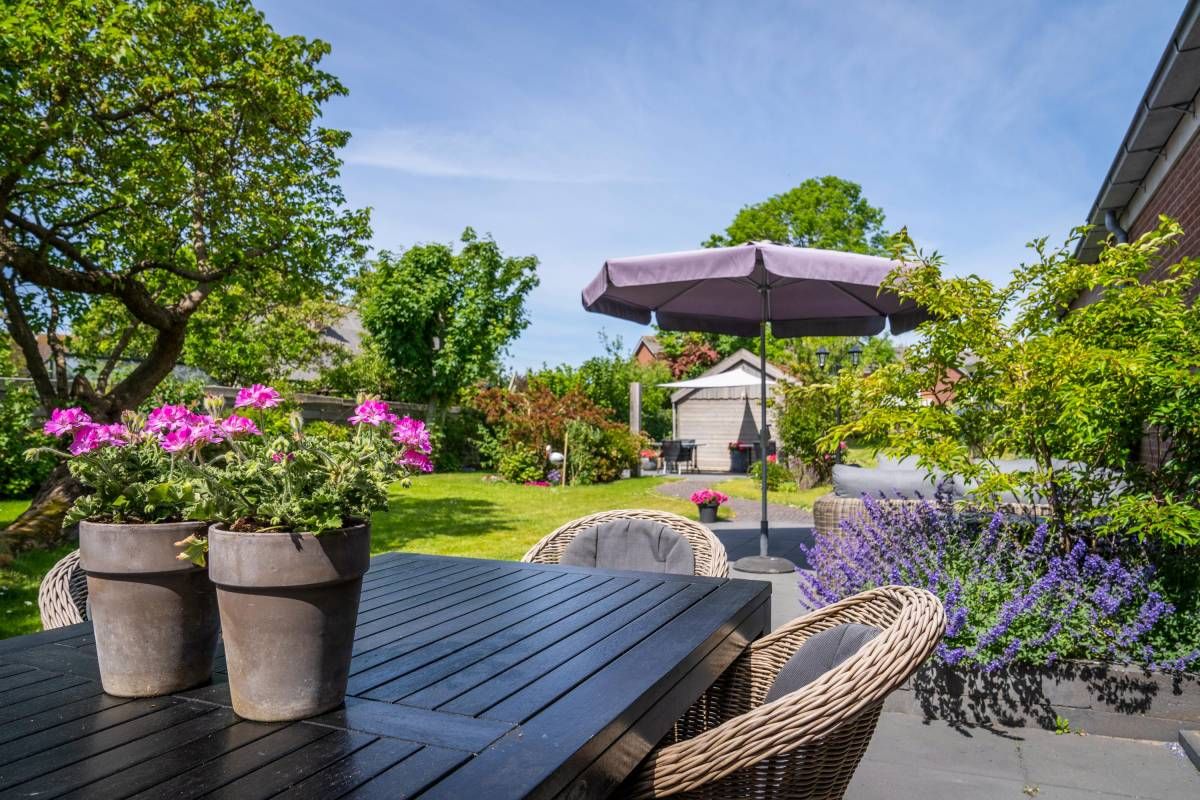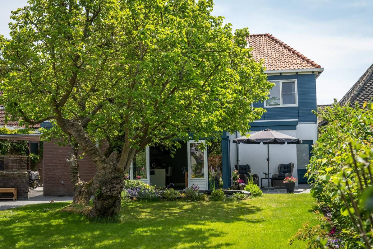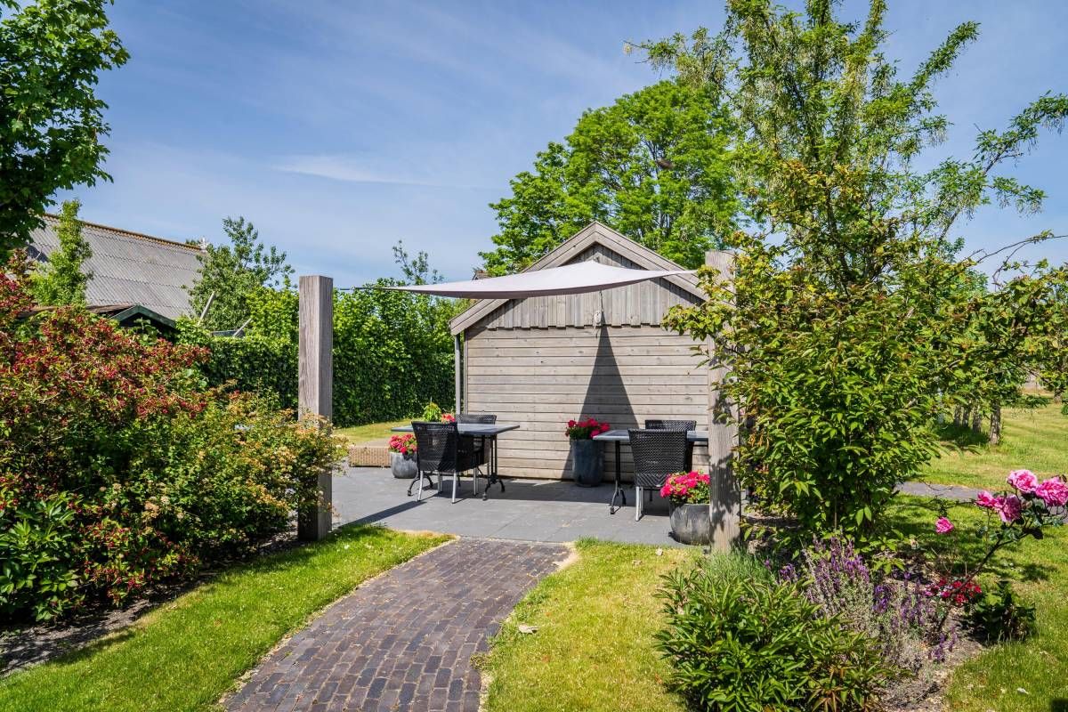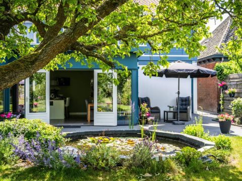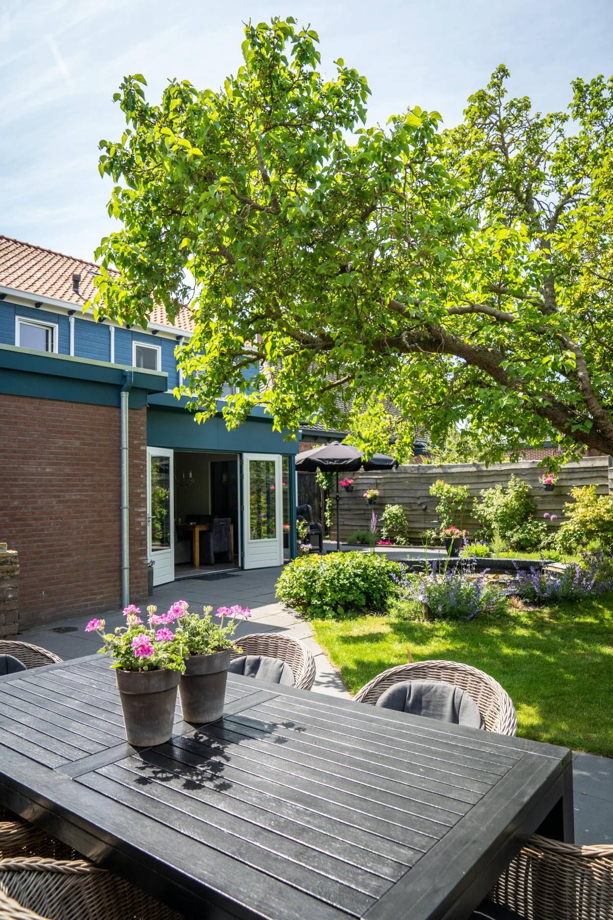 De bijna volglazen zij– en achterpui (met openslaande deuren) biedt een fantastisch rustgevend tuincontact.