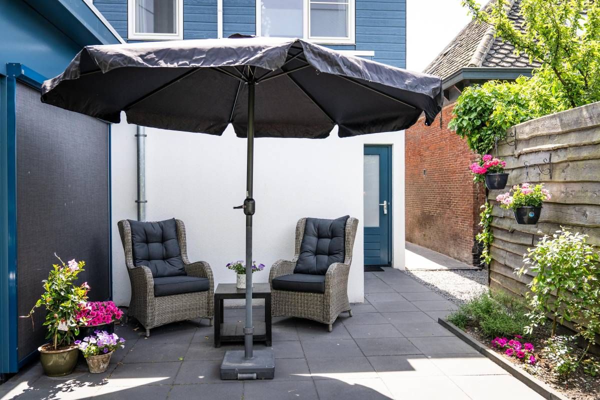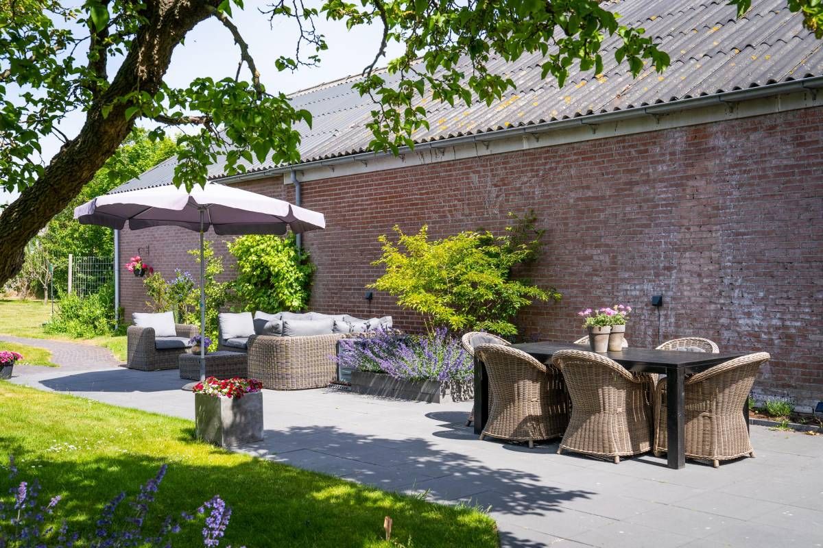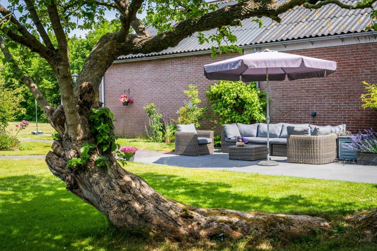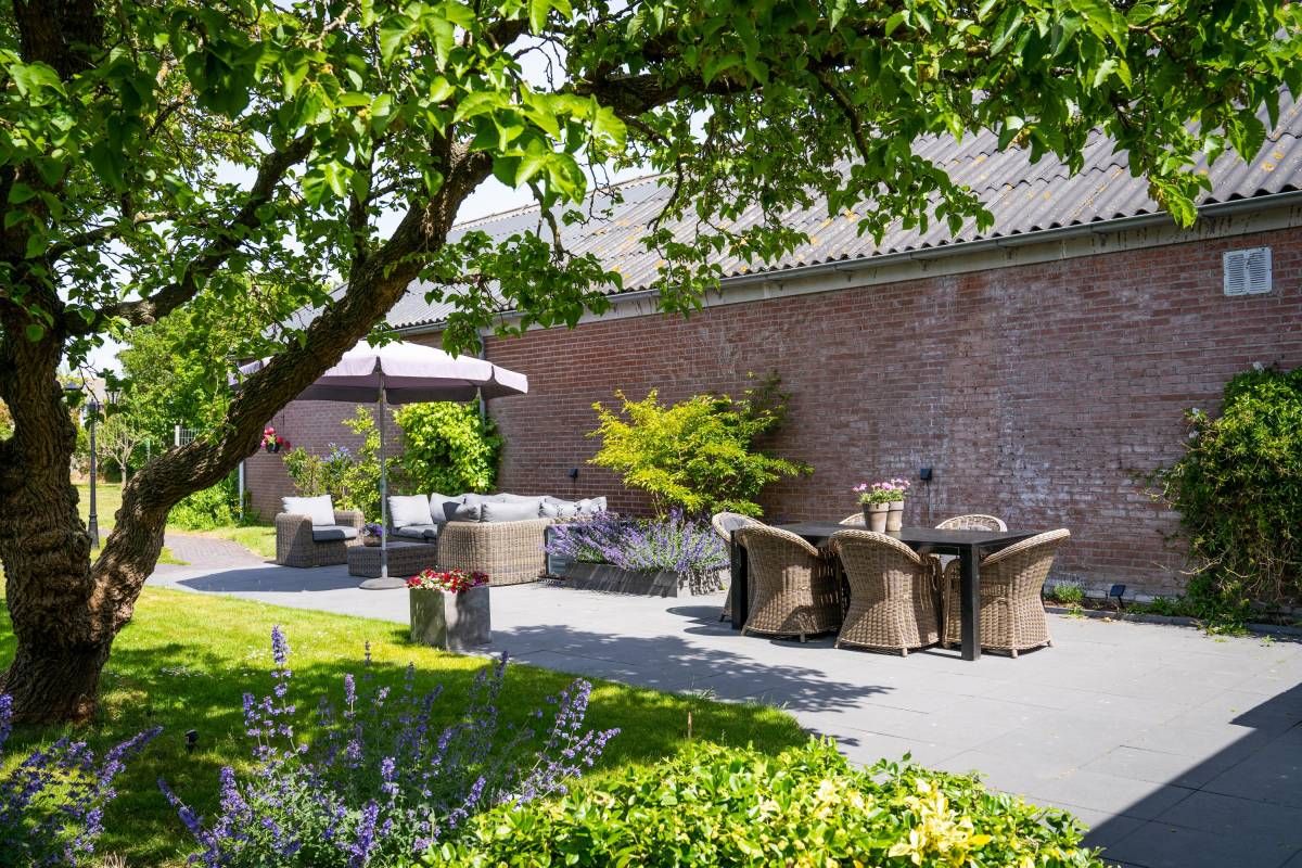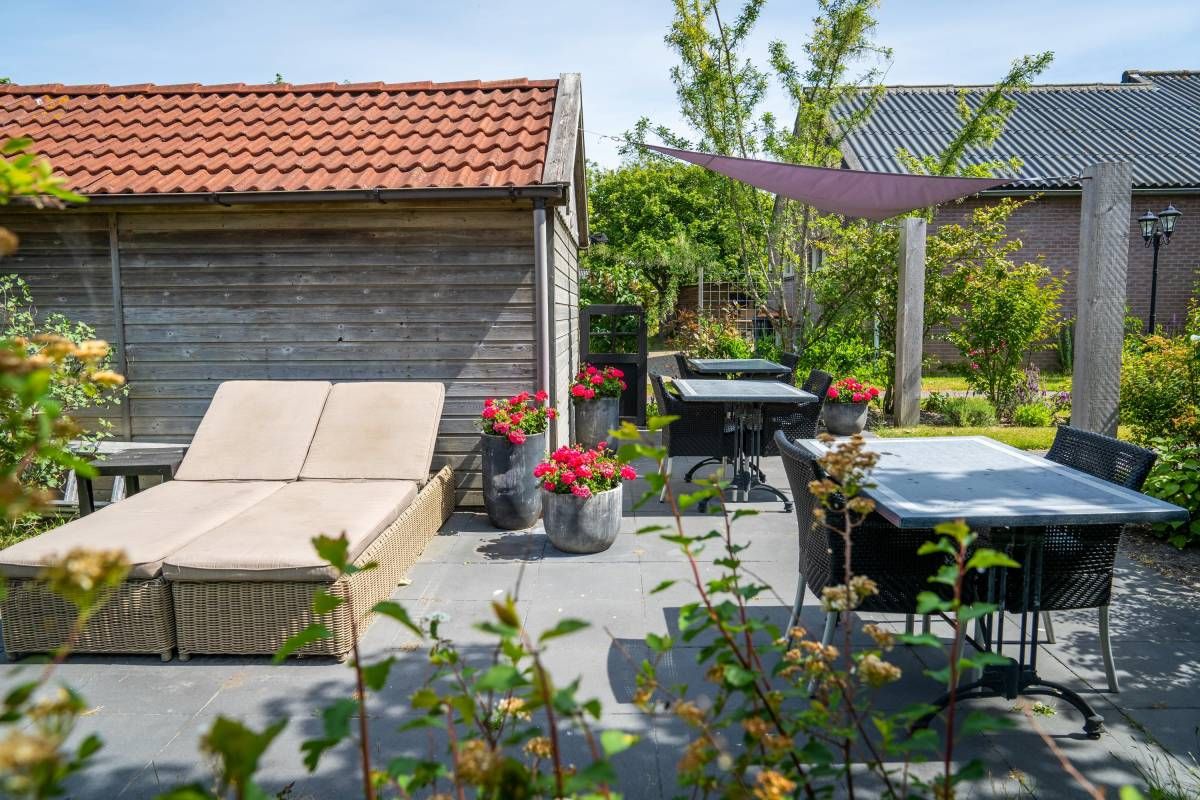 De bijna volglazen zij– en achterpui (met openslaande deuren) biedt een fantastisch rustgevend tuincontact.
