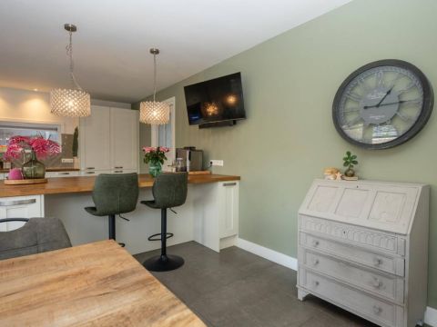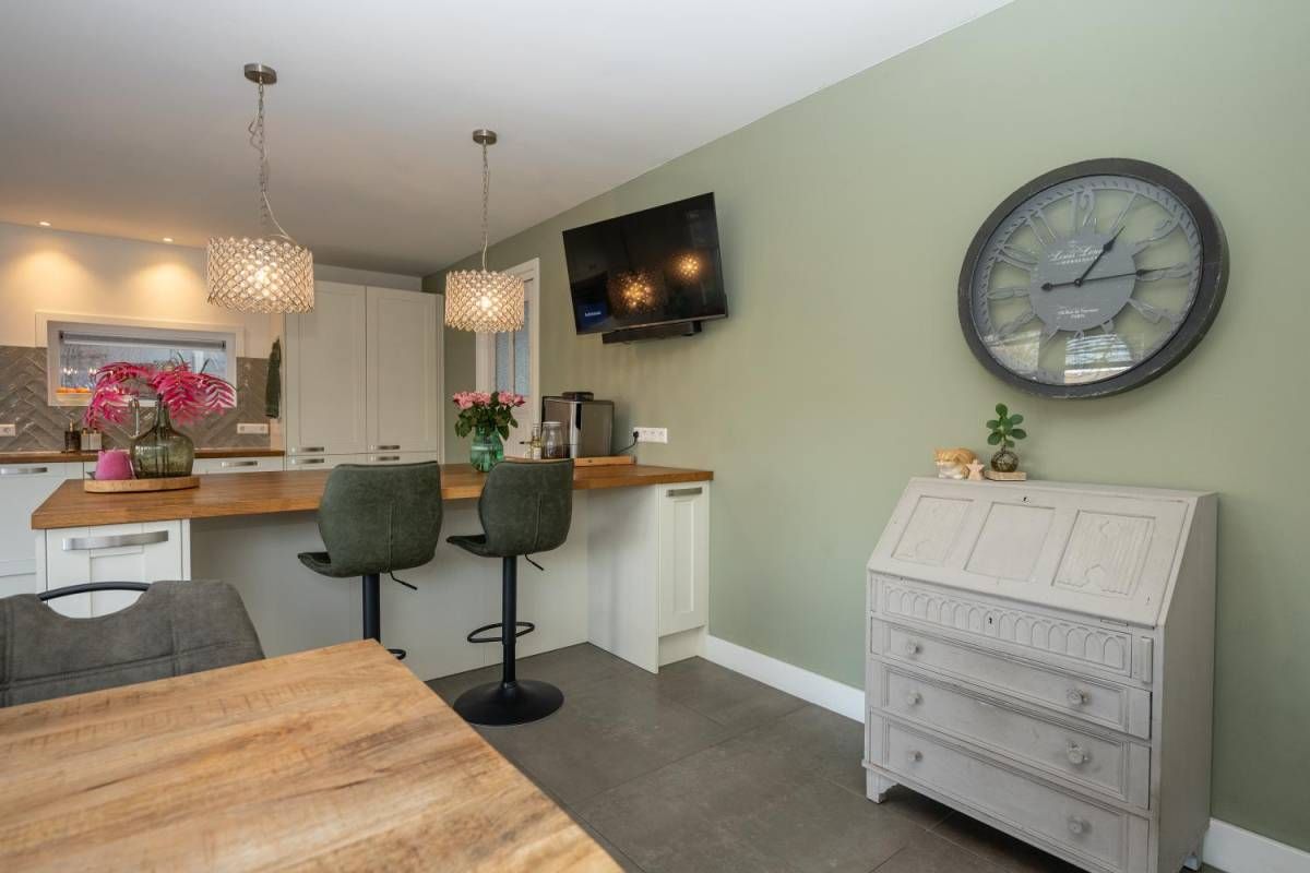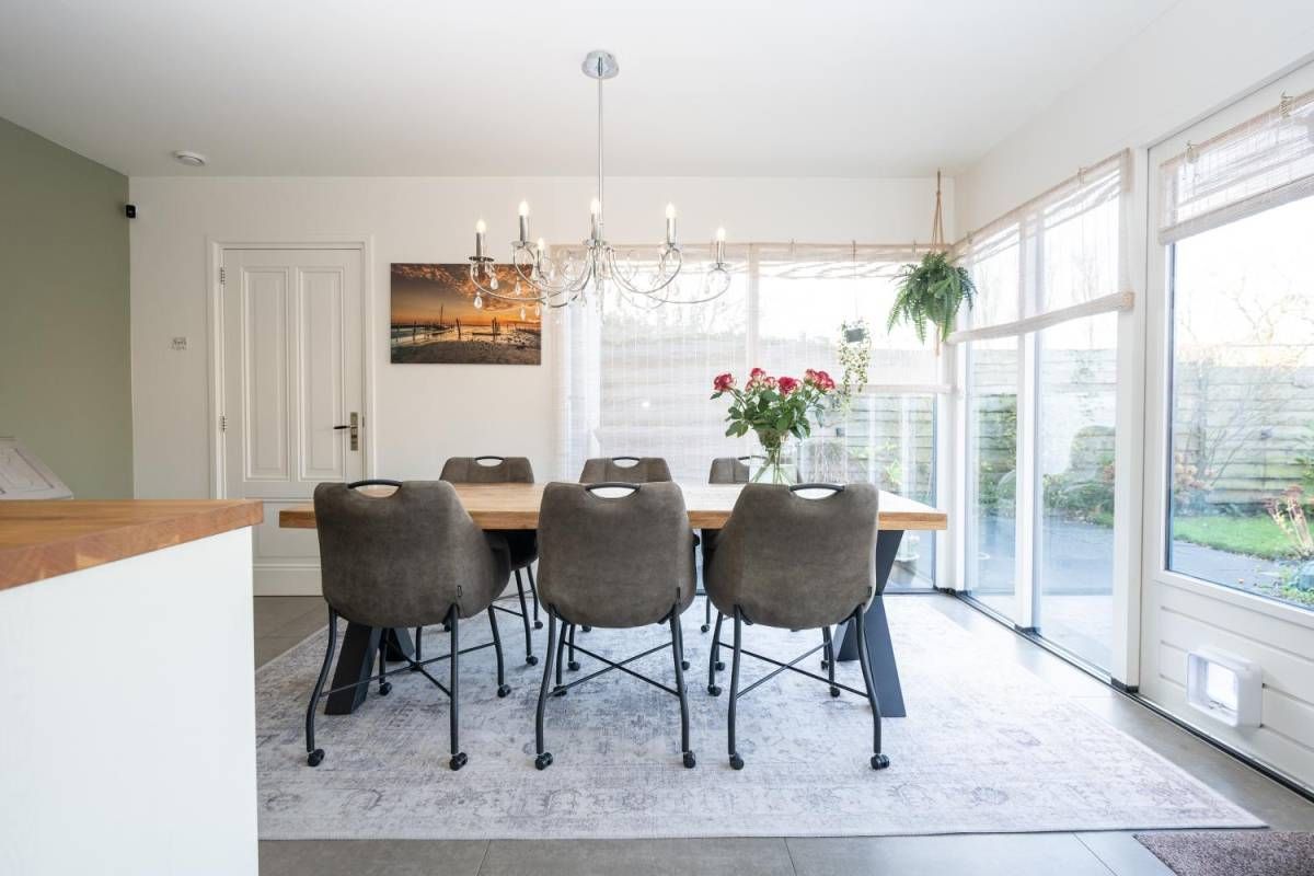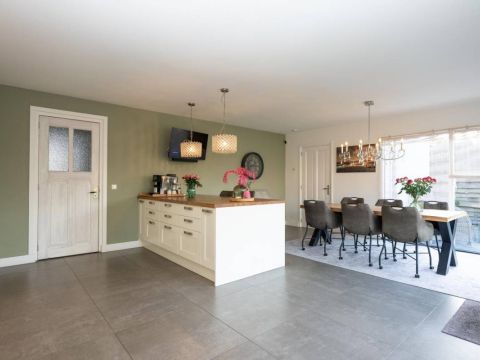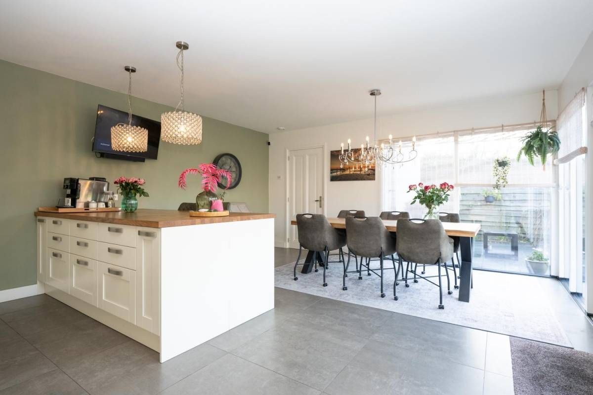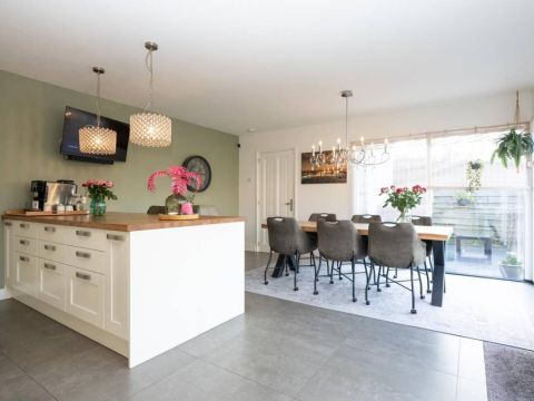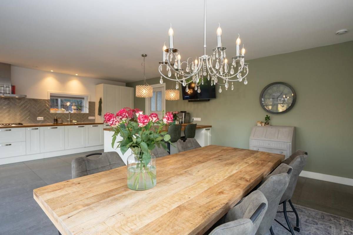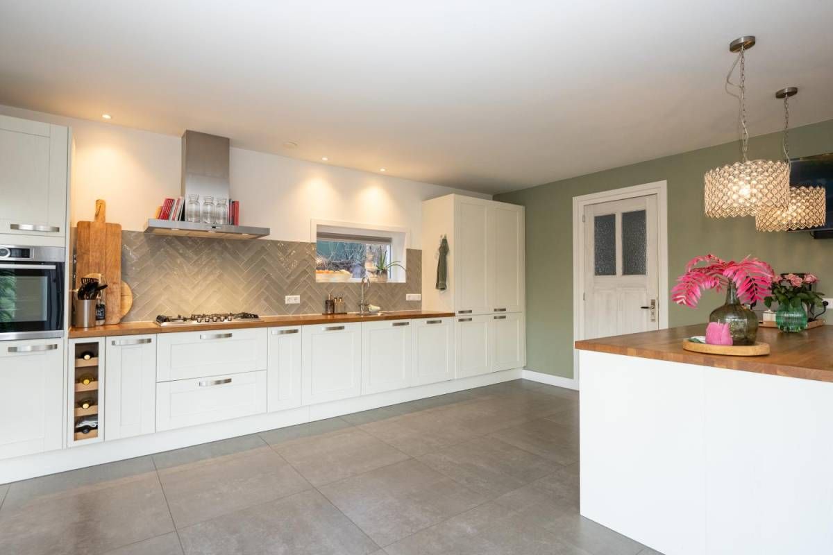 De royale en moderne woonkeuken is voorzien van hoogwaardige inbouwapparatuur zoals een moderne kookplaat, oven, combi-oven, vaatwasser, koelkast, vrieskast en een Quooker. Het slimme gebruik van opbergruimte zorgt ervoor dat alle benodigdheden netjes kunnen worden opgeborgen. Of u nu een culinaire maaltijd bereidt of gezellig met familie en vrienden dineert, deze woonkeuken biedt de ideale setting. Kortom, deze woonkeuken is de ideale plek voor koken, eten en samen zijn, met alle luxe die u zich kunt wensen.