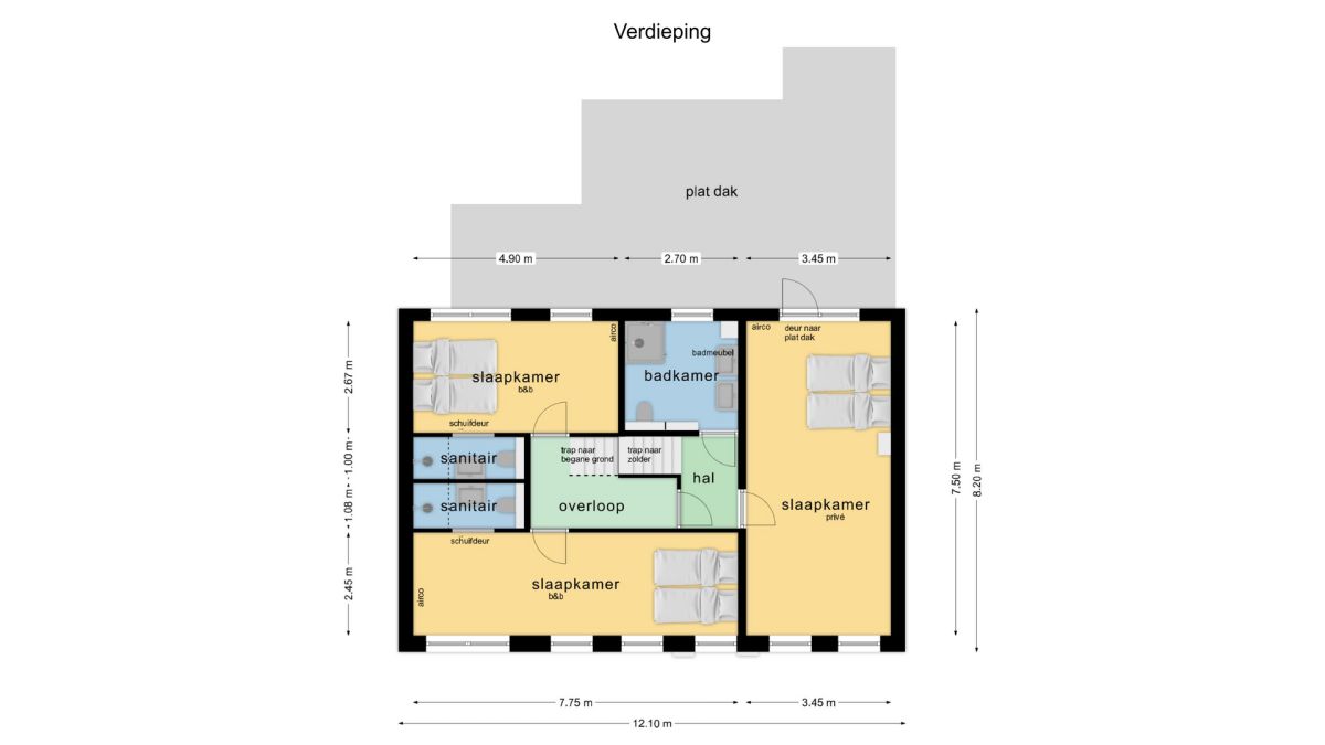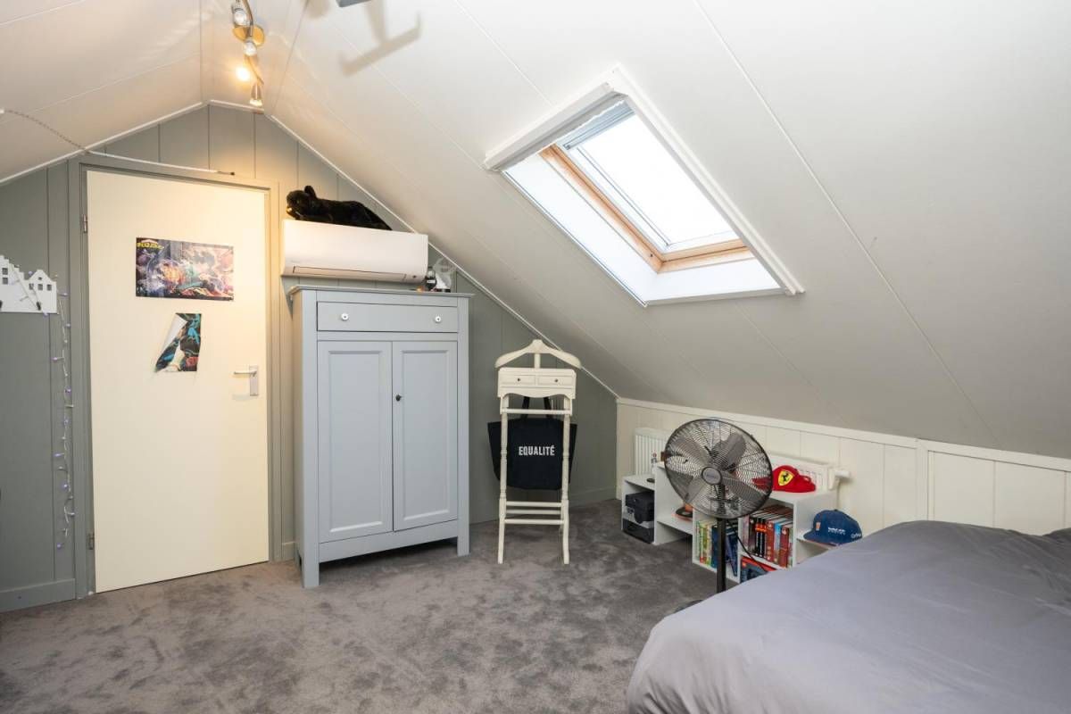 Gaan we naar de zolder, dan treft u daar óók nog eens 2 riante slaapkamers aan. Beiden slaapkamers beschikken over een vaste kast en een dakraam.