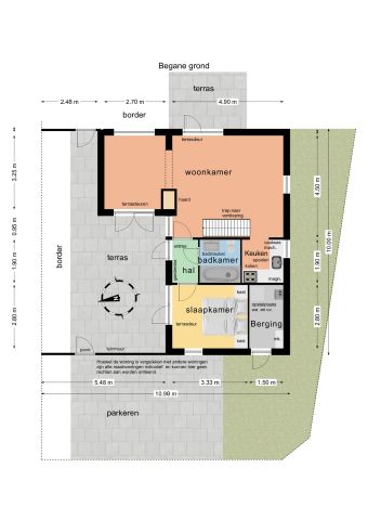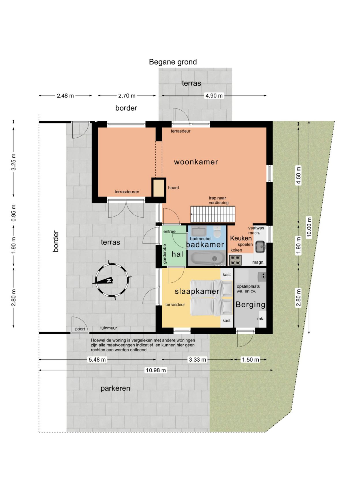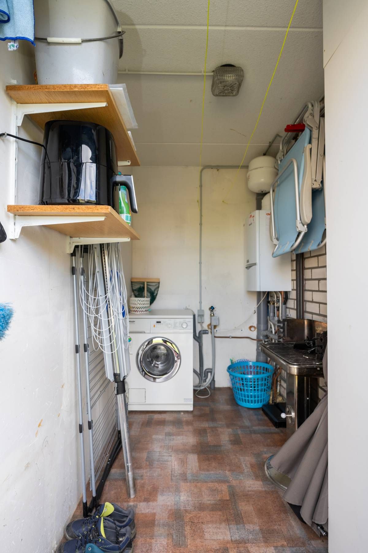 Aan de voorzijde van de woning vindt u een inpandige berging met opstelplaats voor de wasmachine en cv-ketel. Tevens is er voldoende ruimte om een auto te parkeren op eigen terrein.