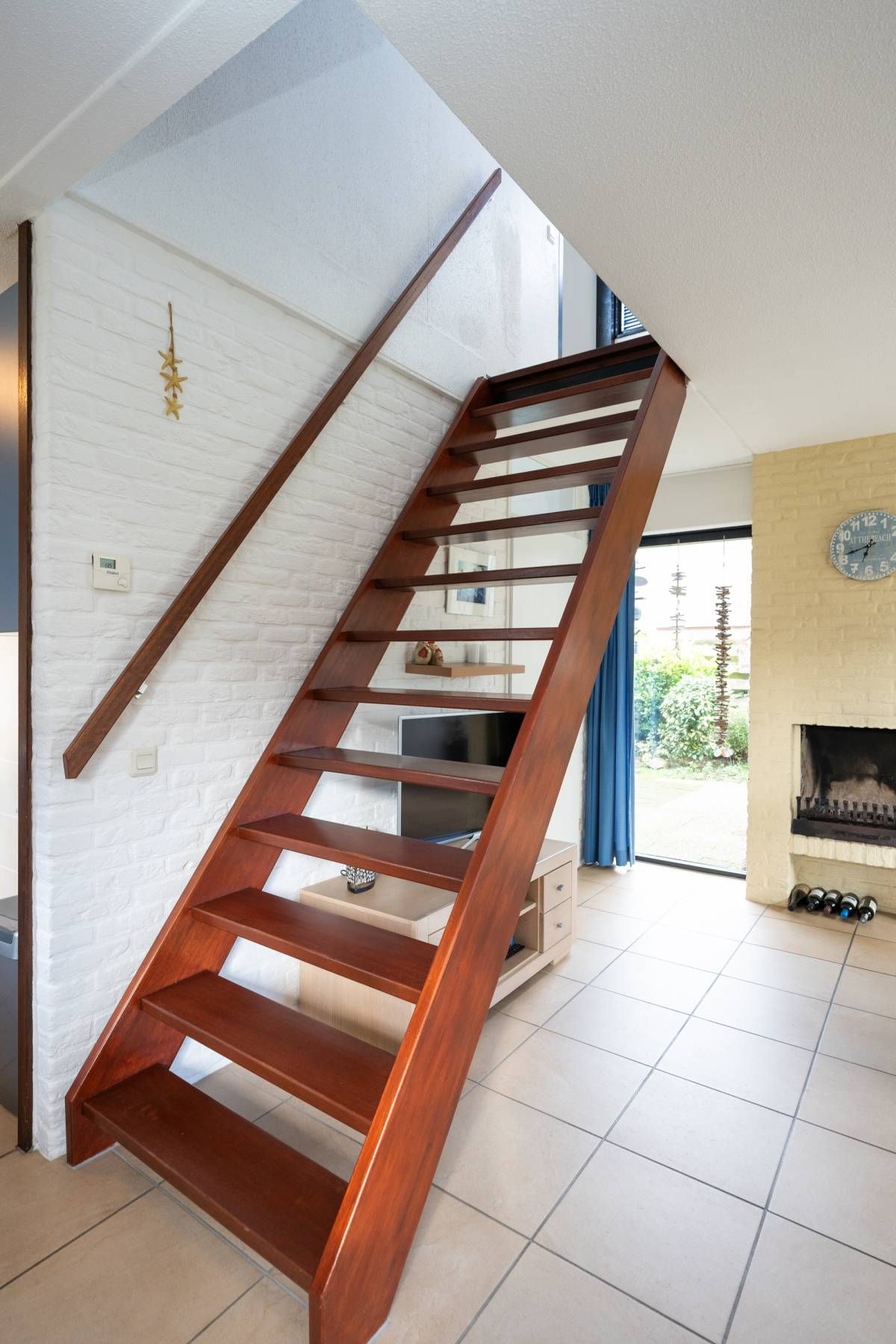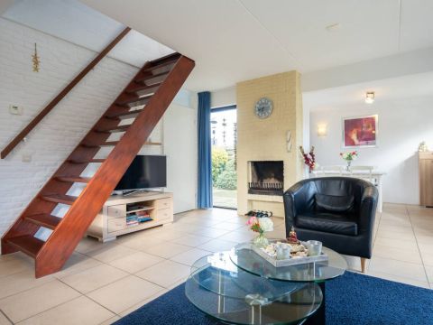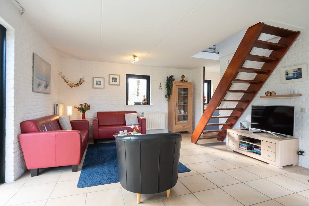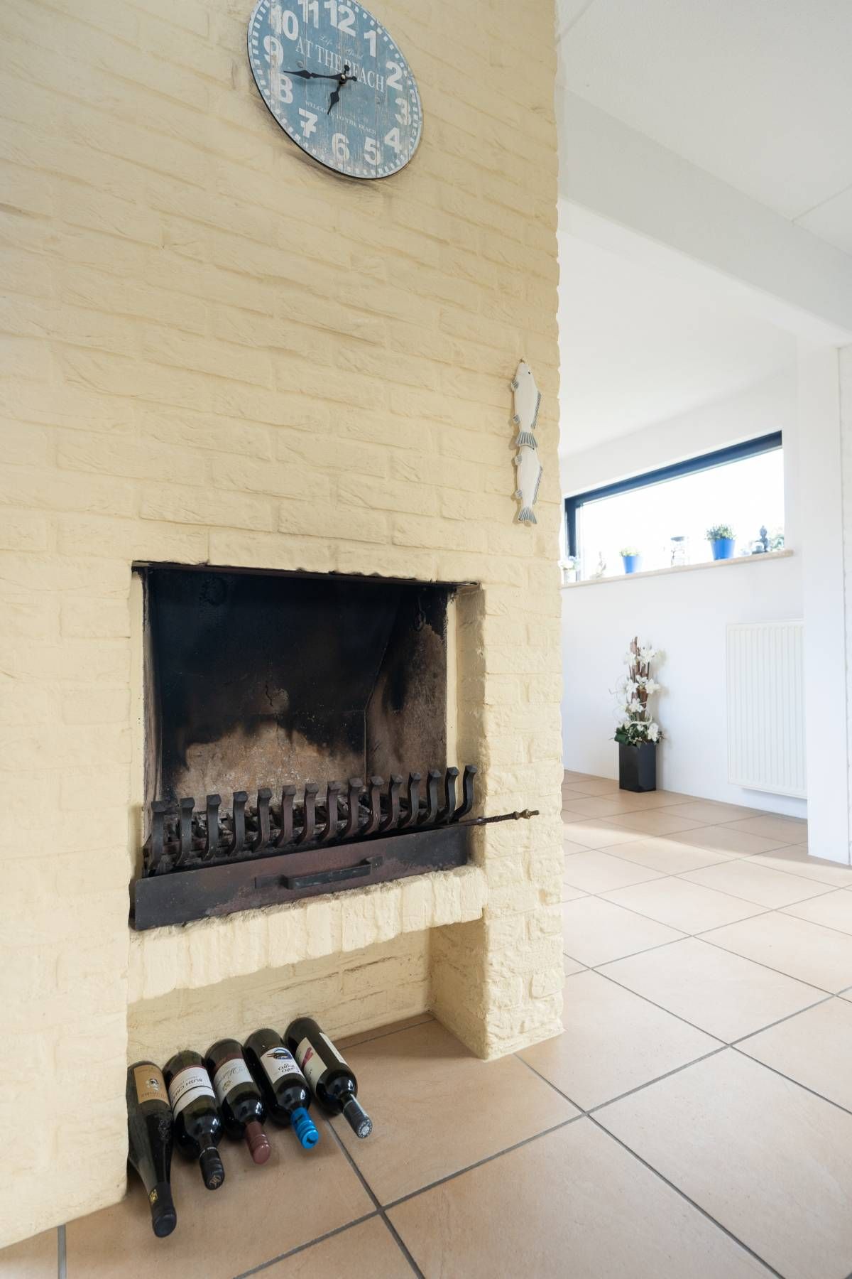Kom binnen! Bij binnenkomst treft u een ruime en lichte woonkamer met een fraaie uitbouw. De woonkamer beschikt over een openhaard en een plavuizenvloer.