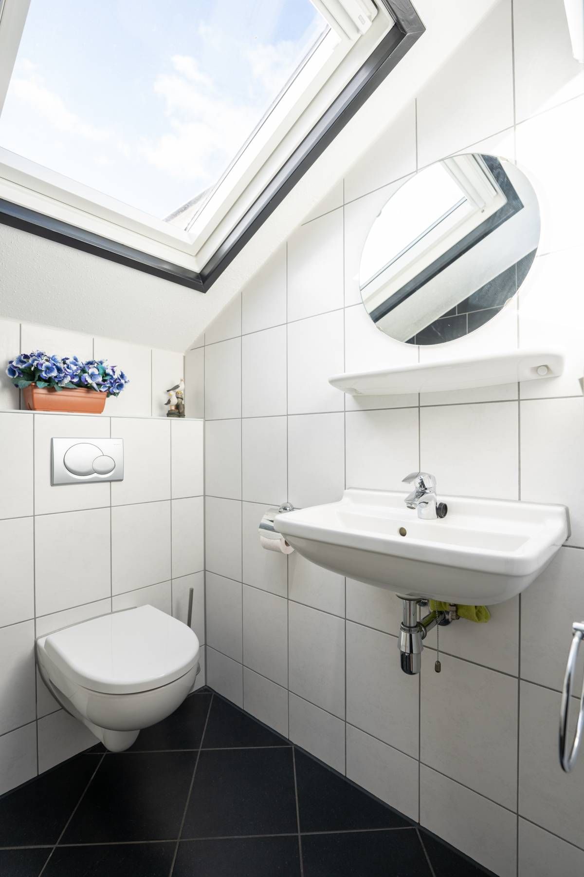 Op de overloopt vindt u nog een toilet met een dakraam.
