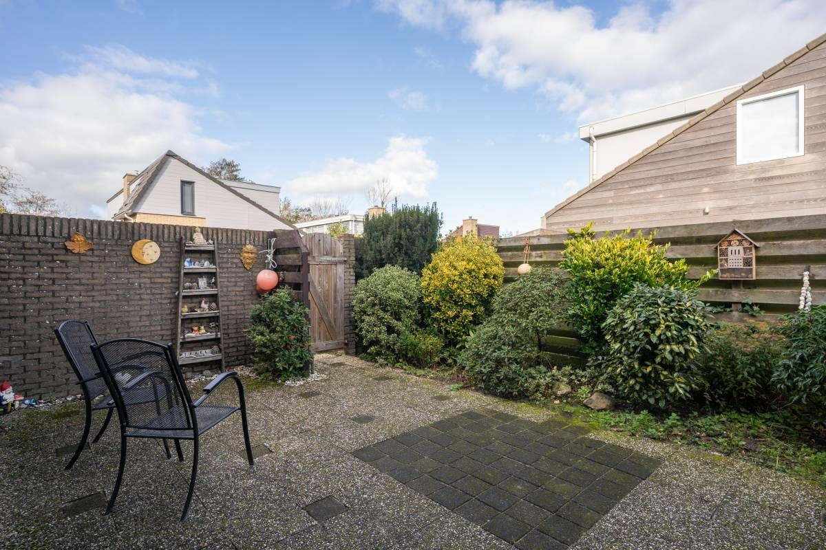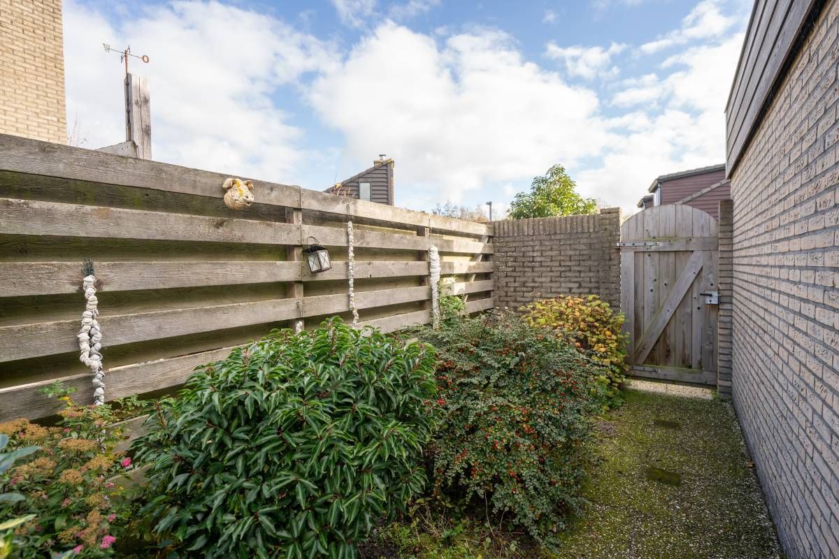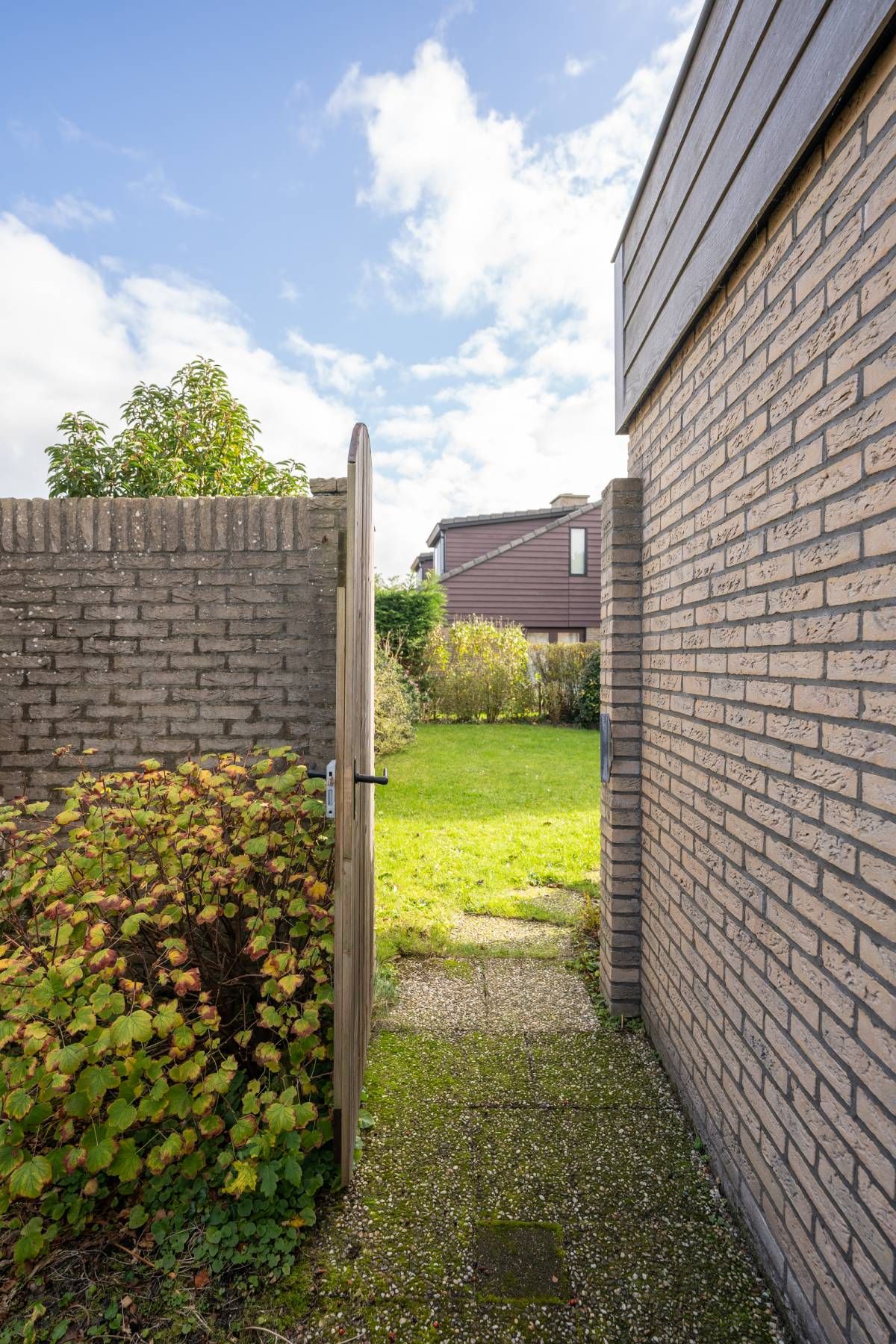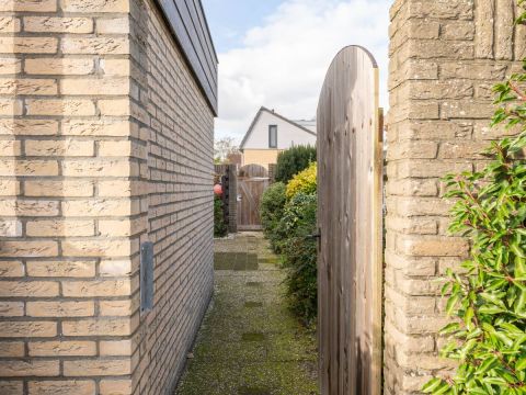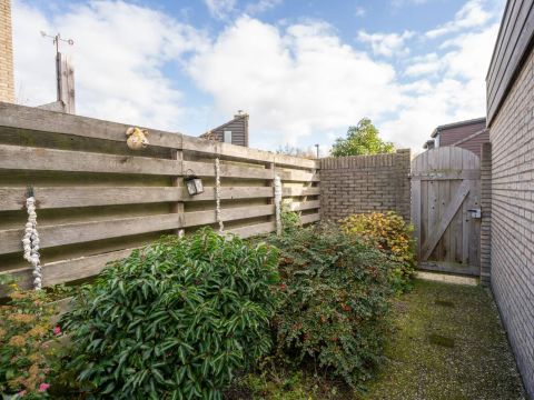 Via een poort komt u in de royale achtertuin. De tuin is voorzien van een mooi gazon, diverse beplanting en een tuinhuisje.