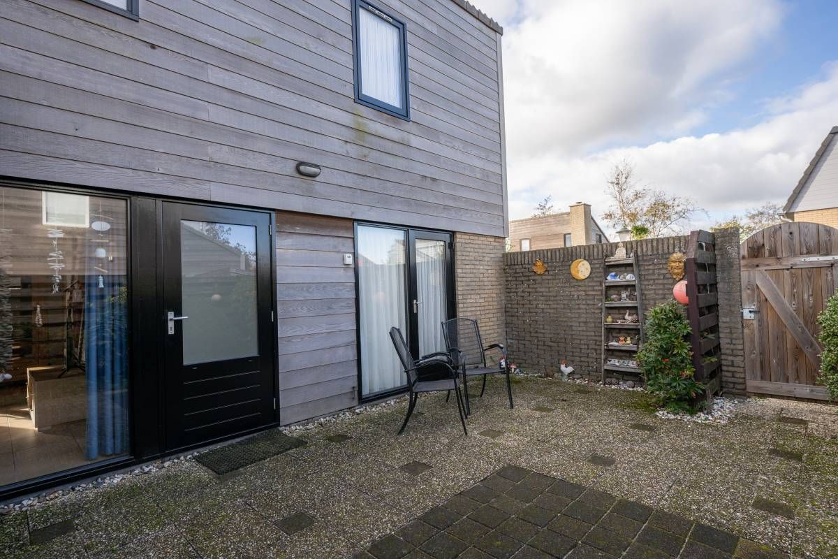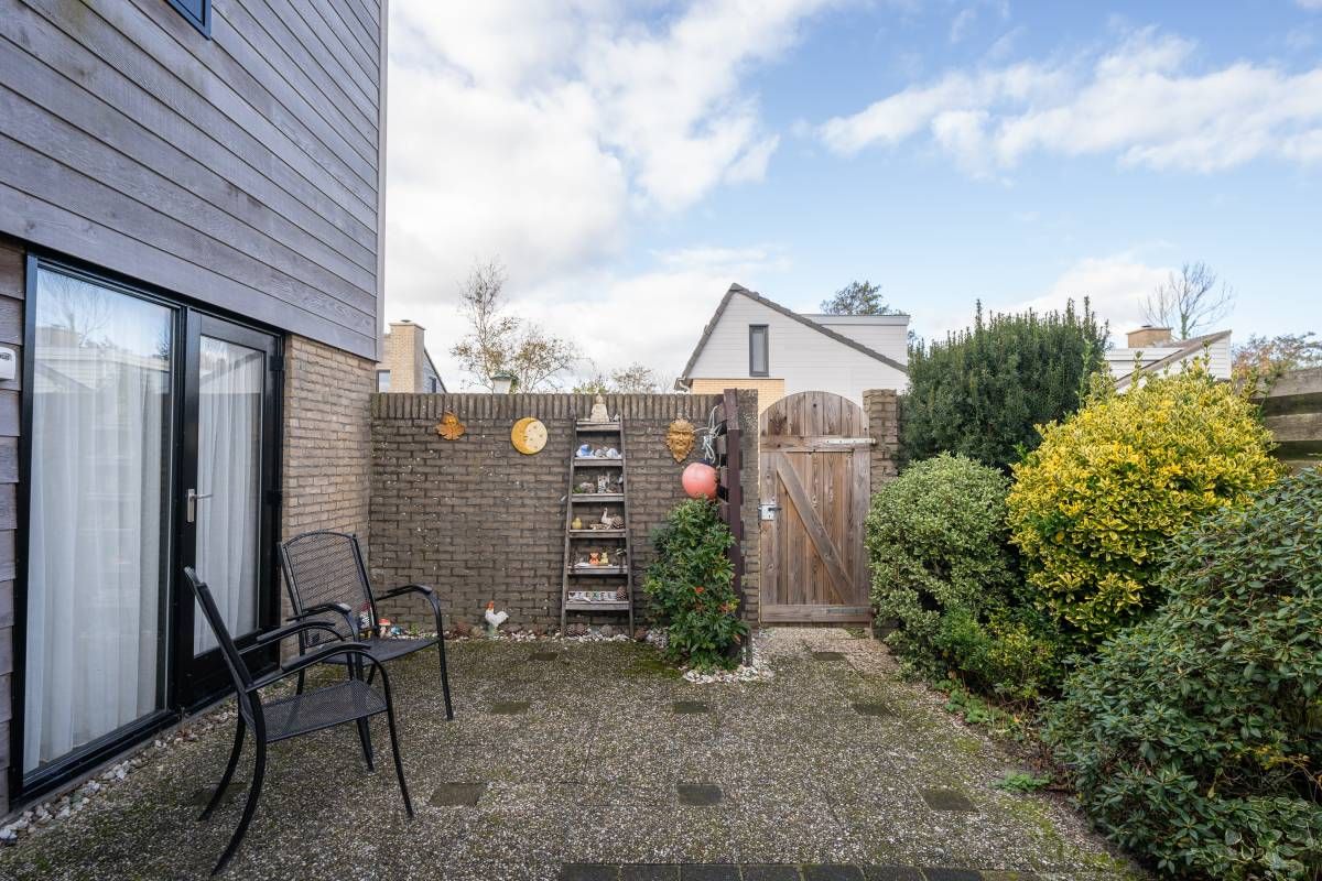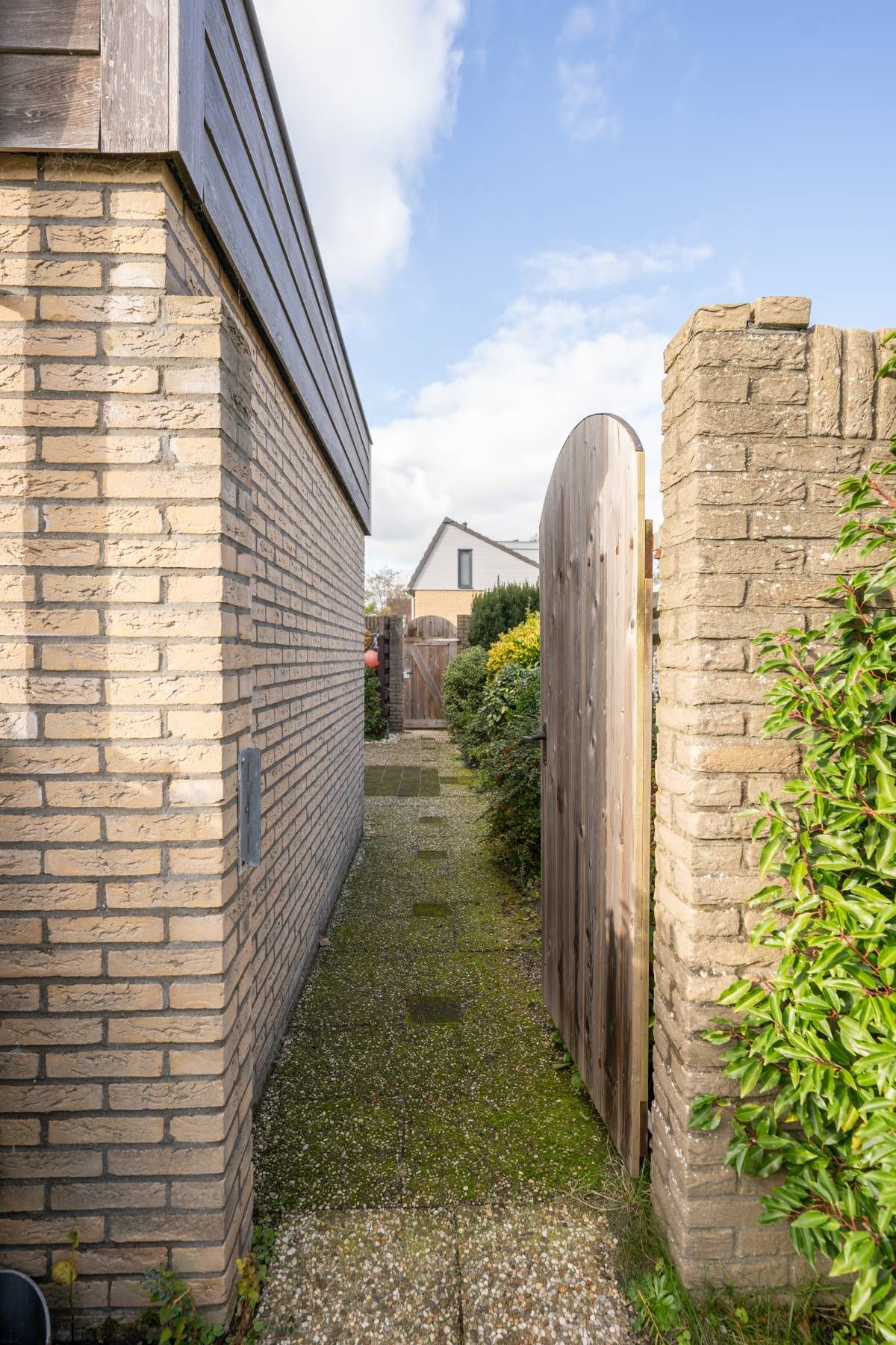 Via een poort komt u in de royale achtertuin. De tuin is voorzien van een mooi gazon, diverse beplanting en een tuinhuisje.