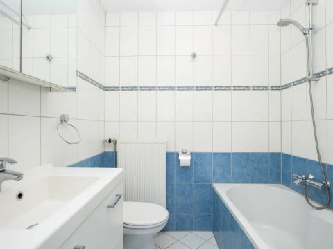 Op de begane grond vindt u tevens een badkamer met ligbad/douche, wastafelmeubel en toilet.