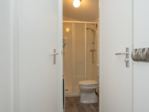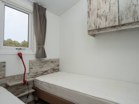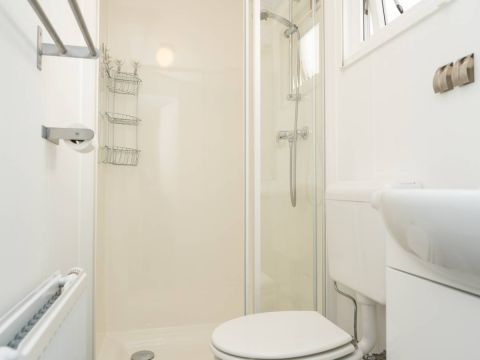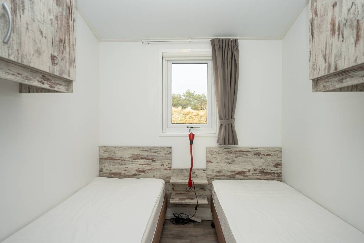Het chalet beschikt over twee slaapkamers. De eerste slaapkamer is ruim van opzet en voorzien van een tweepersoonsbed en een nette kastenwand. De tweede slaapkamer beschikt over twee losse eenpersoonsbedden en eveneens kastruimte.