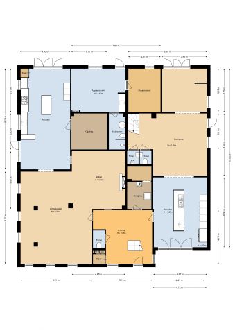 Wanneer we bij de entree de rechterdeur nemen kom je in de tweede keuken. Deze keuken is ook heel ruim bemeten en voorzien van de nodige apparatuur: twee Smeg-ovens inclusief stoomoven, Smeg-vaatwasmachine en een grote koel- en vrieskast. Er is ruimte voor een enorme eettafel waar men met grote gezelschappen fantastische culinaire middagen of avonden kan beleven. In deze ruimte zijn een dames- en herentoilet. Deze ruimte kan natuurlijk ook voor heel andere doeleinden worden gebruikt.