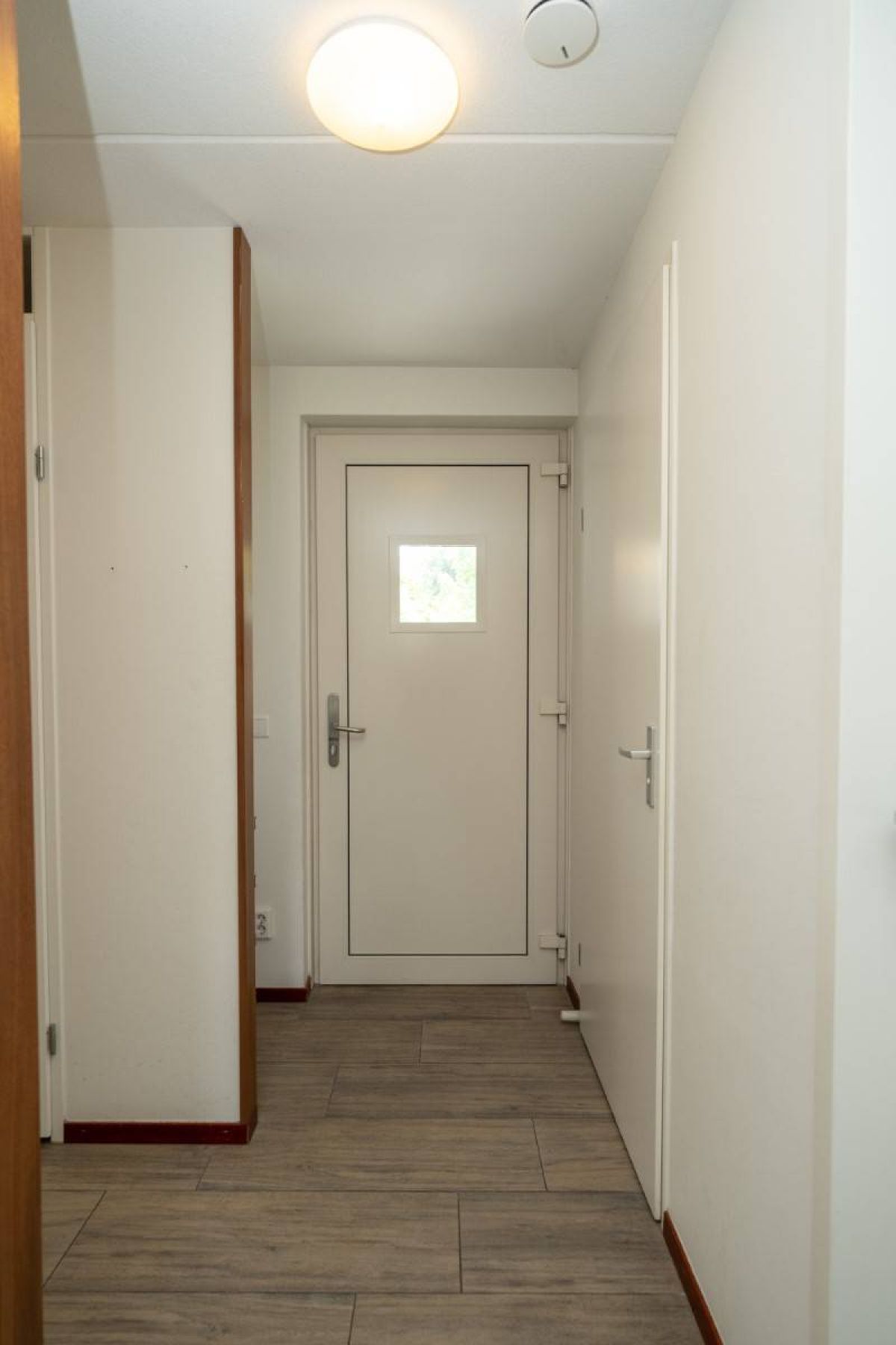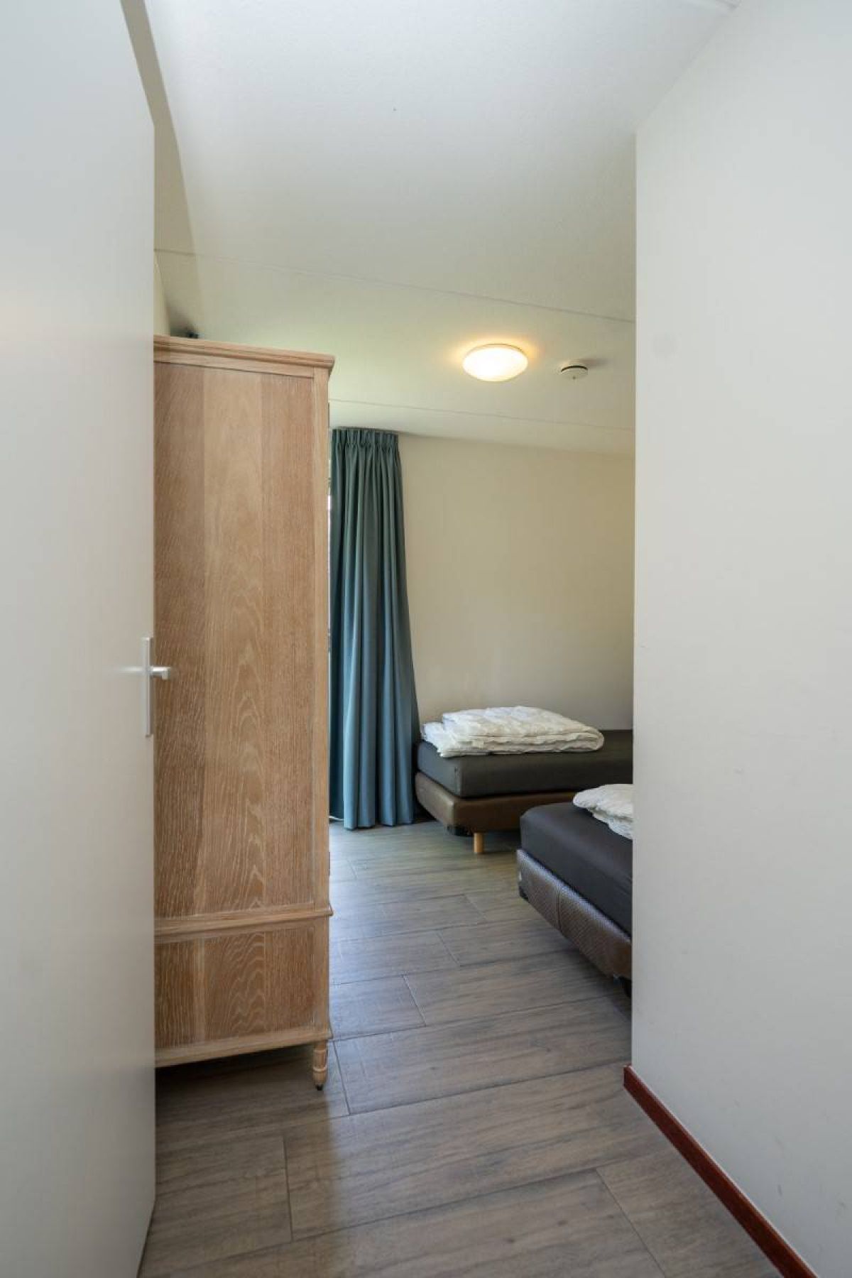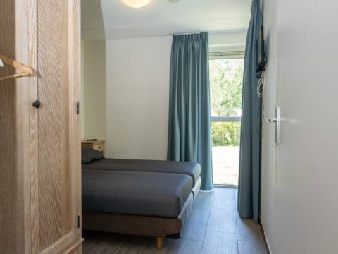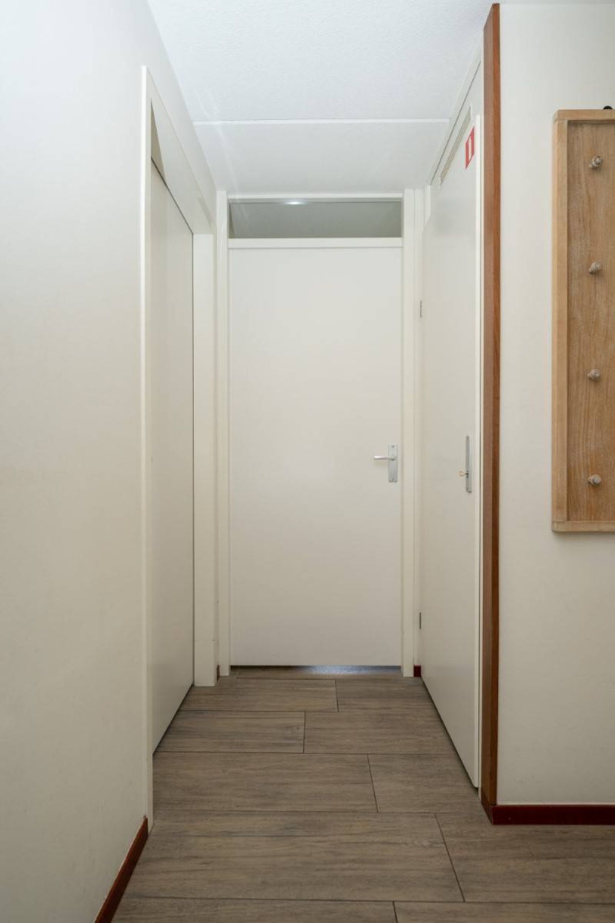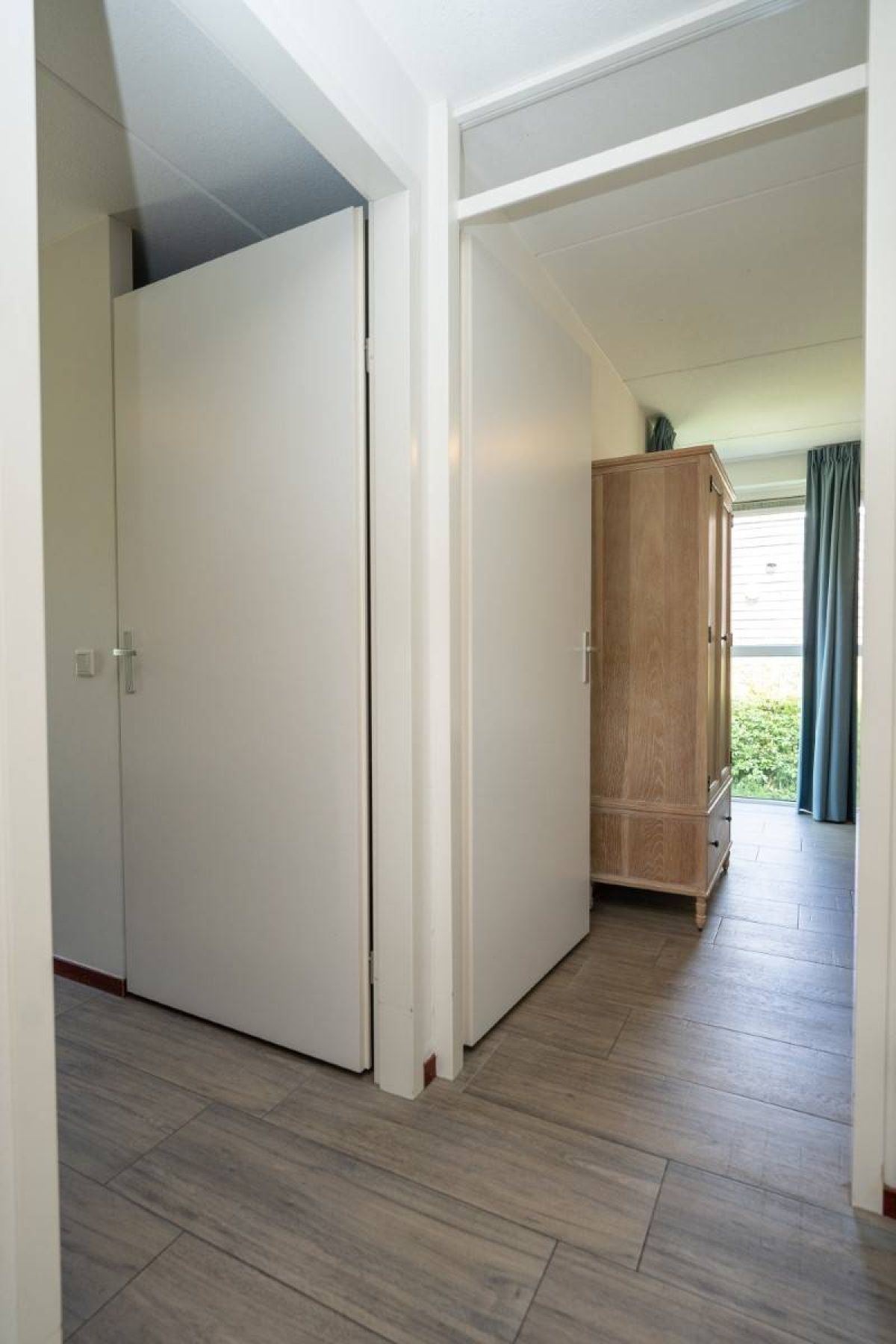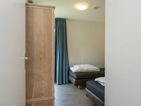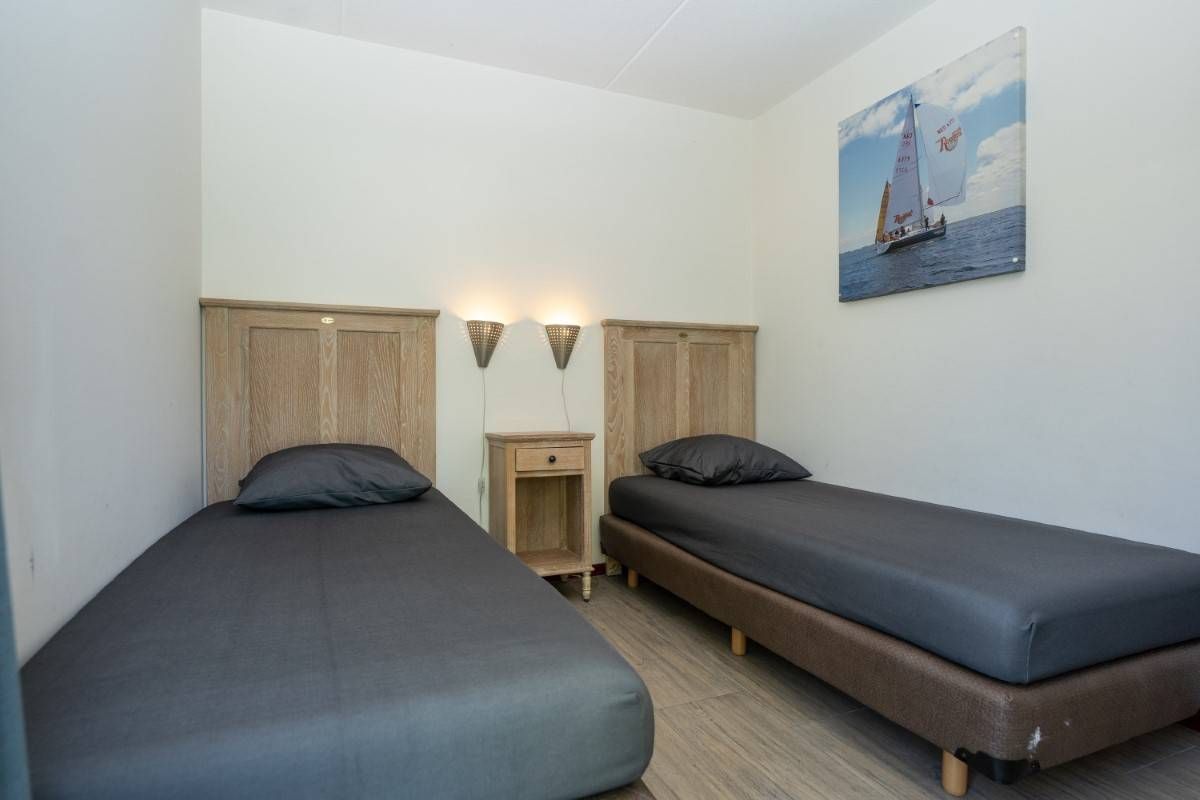 Vanuit de hal zijn twee slaapkamers bereikbaar. De eerste slaapkamer biedt voldoende ruimte om comfortabel te overnachten en kleding op te bergen.