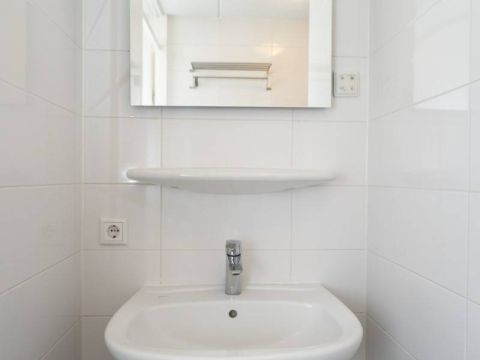 Aansluitend aan de slaapkamer komt u in de badkamer. De nette badkamer beschikt over een ligbad en een wastafel.